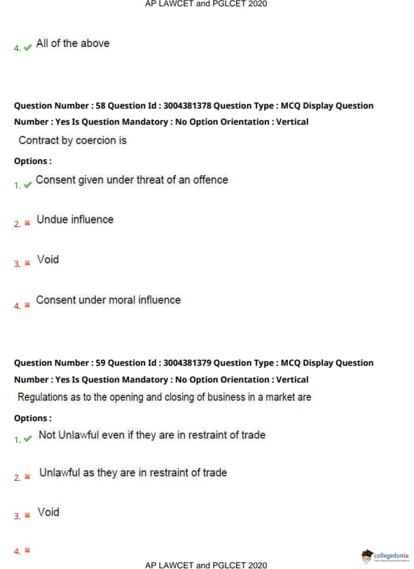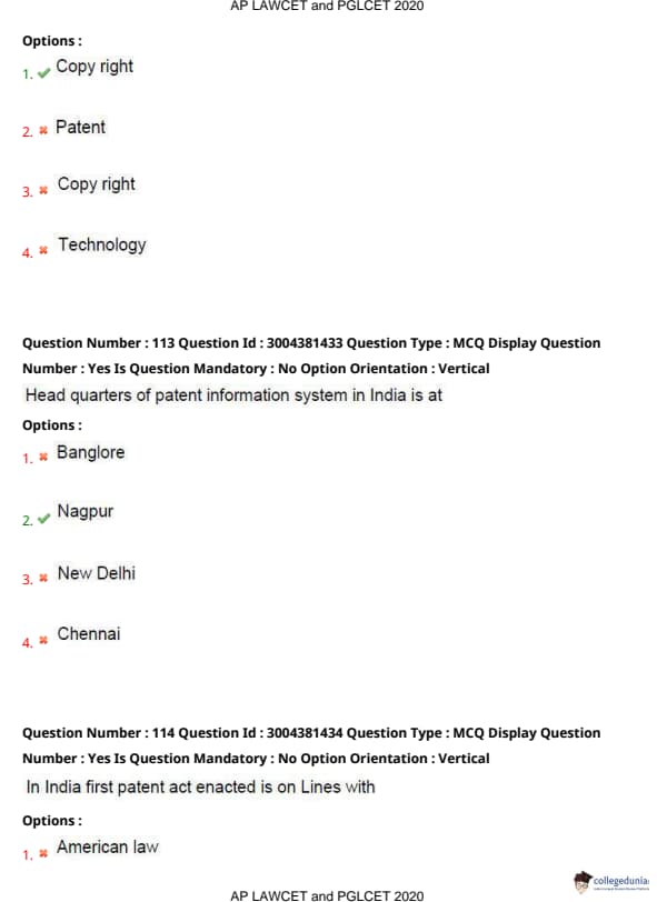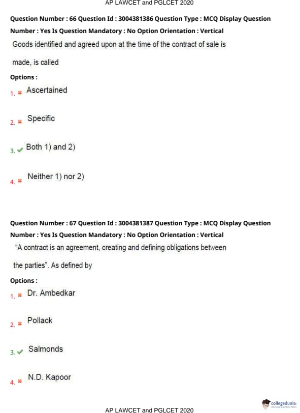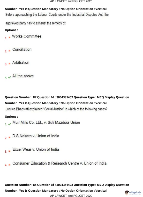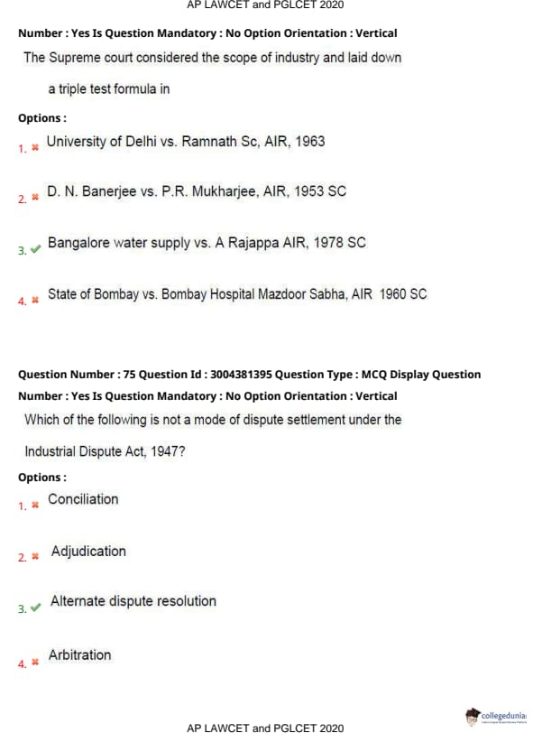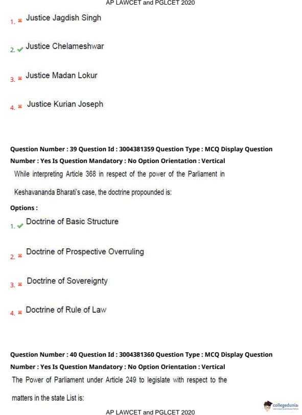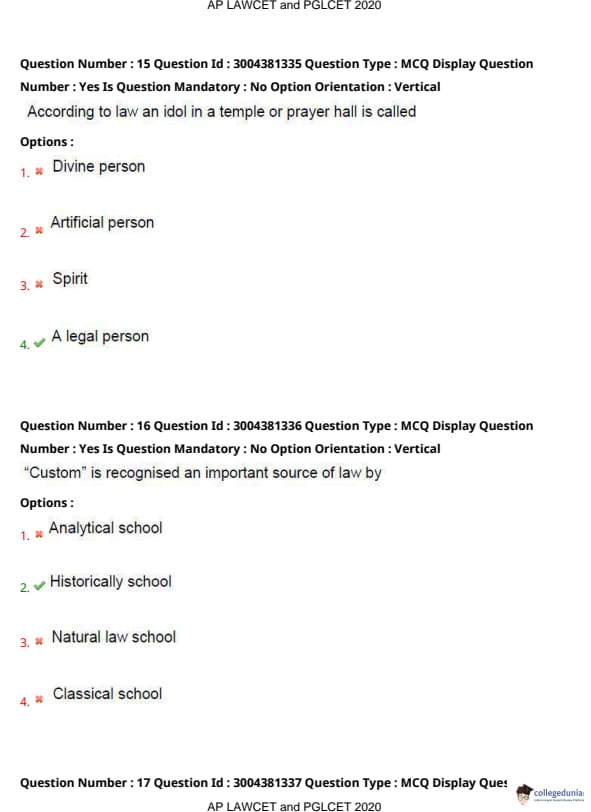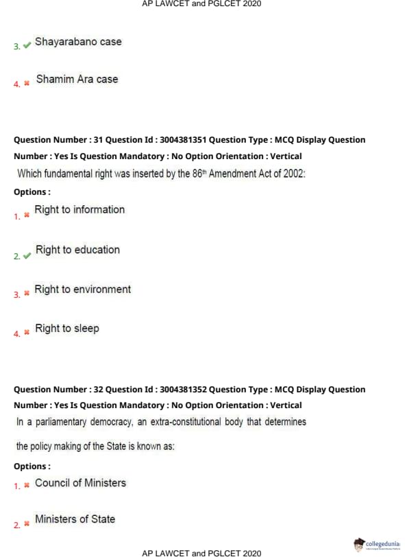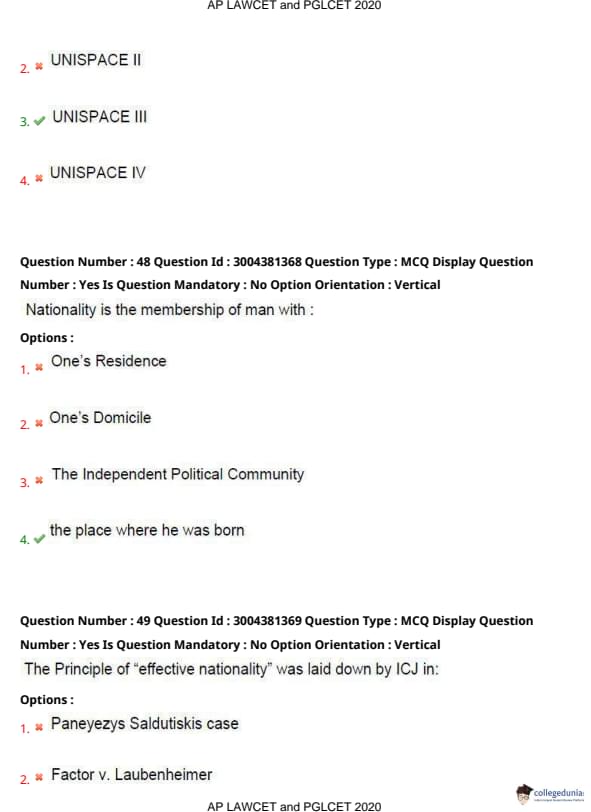 AP PGLCET 2020 LLM PG 2 Years Question Paper with Answer Key PDFs Shift 2