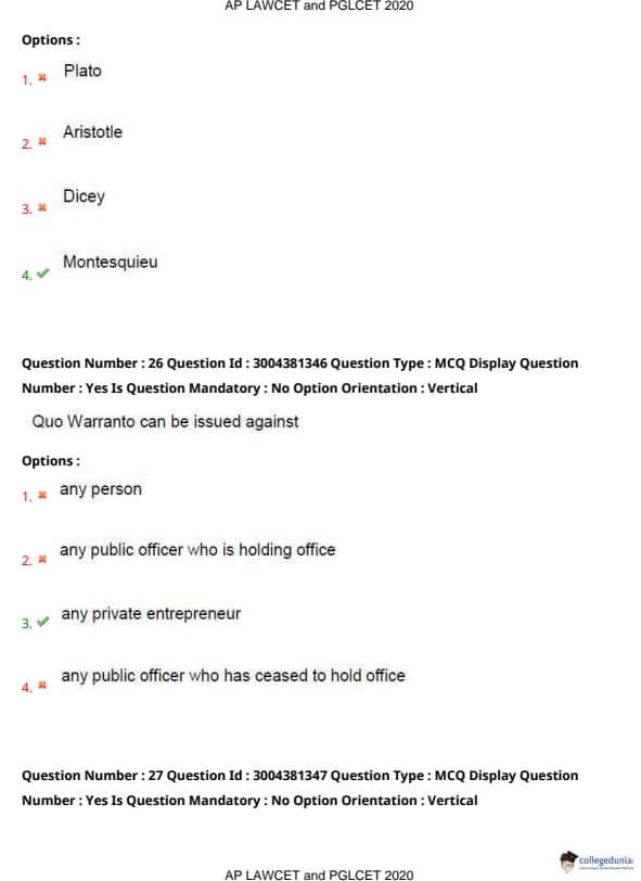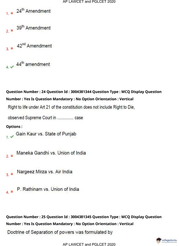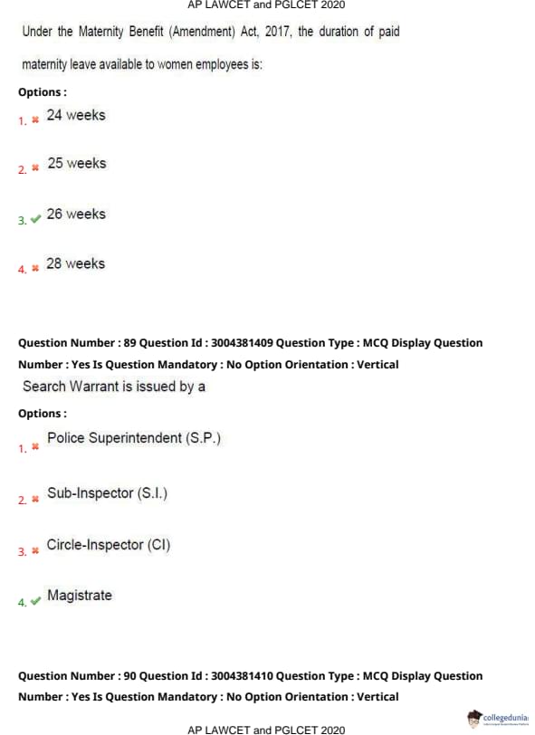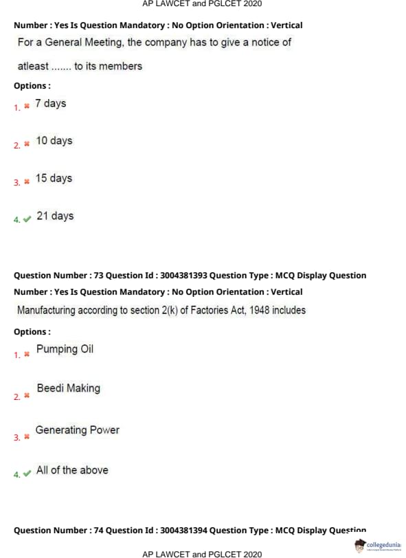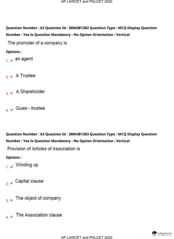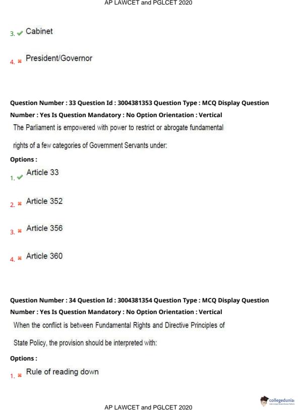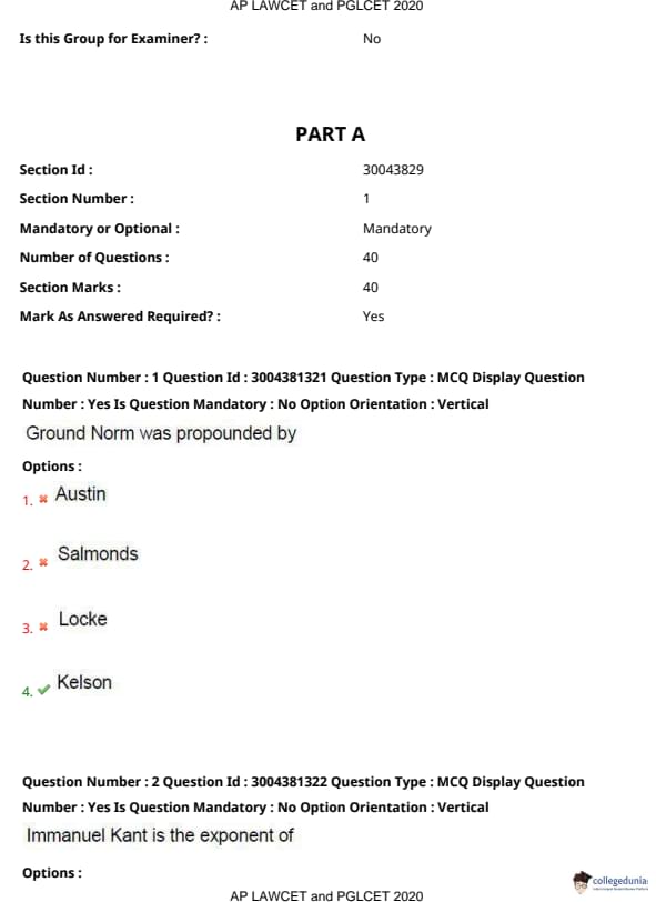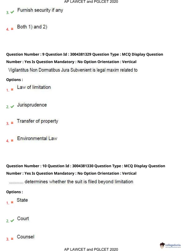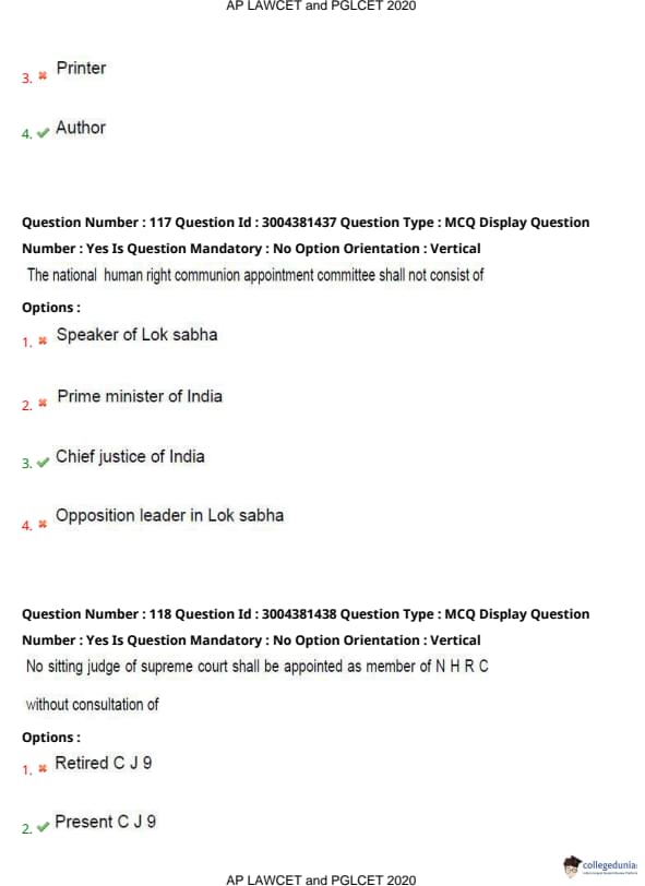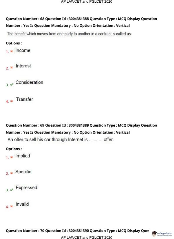 AP PGLCET 2020 LLM PG 2 Years Question Paper with Answer Key PDFs Shift 2