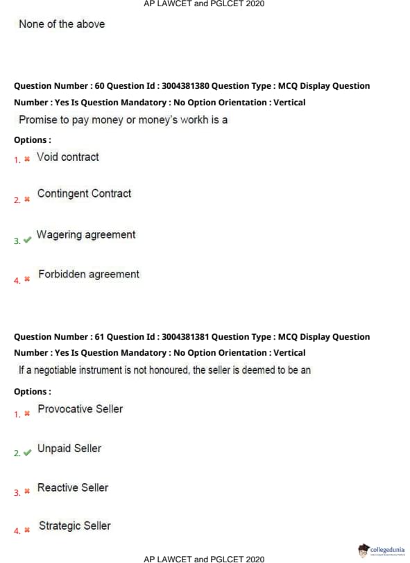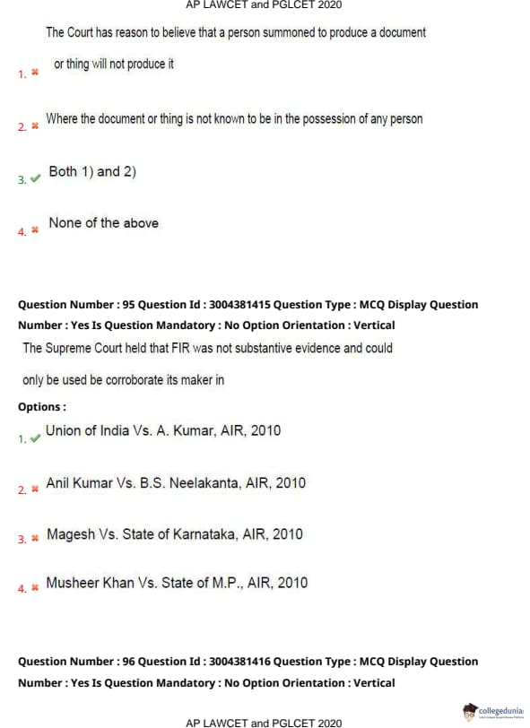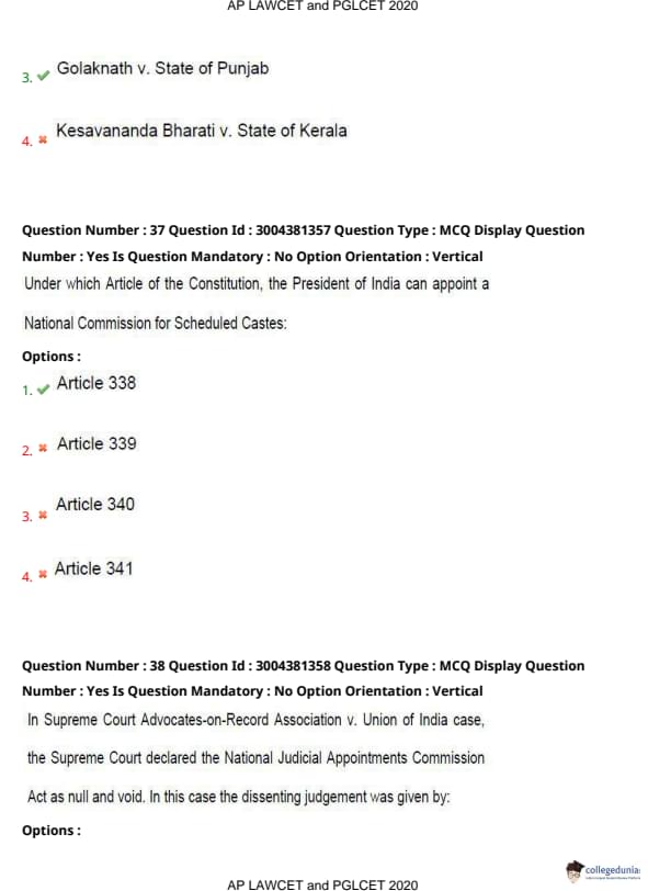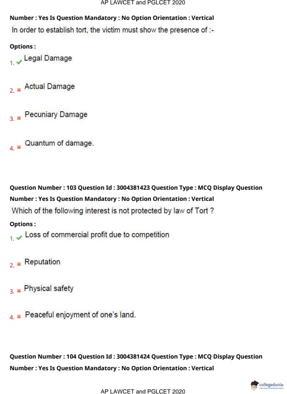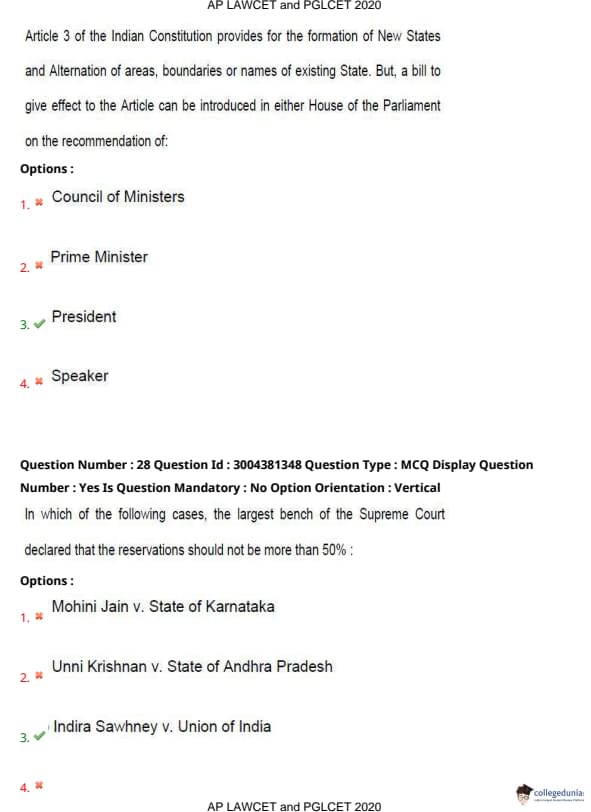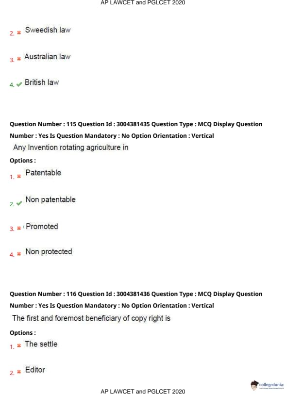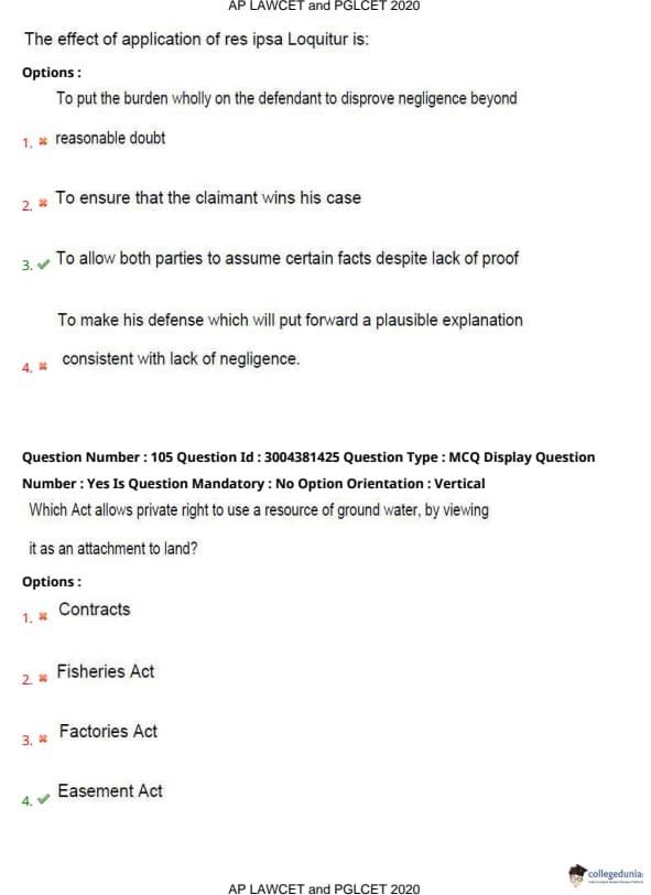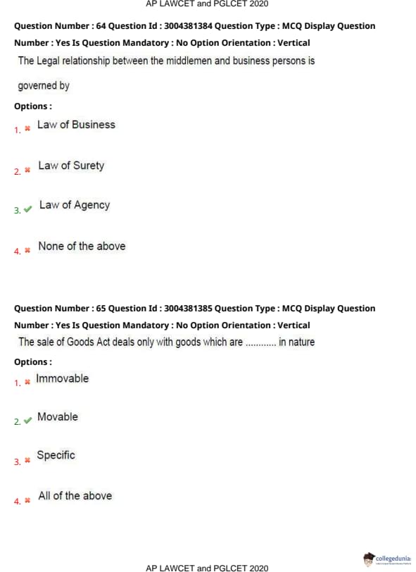| AP PGLCET 2020 LLM PG 2 Years Question Paper PDF | AP PGLCET 2020 LLM PG 2 Years Answer Key PDF |