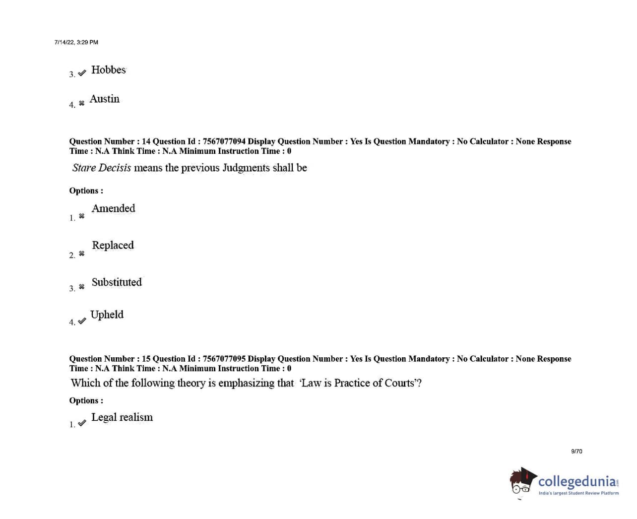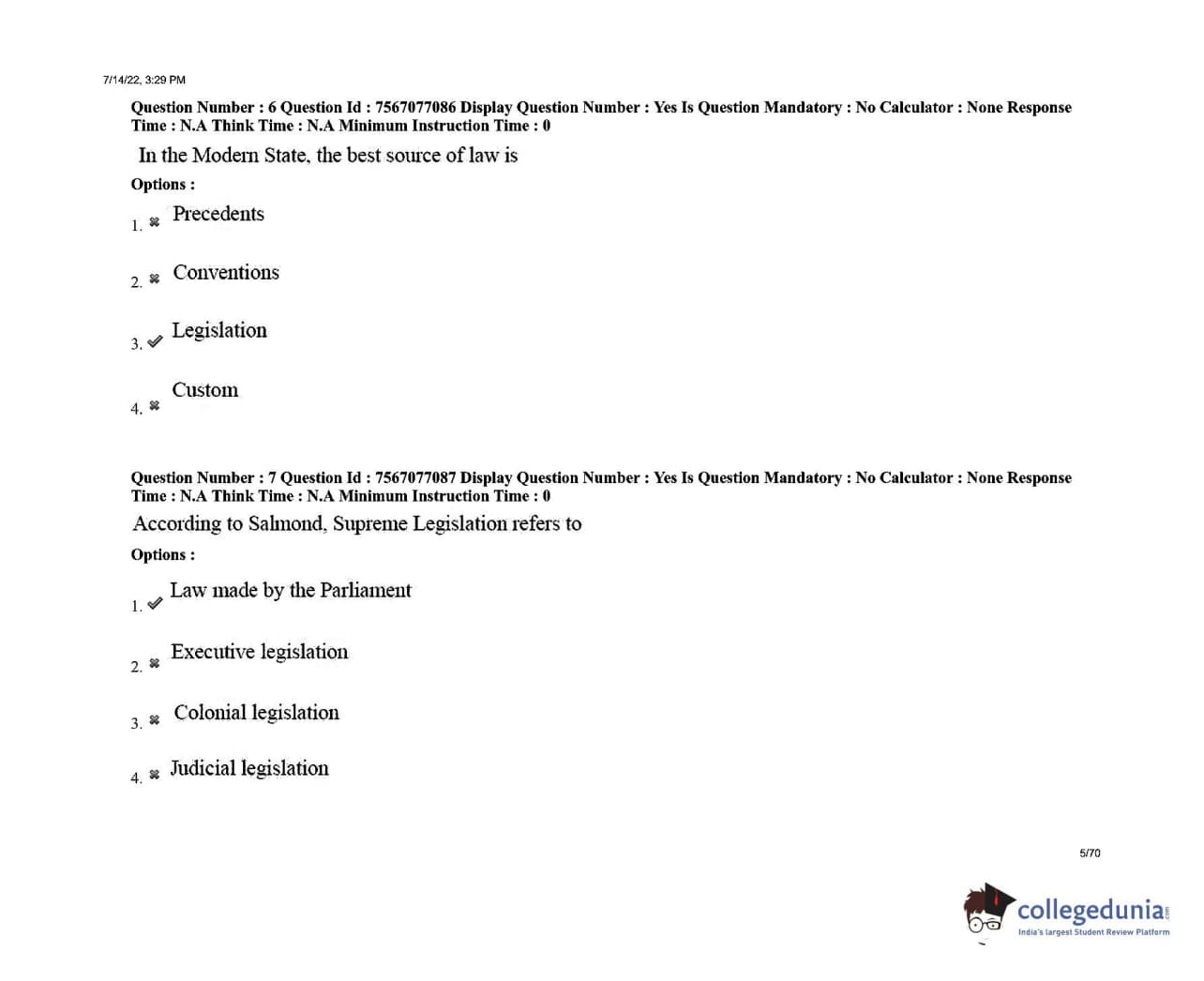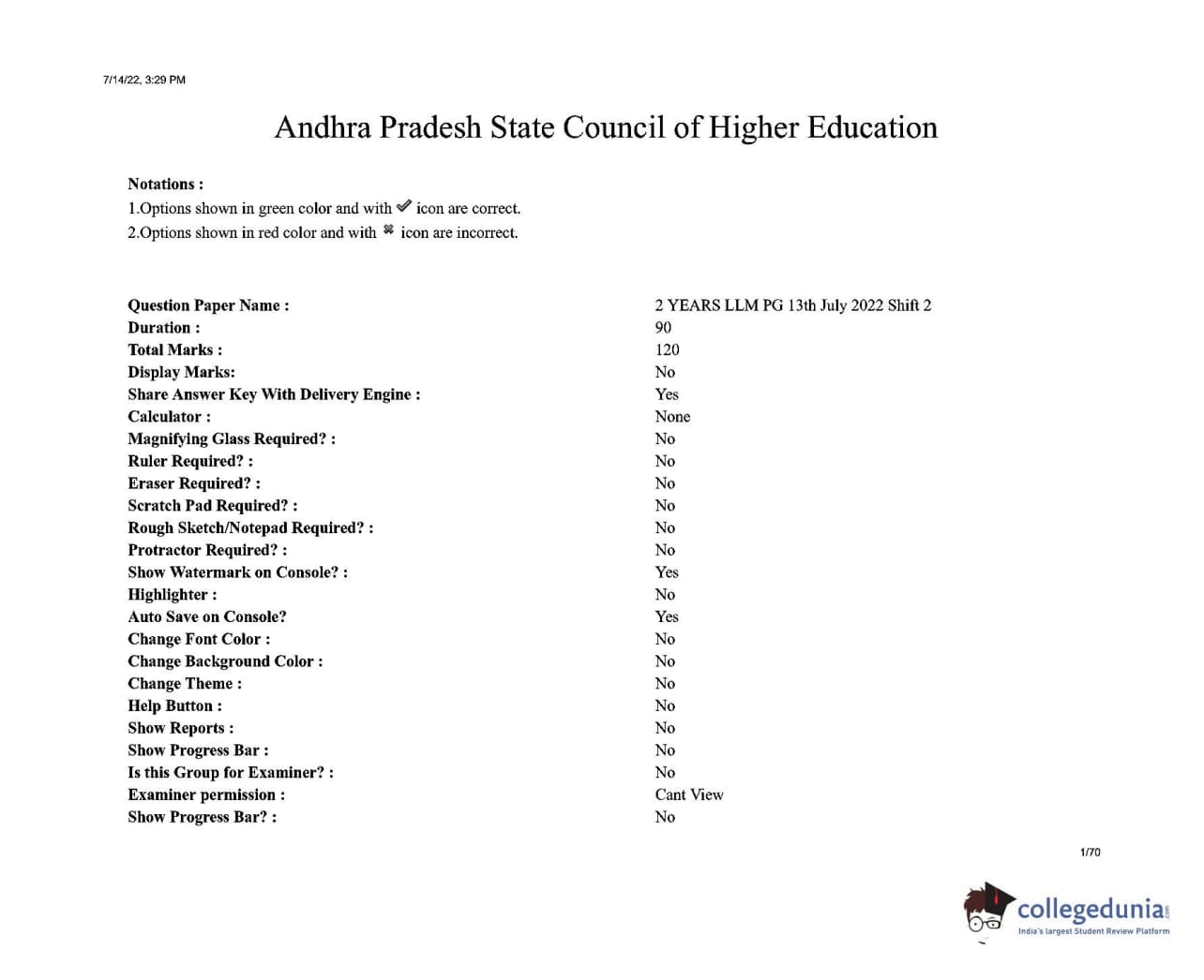 AP PGLCET 2022 LLM 2 Years Question Paper with Answer Key PDFs Shift 2