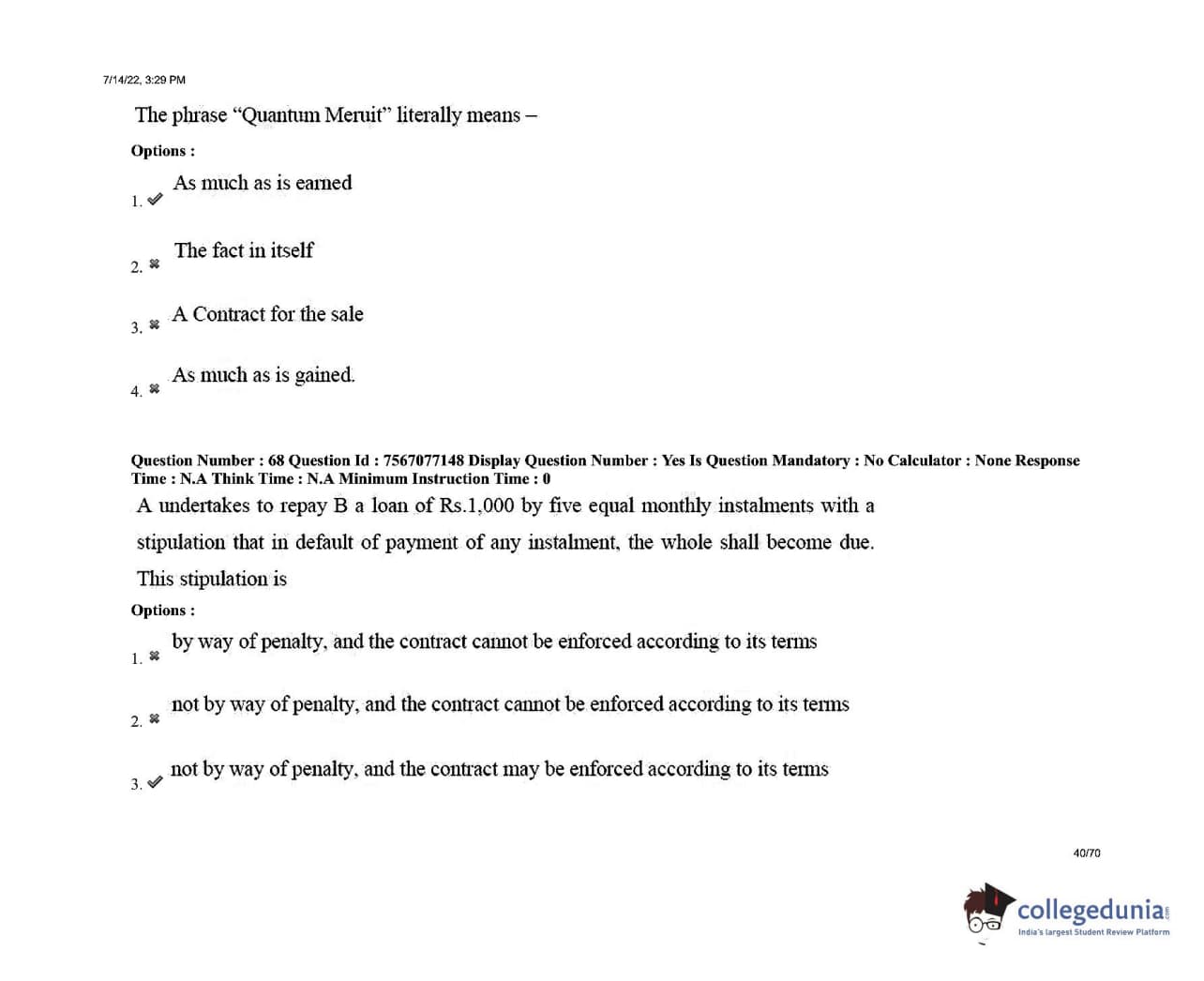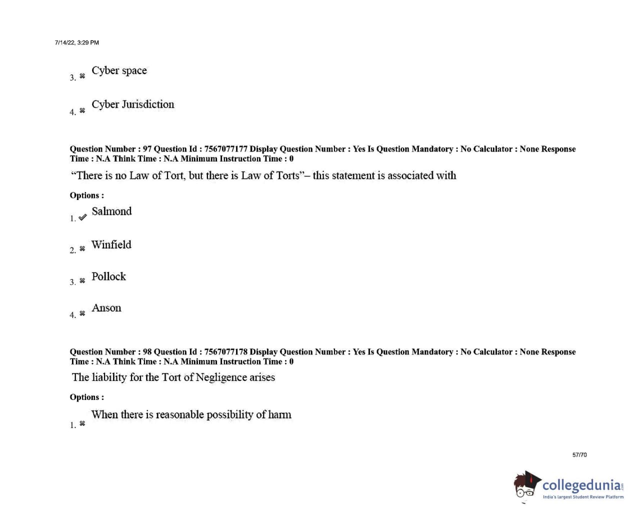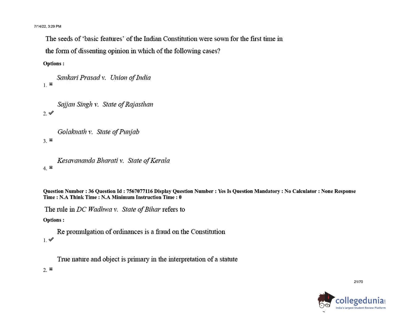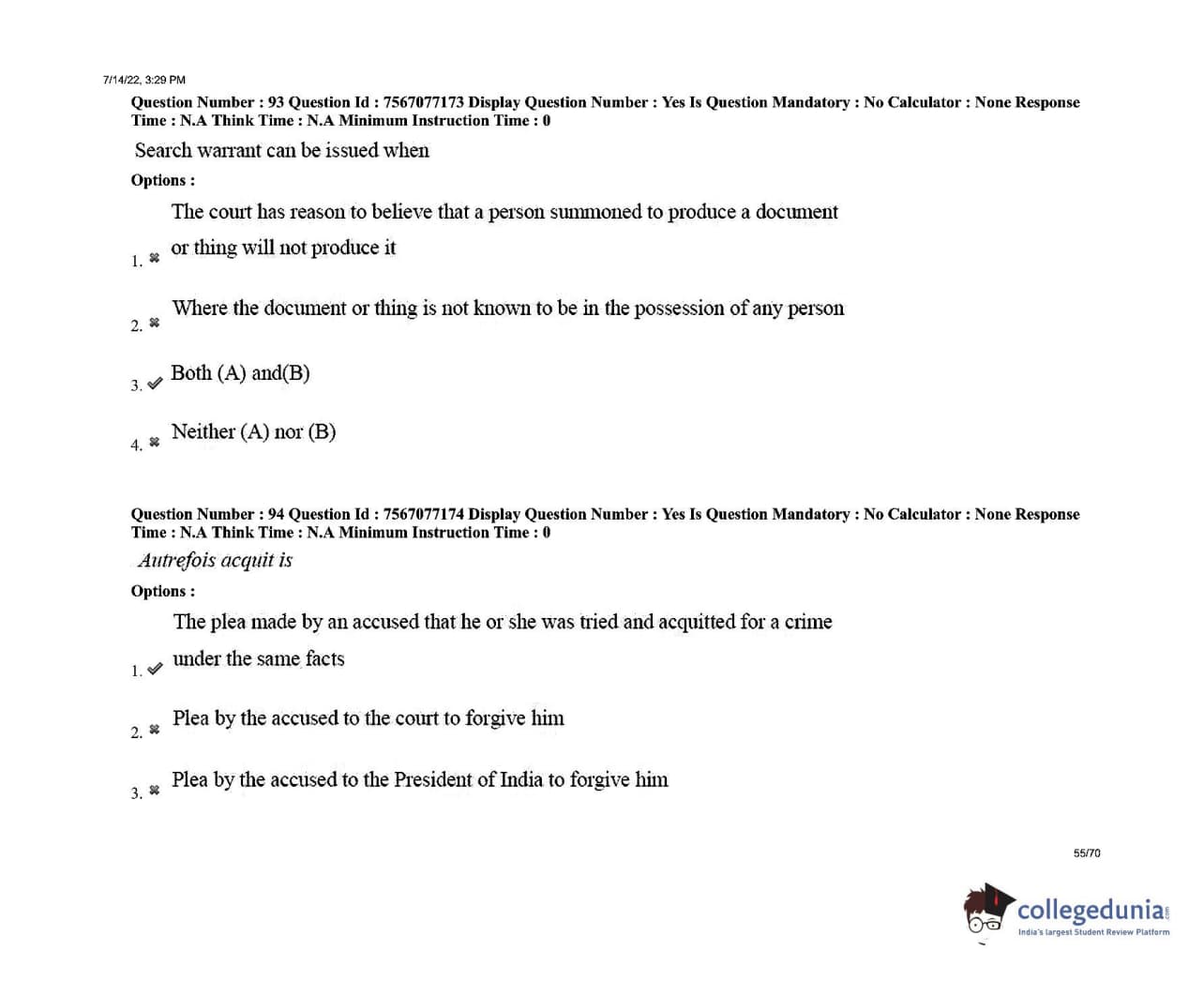 AP PGLCET 2022 LLM 2 Years Question Paper with Answer Key PDFs Shift 2