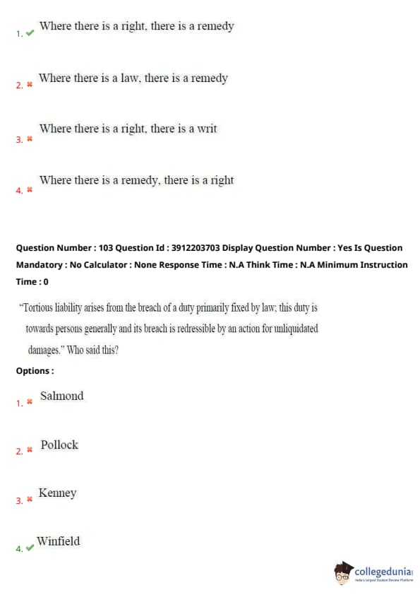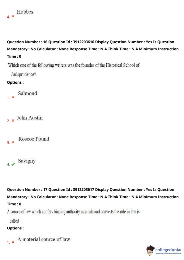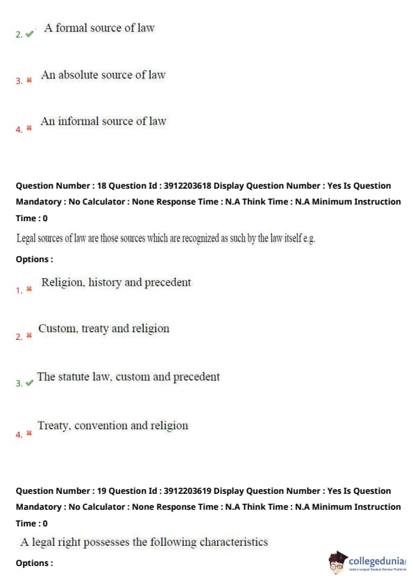 Similar Law Exam Question Papers: