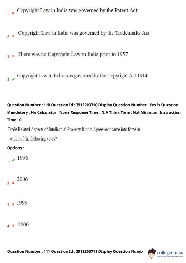 - (A) Copyright Law in India was governed by the Patent Act