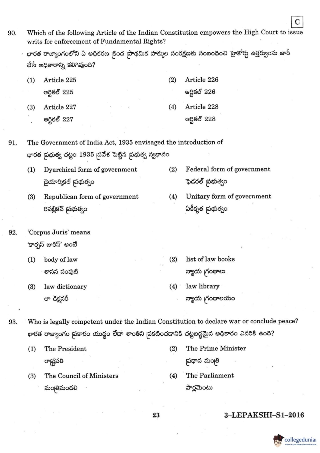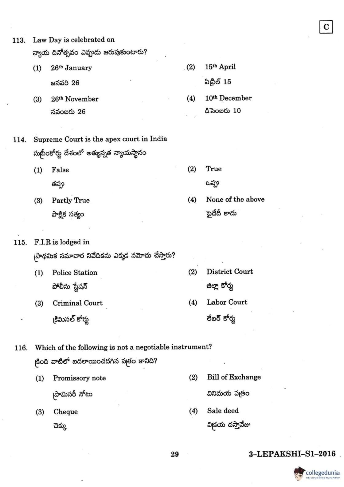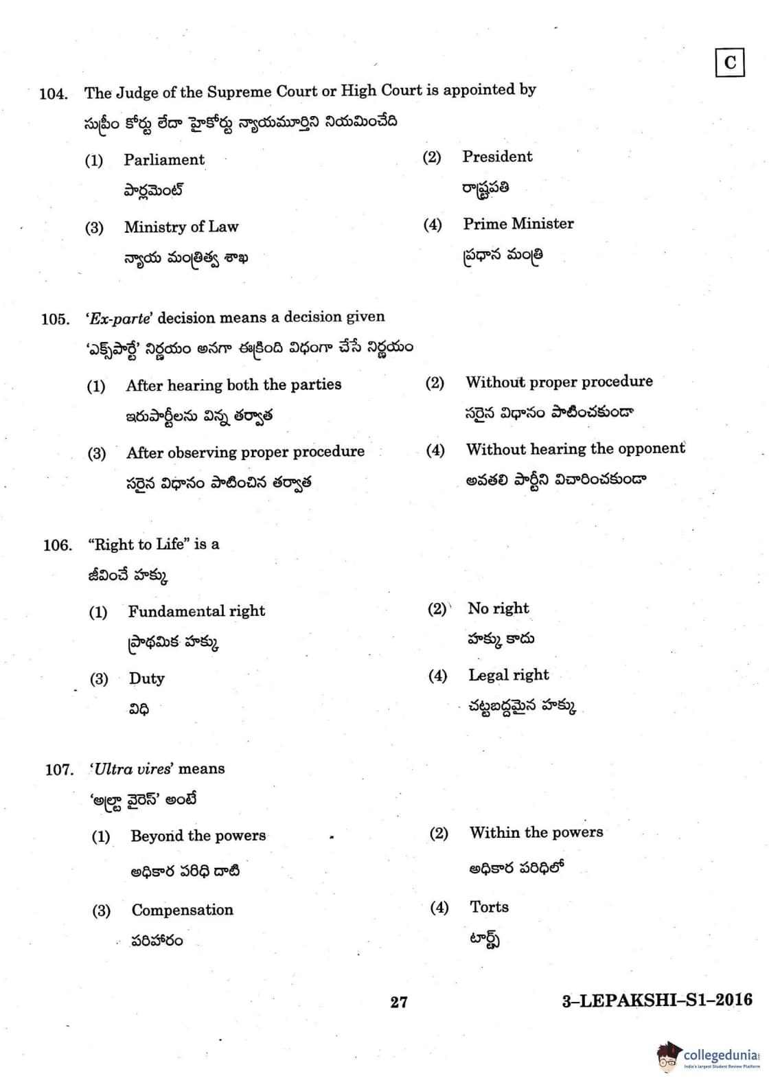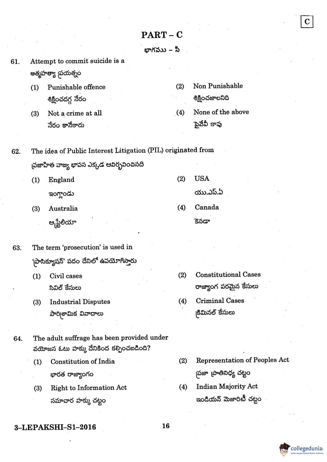 AP LAWCET 2016 Question Paper with Answer Key PDFs