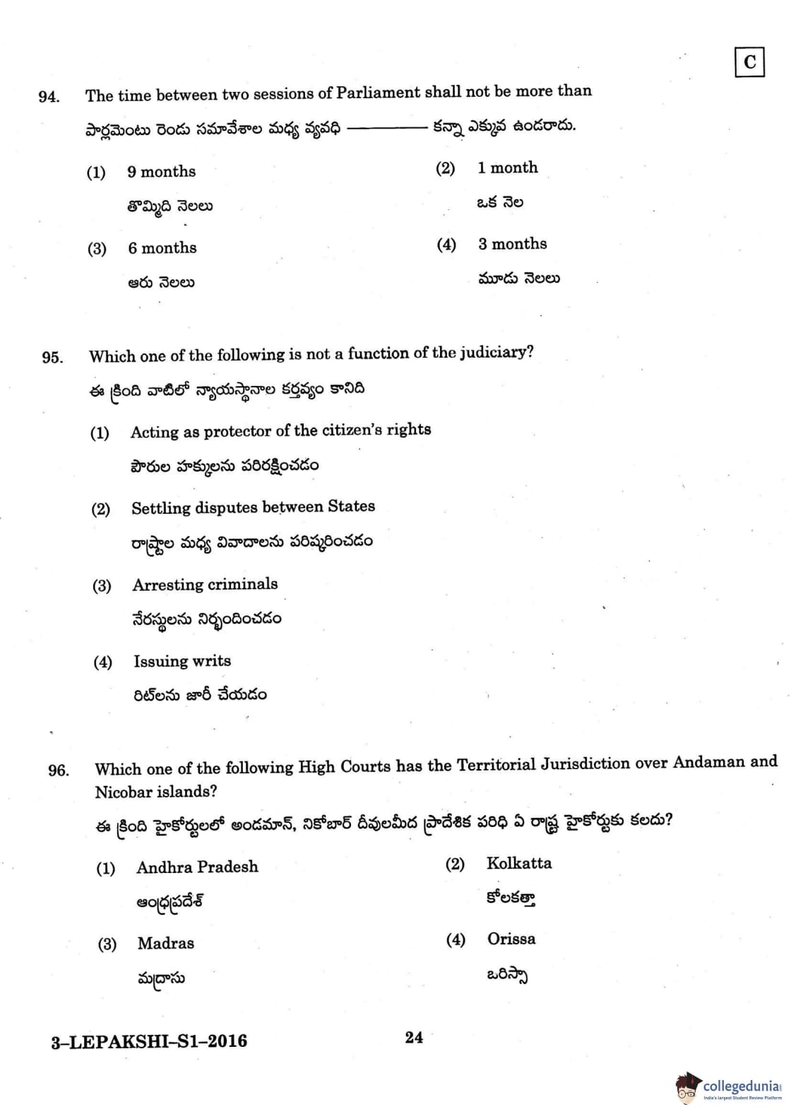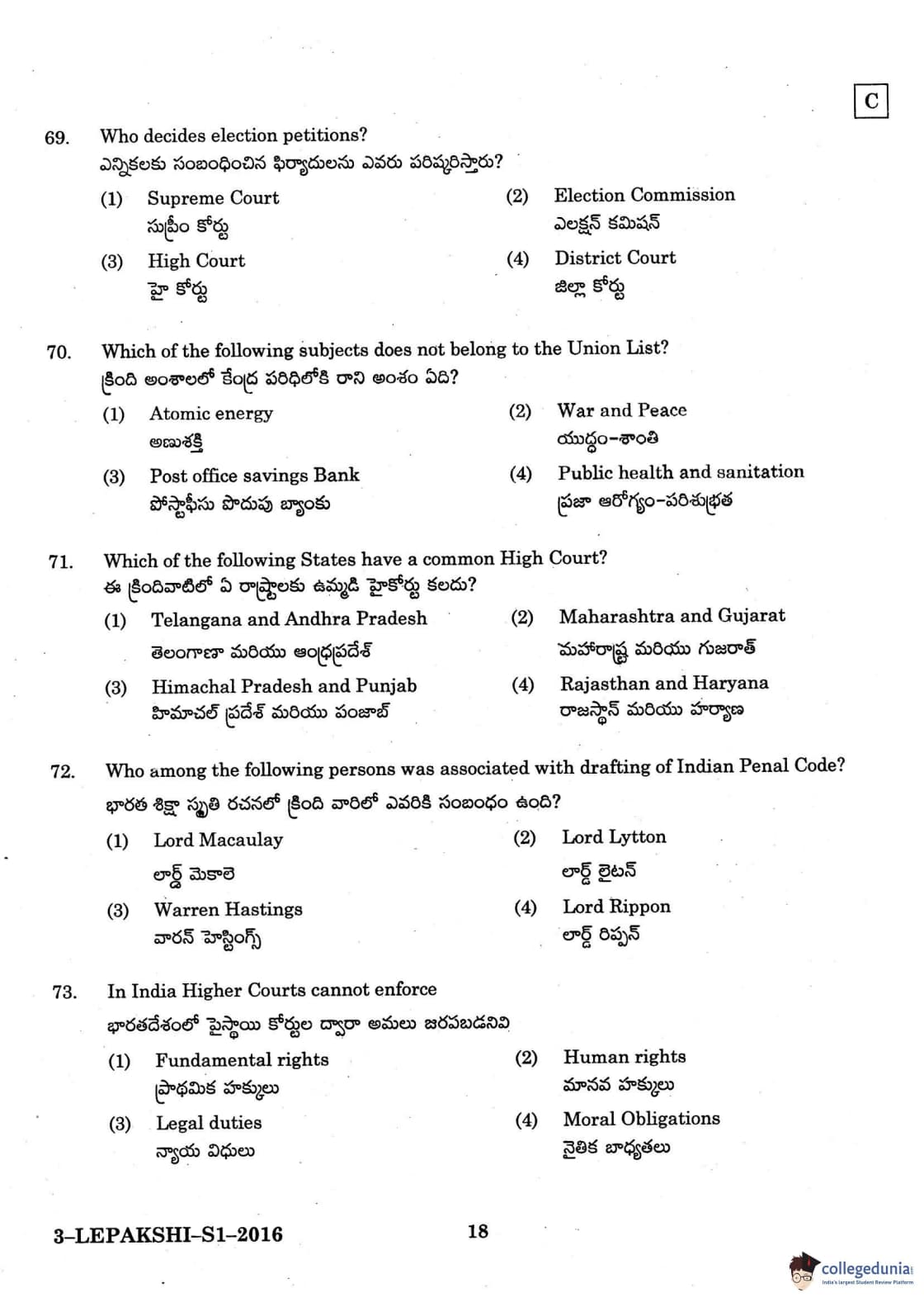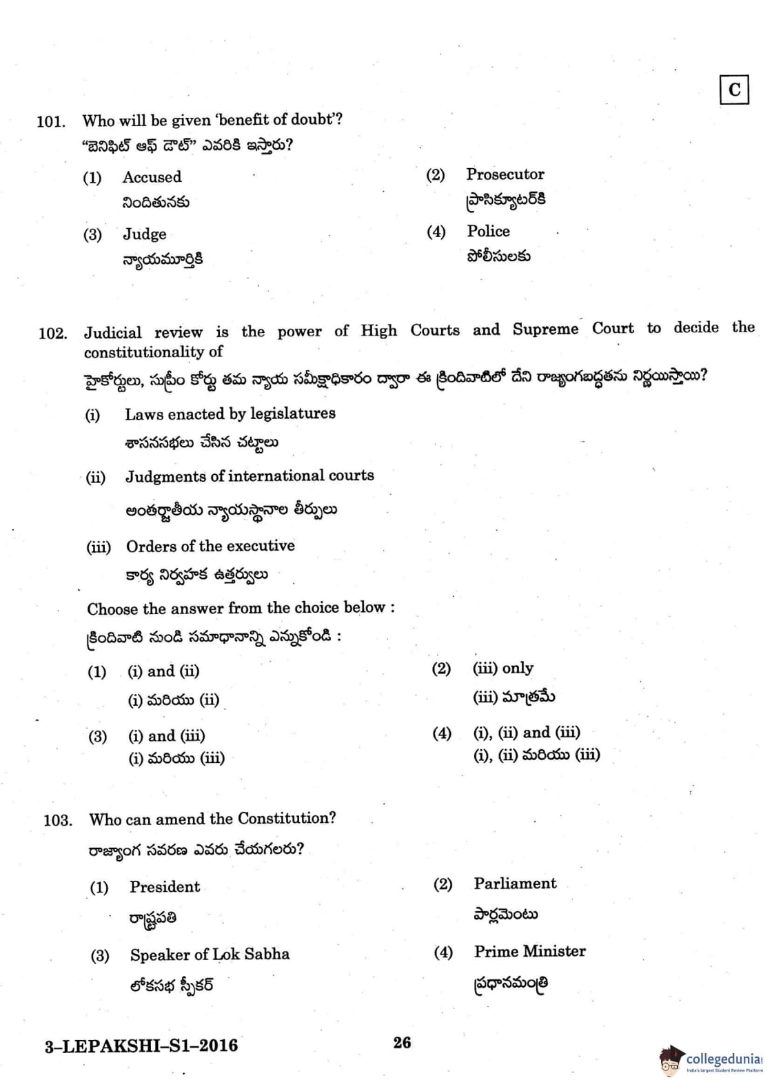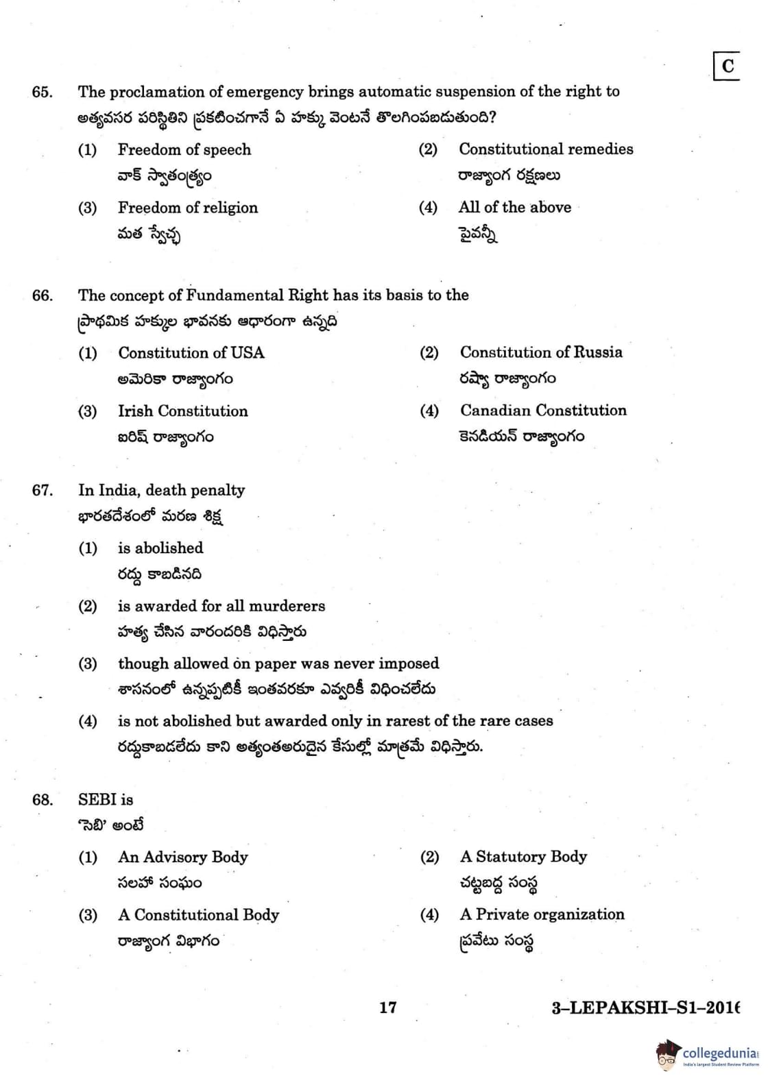 AP LAWCET 2016 Question Paper with Answer Key PDFs