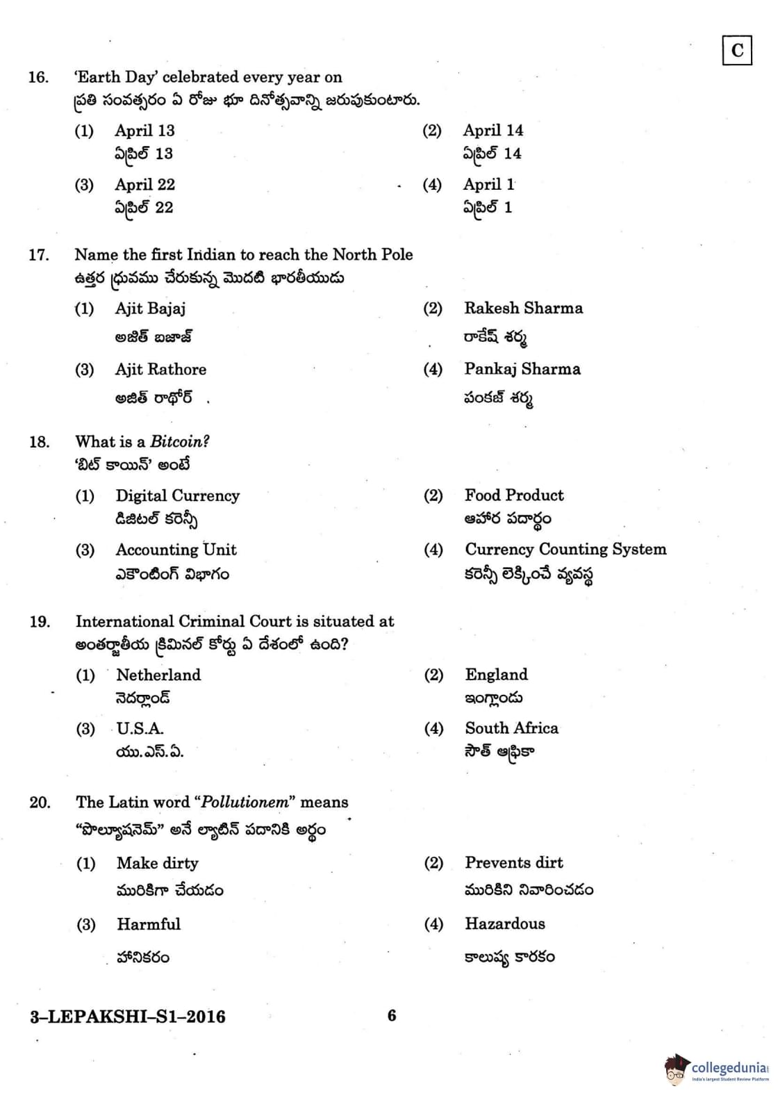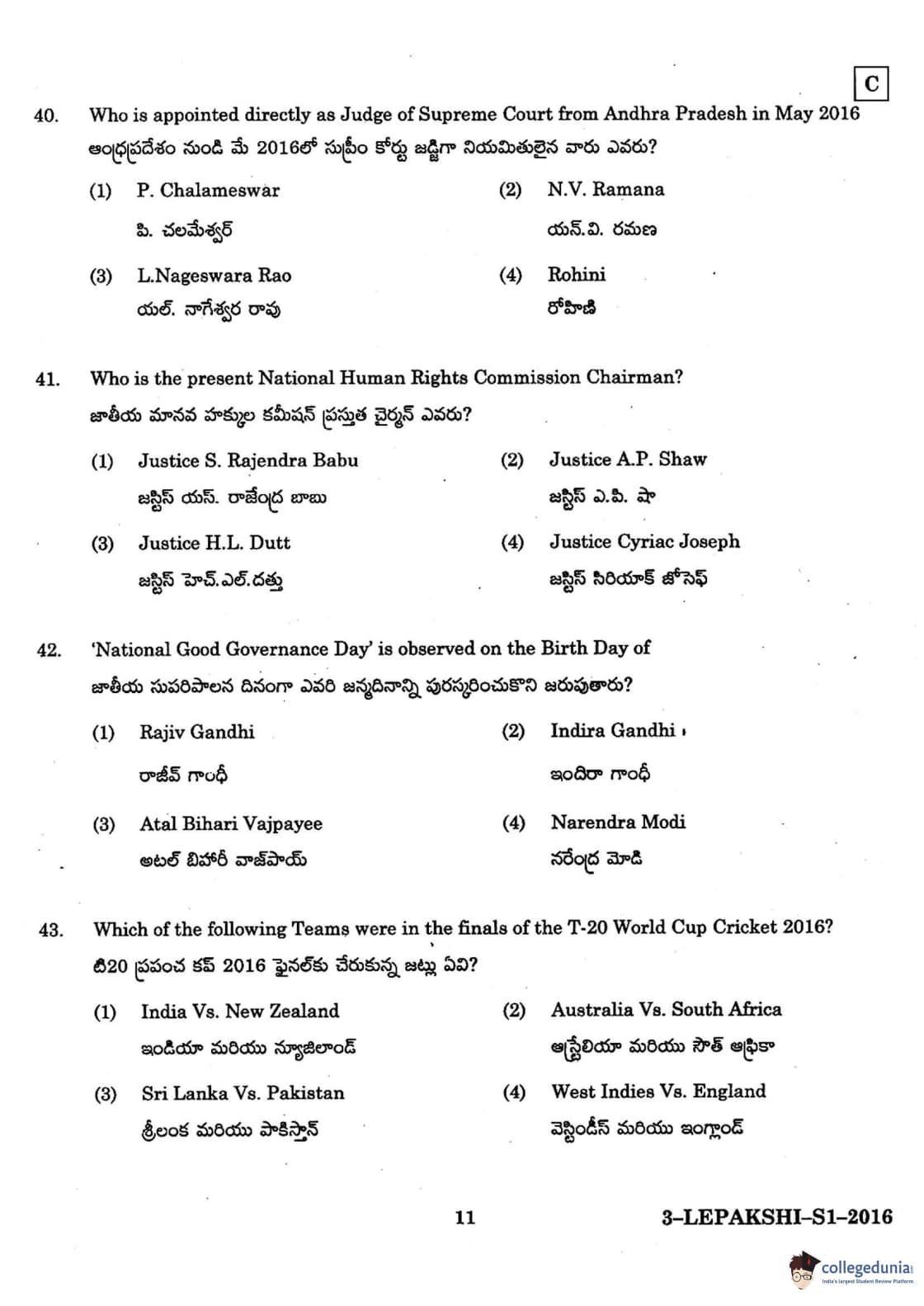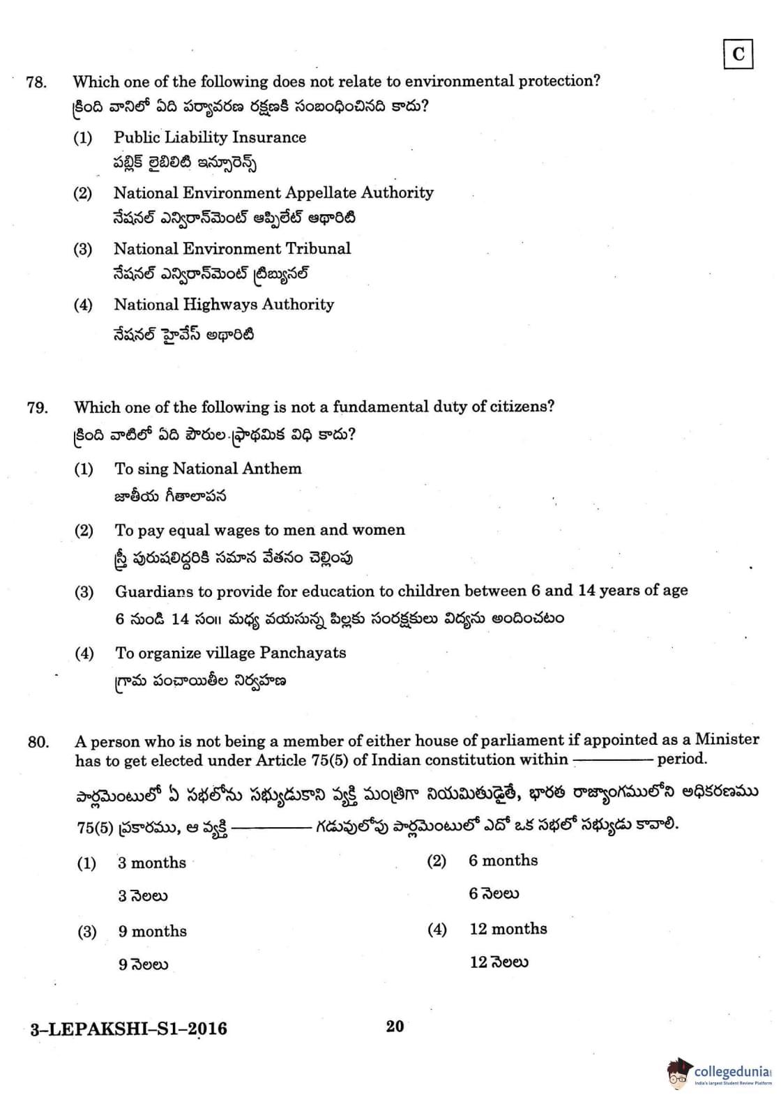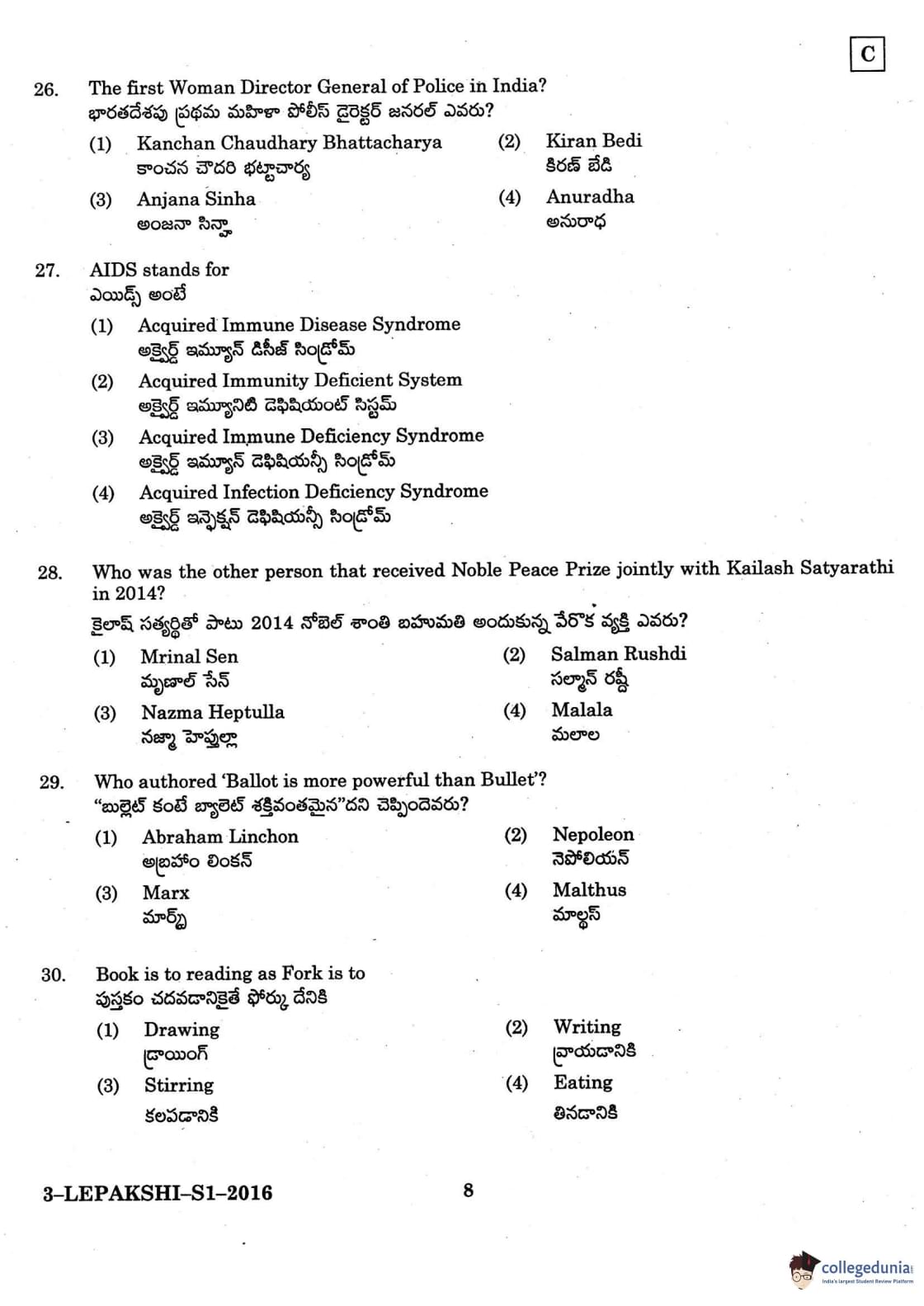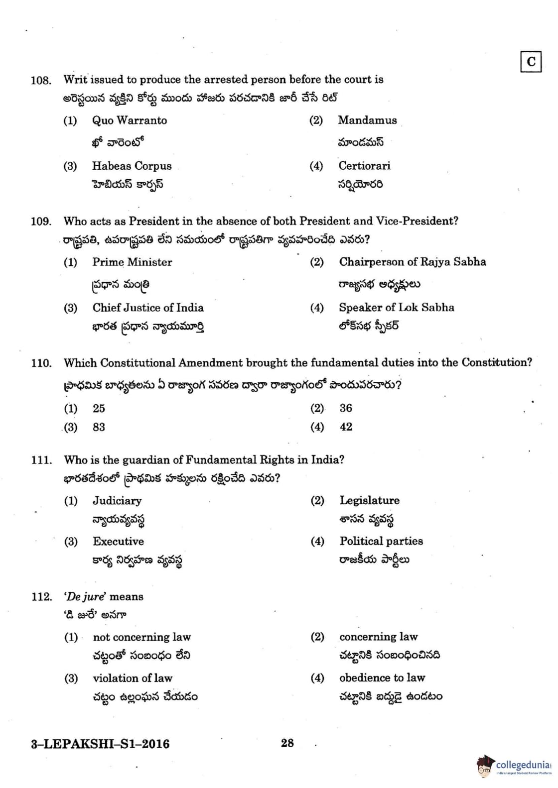 AP LAWCET 2016 Question Paper with Answer Key PDFs
