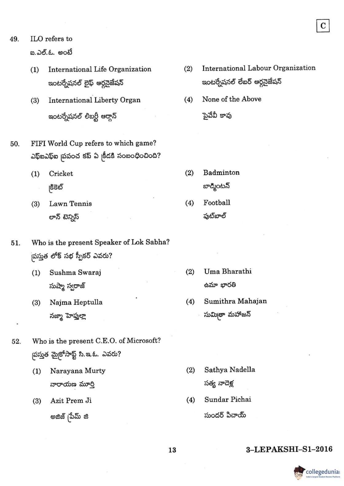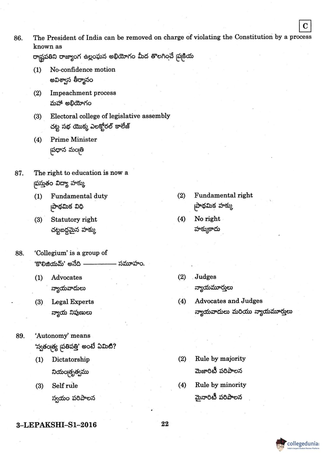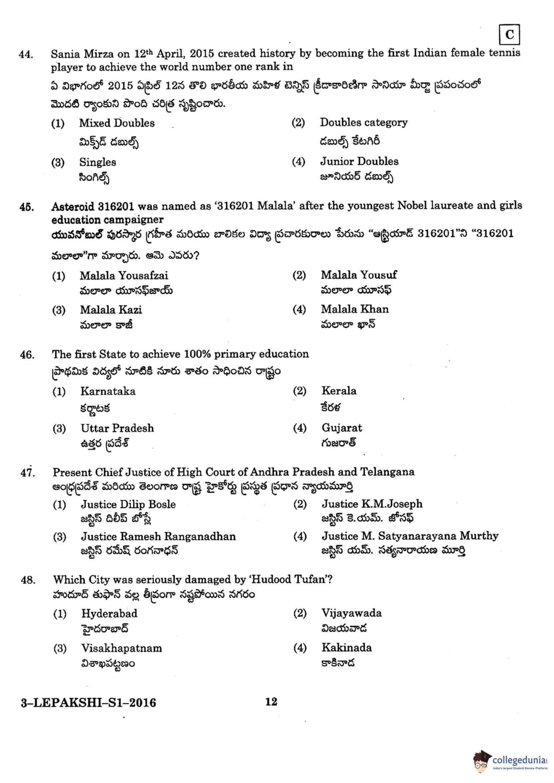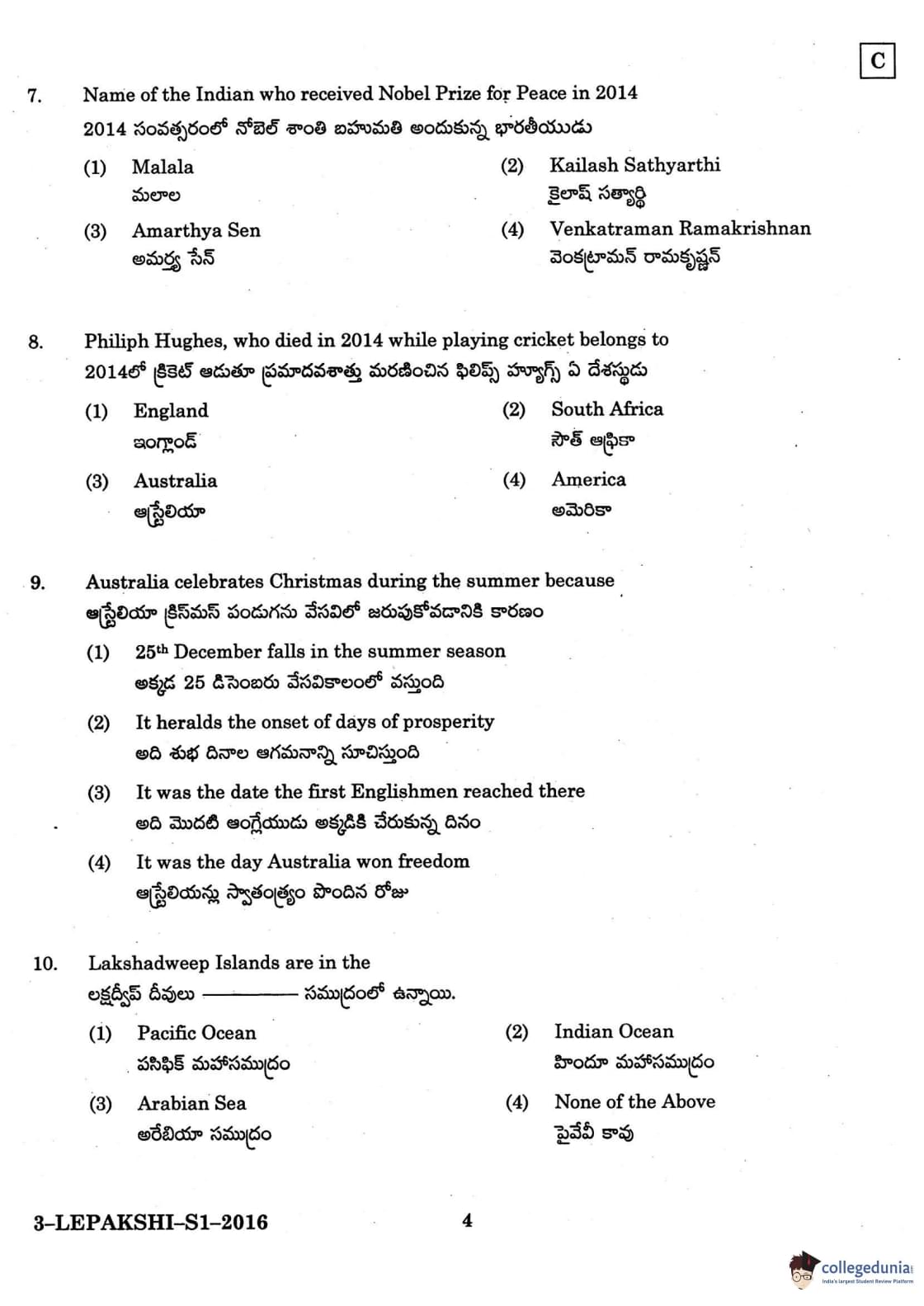 AP LAWCET 2016 Question Paper with Answer Key PDFs