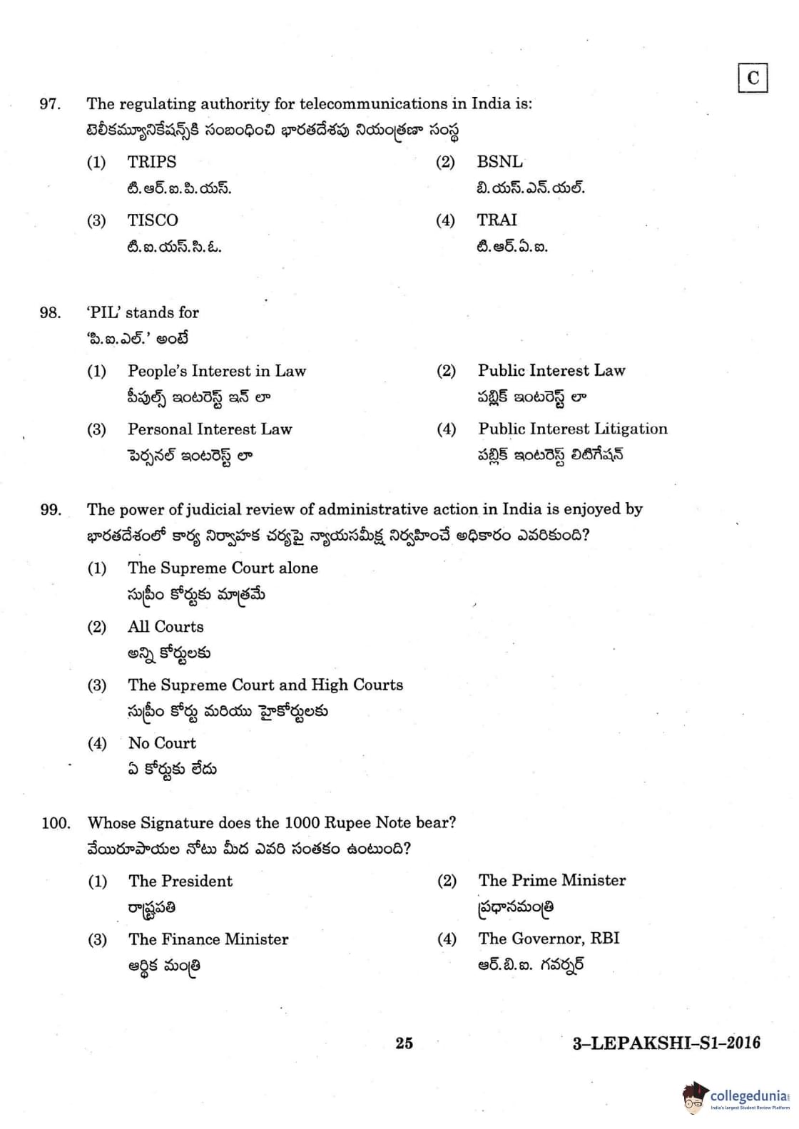 | AP LAWCET 2016 3 Years Question Paper PDF | AP LAWCET 2016 3 Years Answer Key PDF |