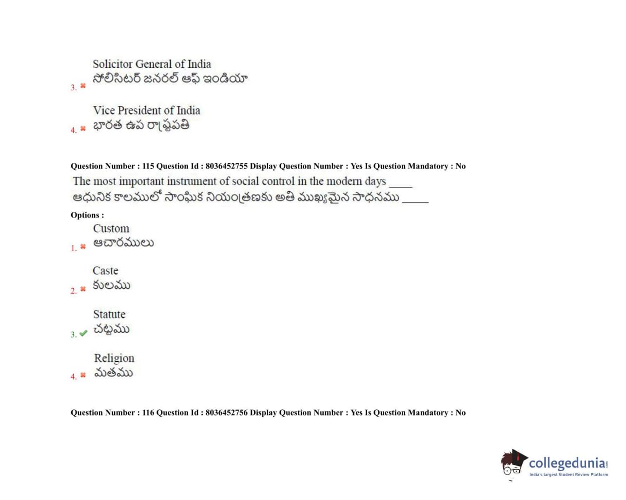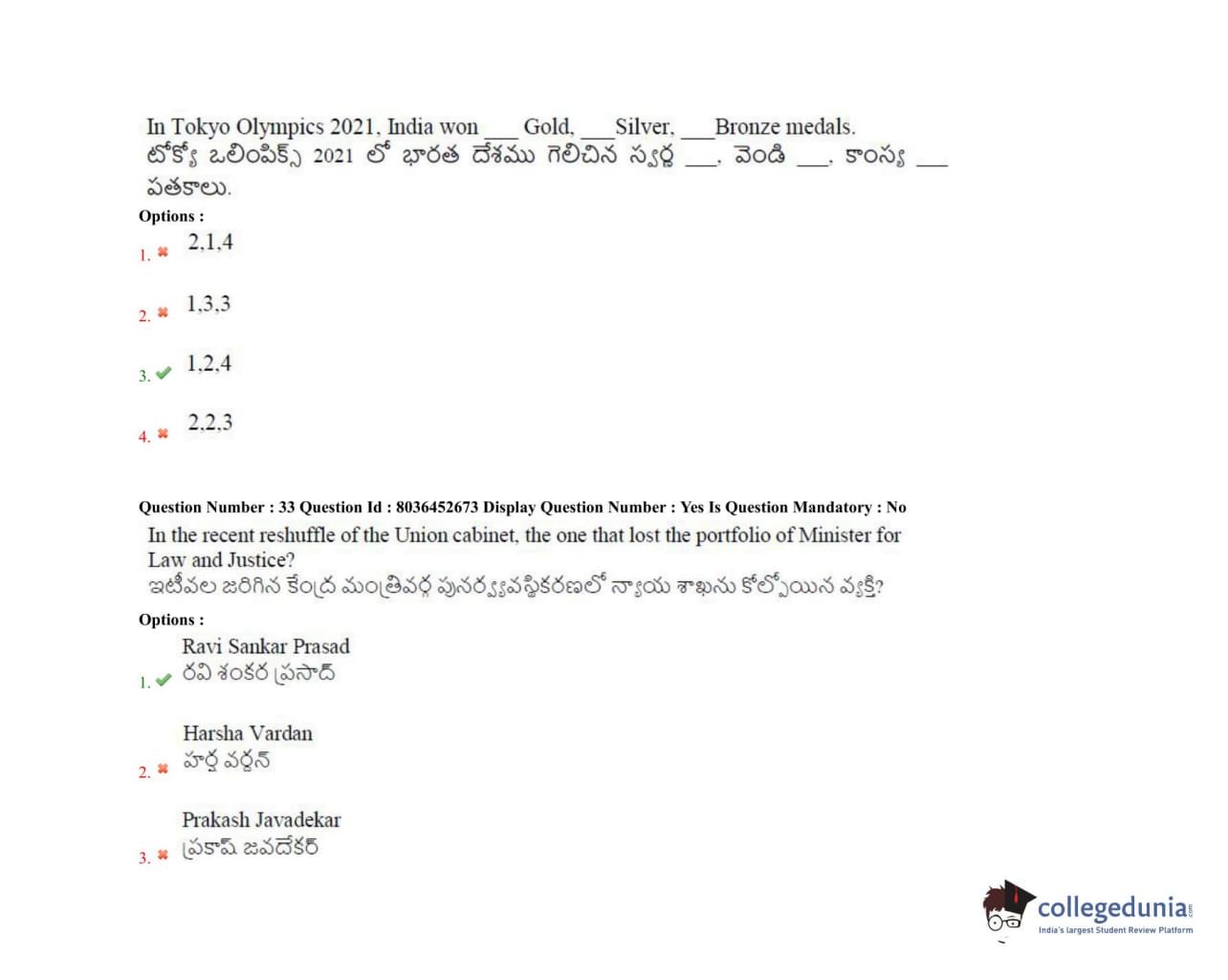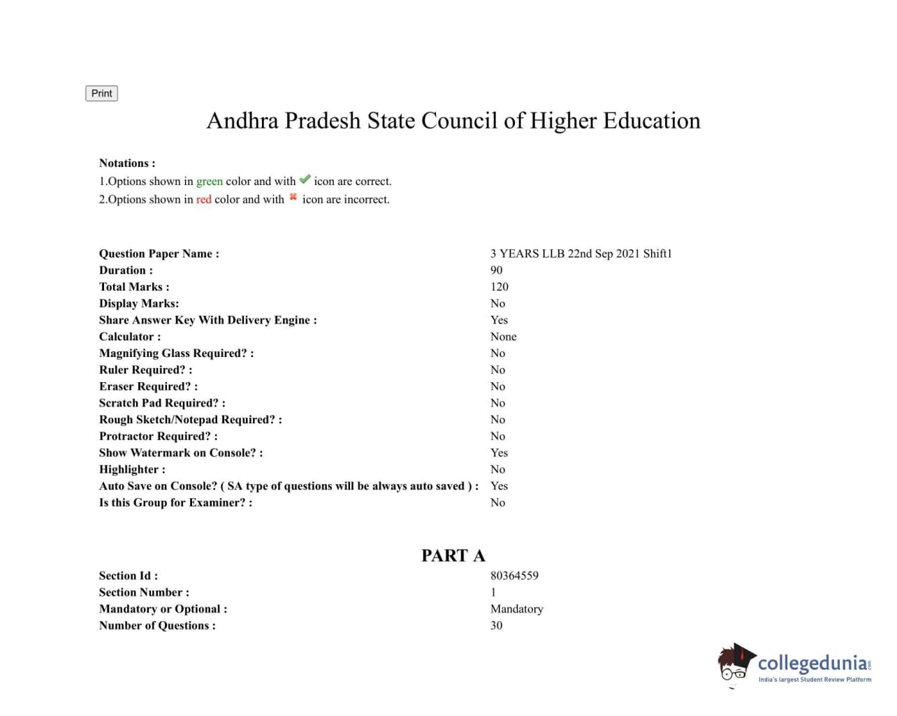 | AP LAWCET 2021 LLB (3 Years) Question Paper PDF | AP LAWCET 2021 LLB (3 Years) Answer Key PDF |