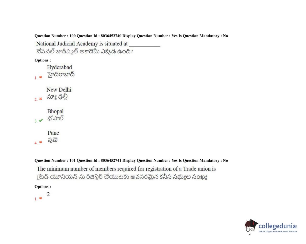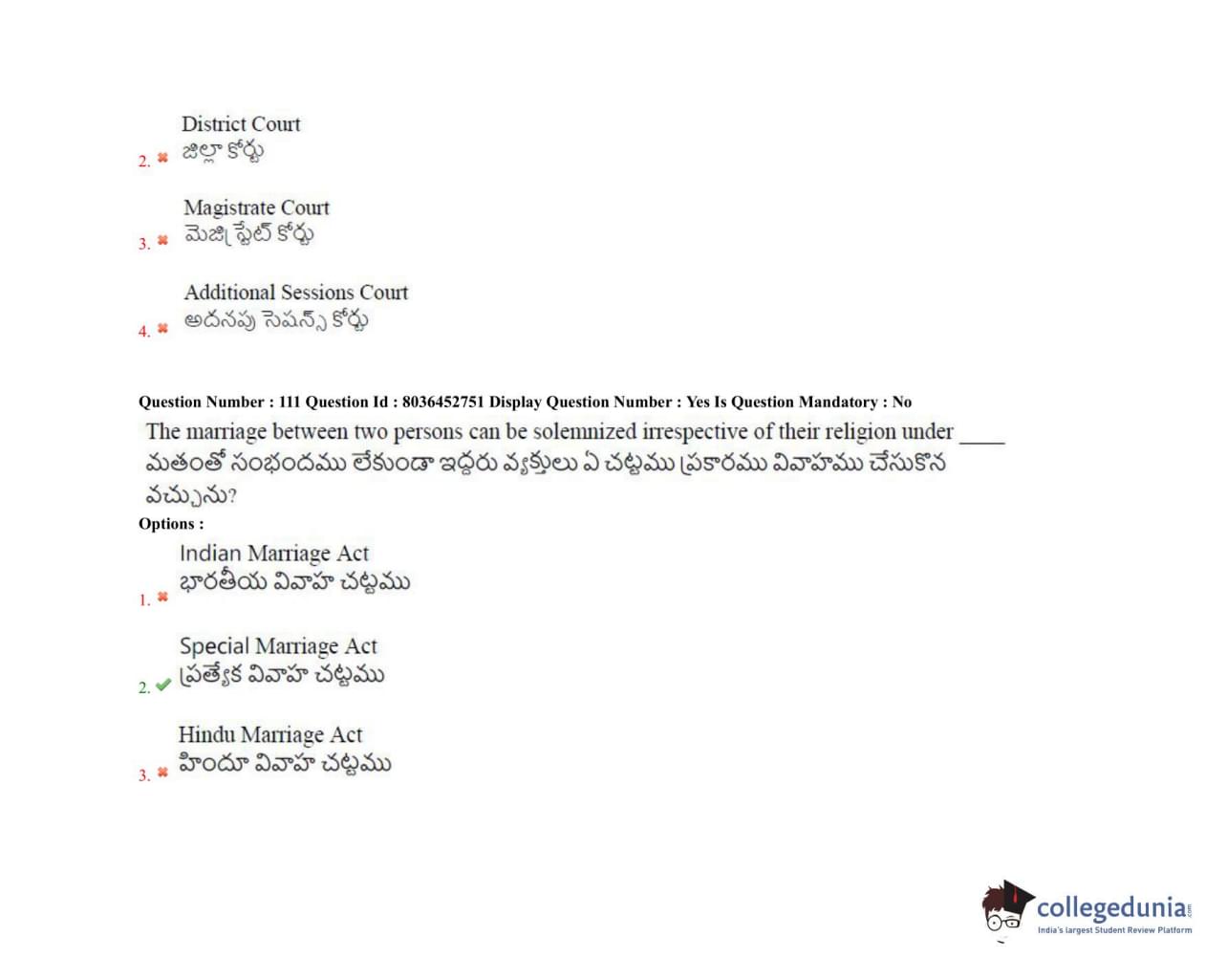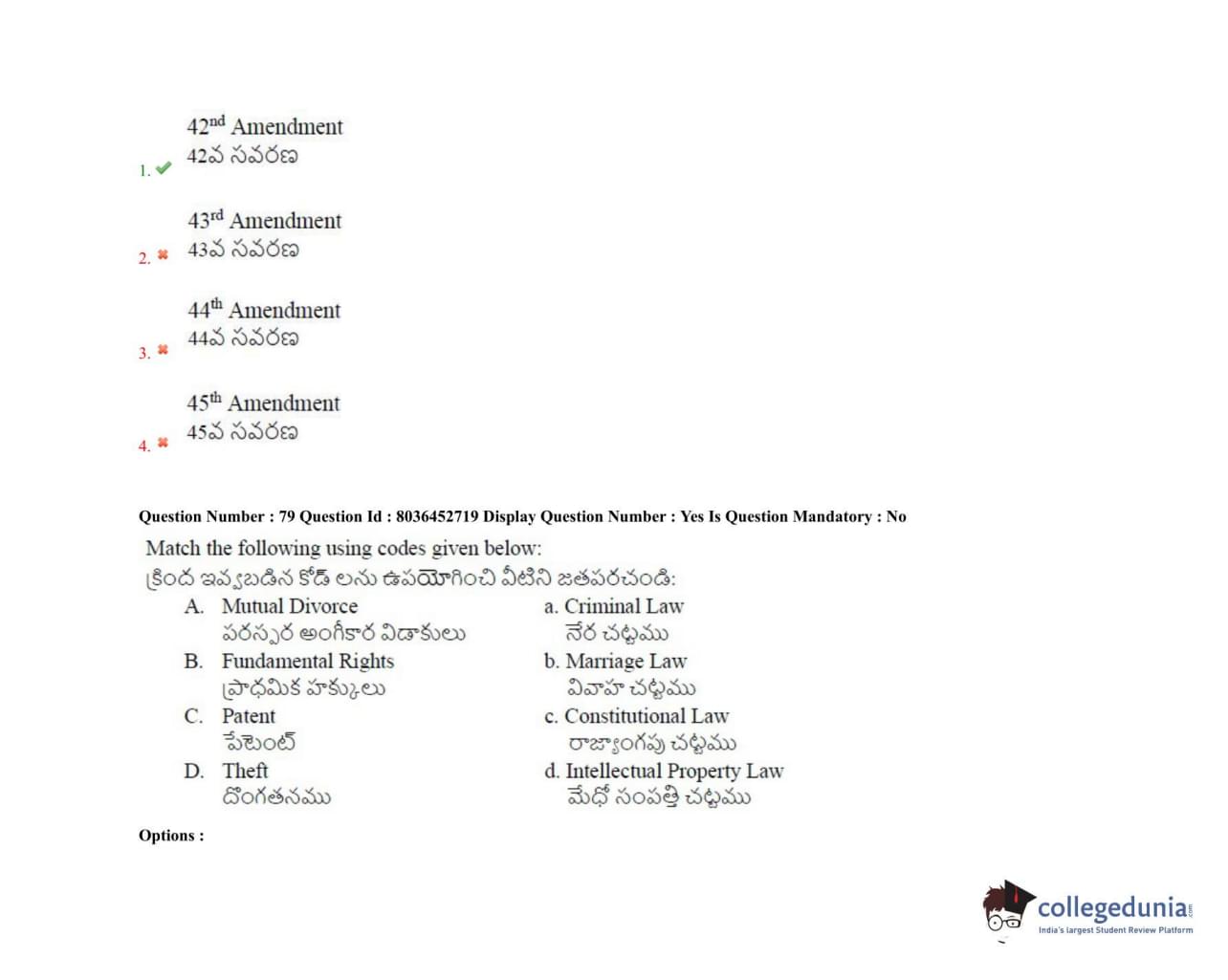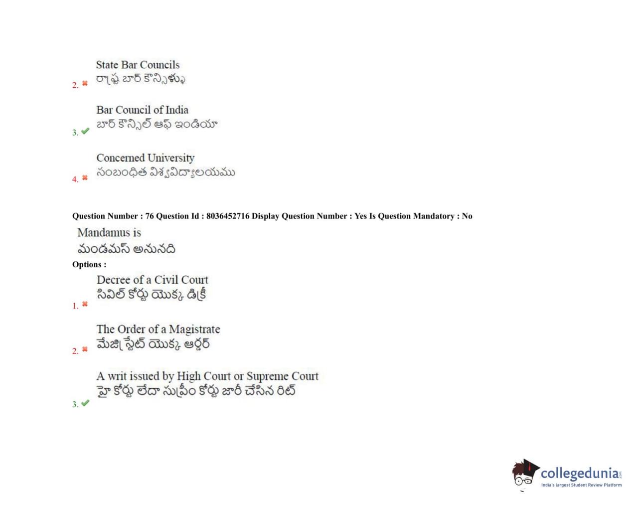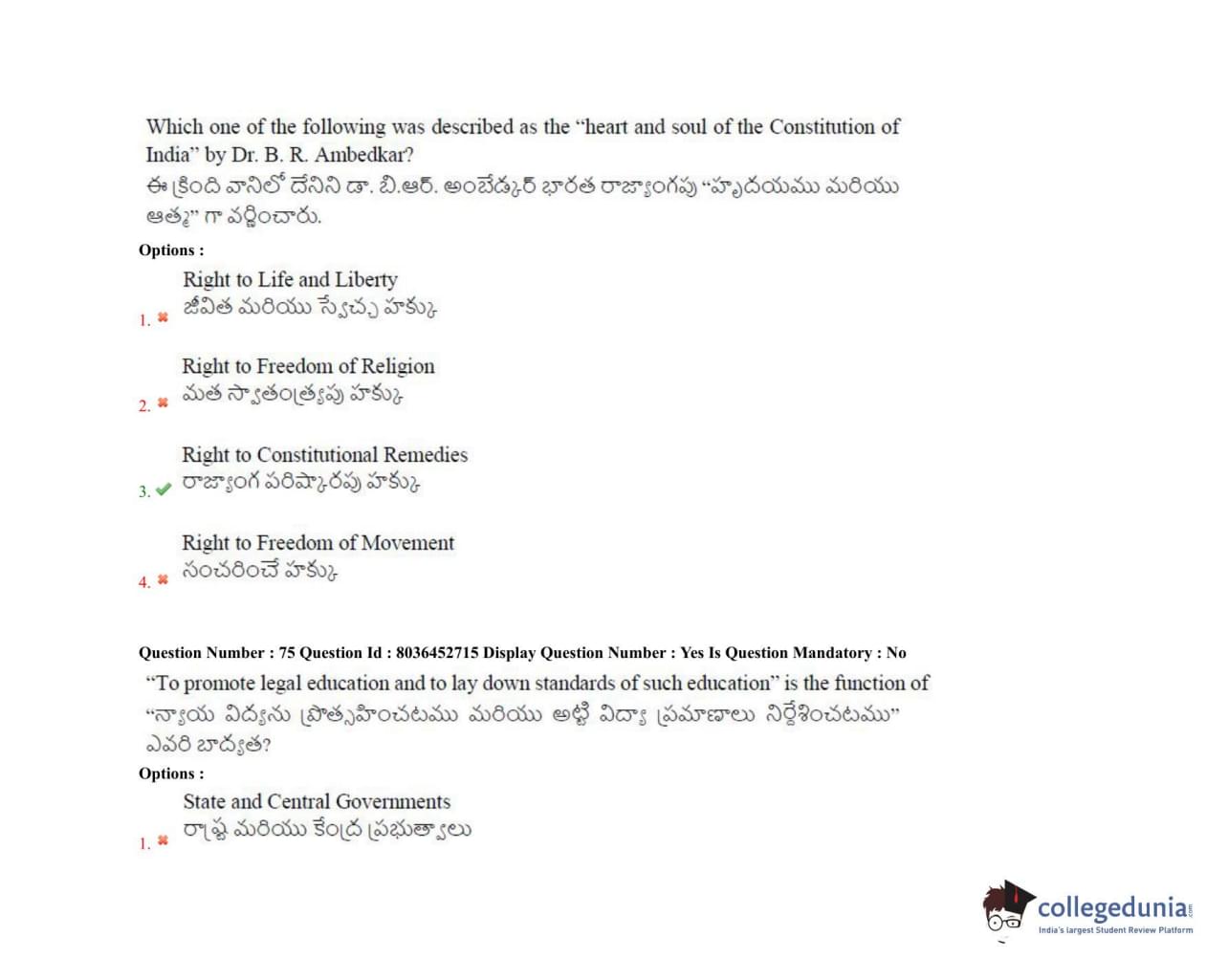 AP LAWCET 2021 LLB (3 Years) Question Paper with Answer Key PDFs Forenoon Session