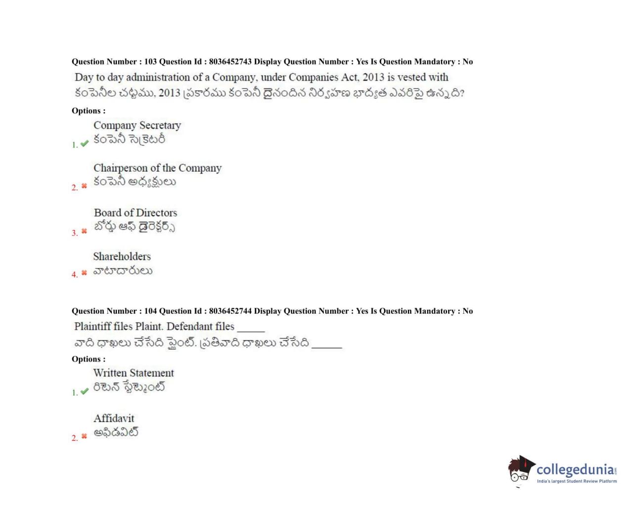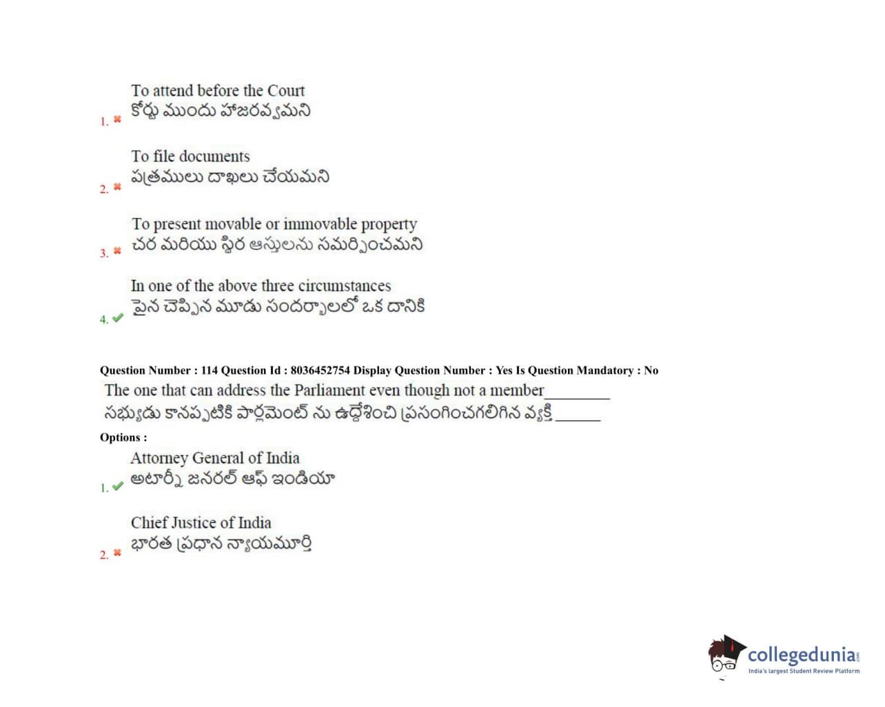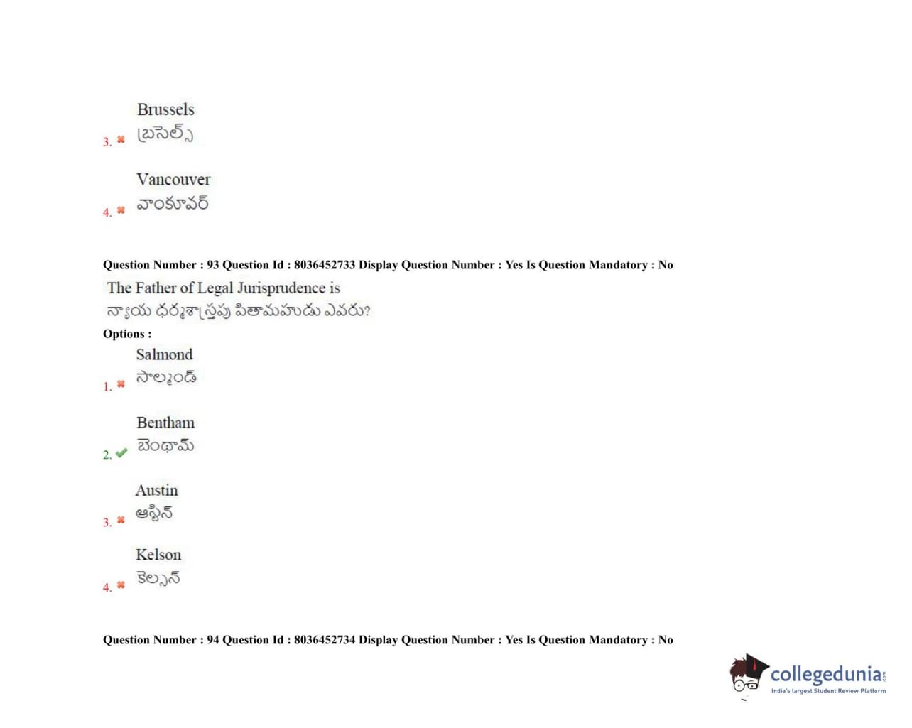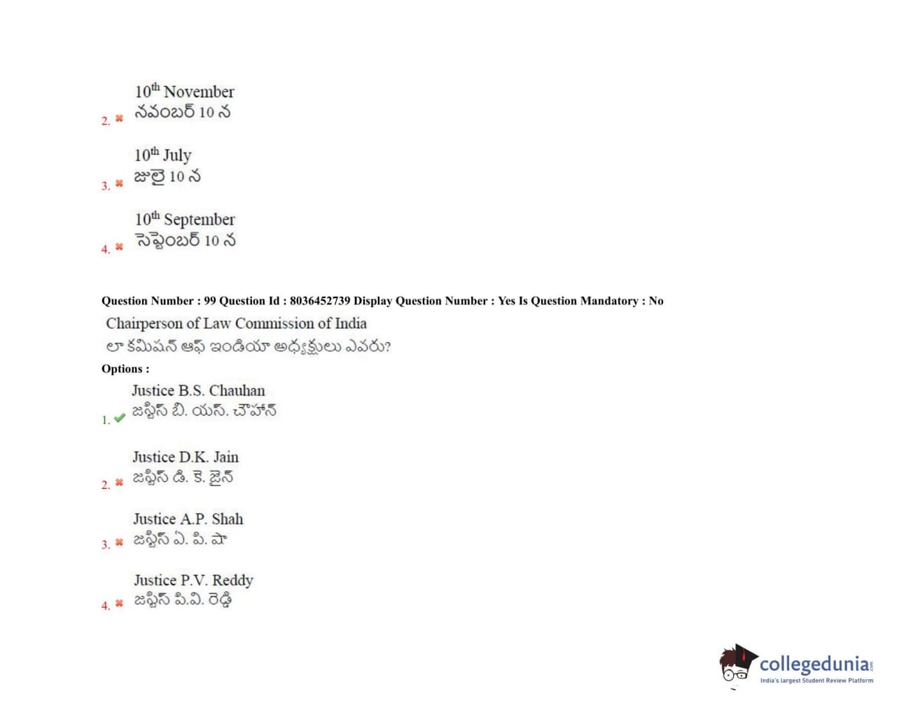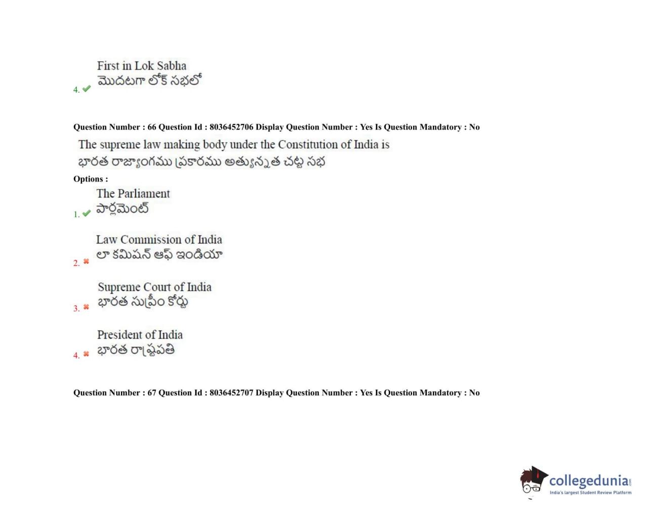 AP LAWCET 2021 LLB (3 Years) Question Paper with Answer Key PDFs Forenoon Session