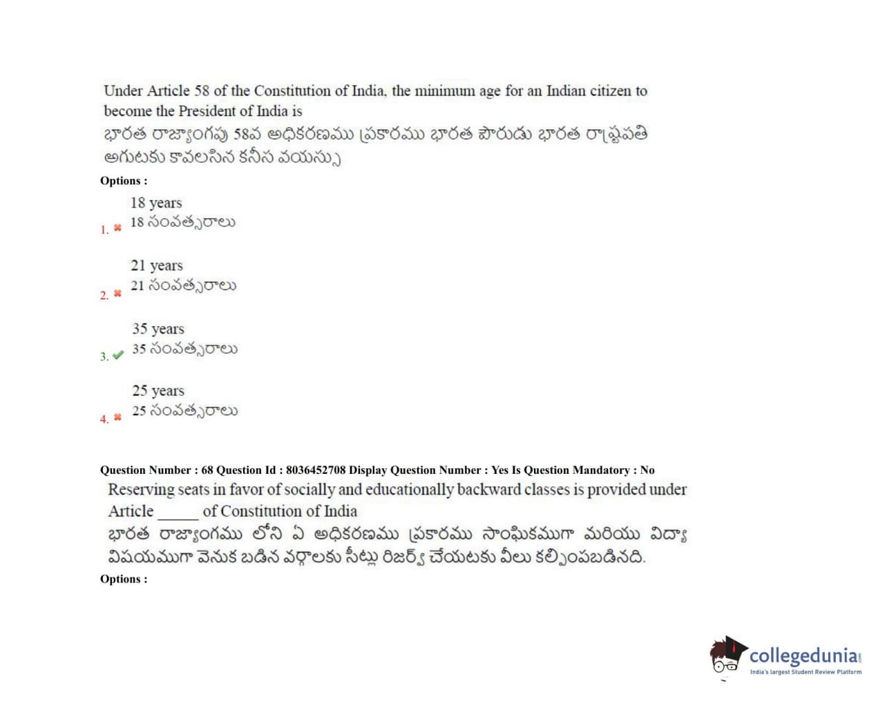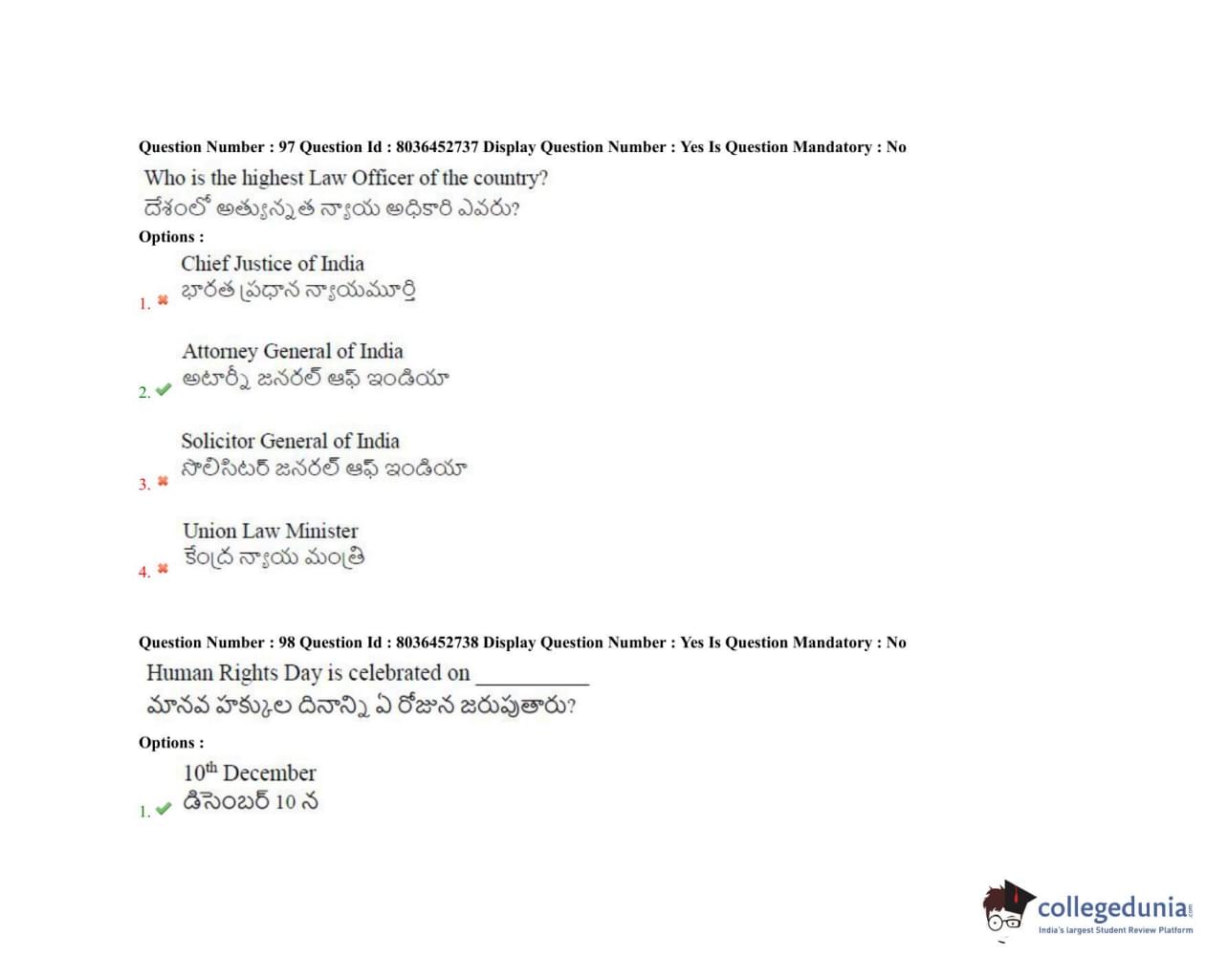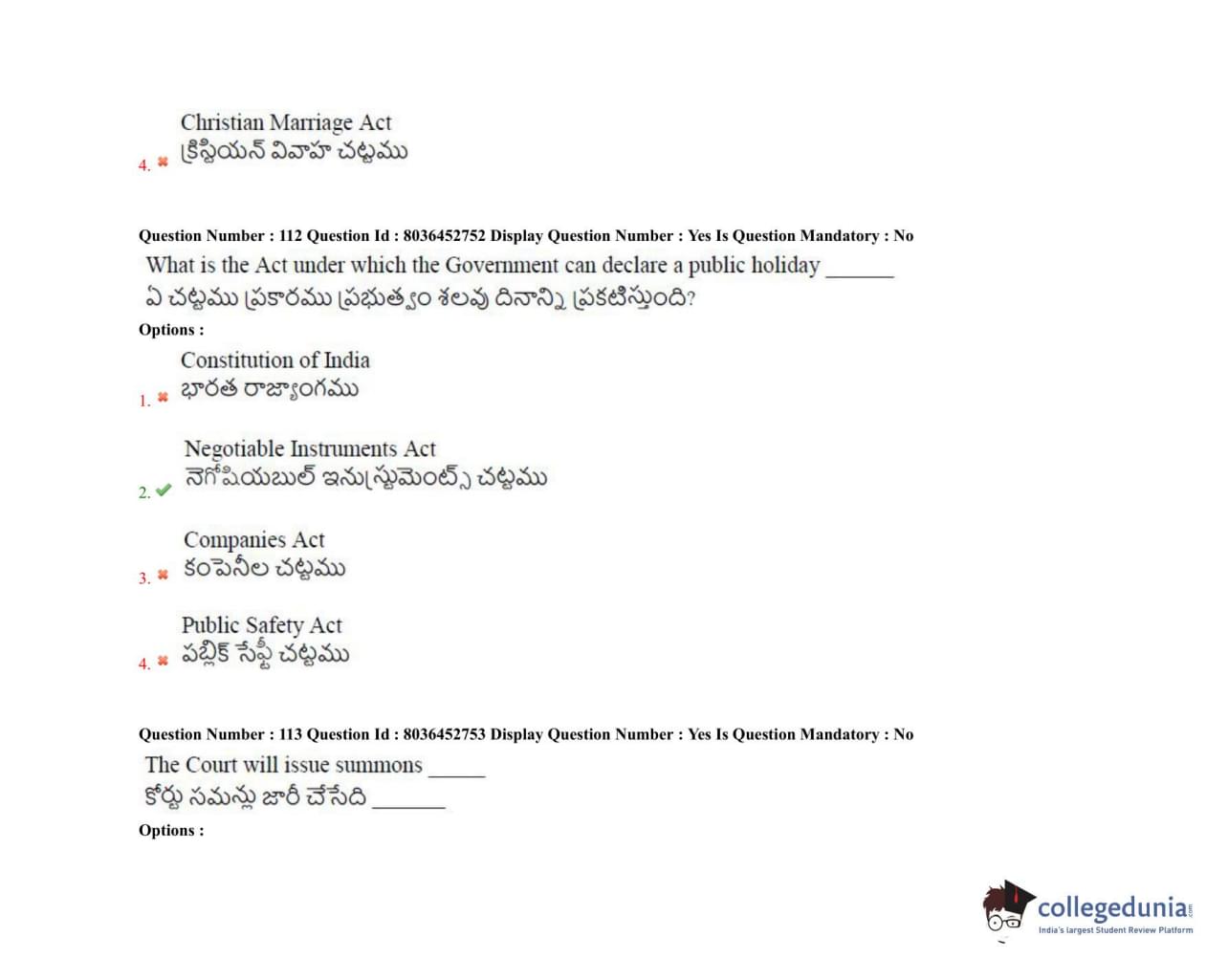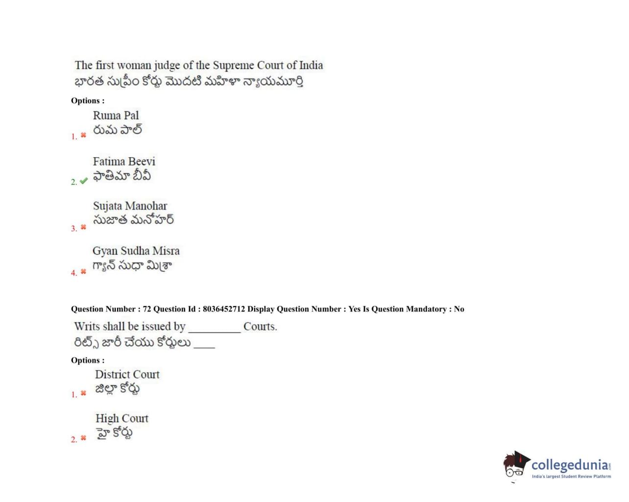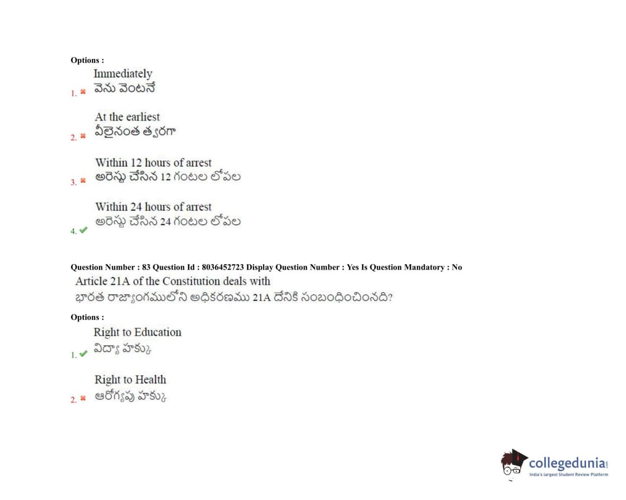 AP LAWCET 2021 LLB (3 Years) Question Paper with Answer Key PDFs Forenoon Session