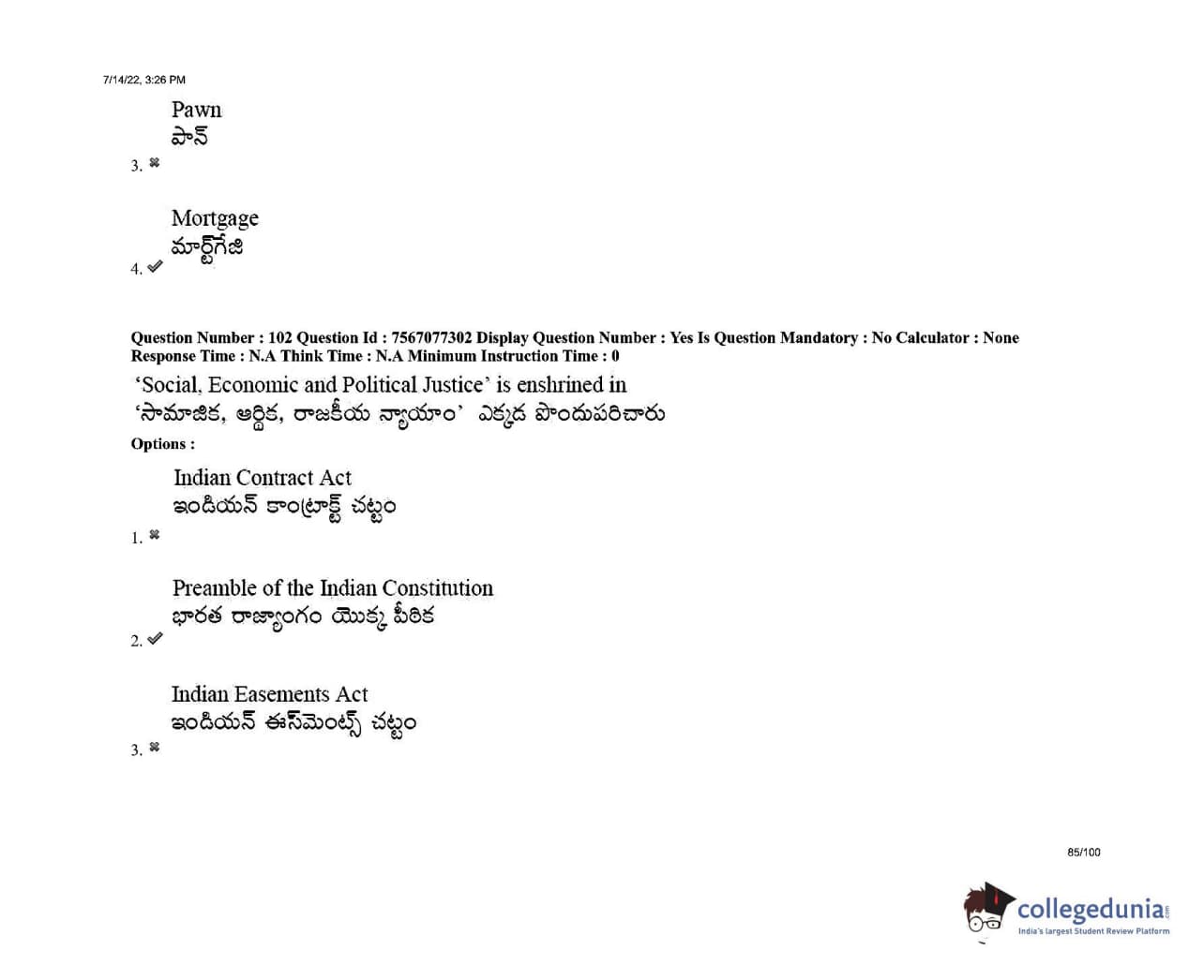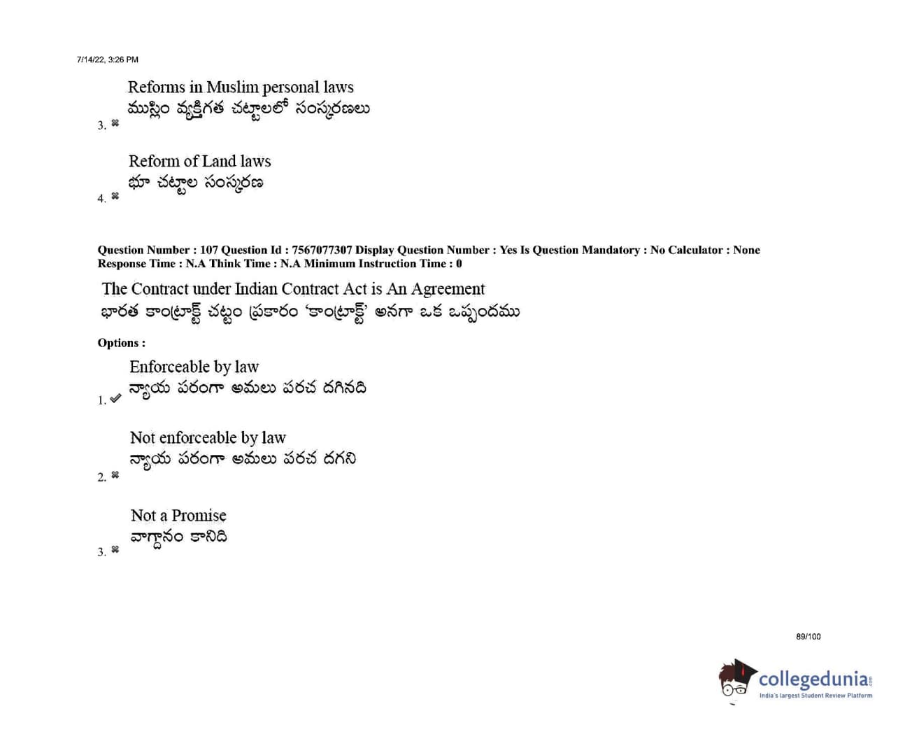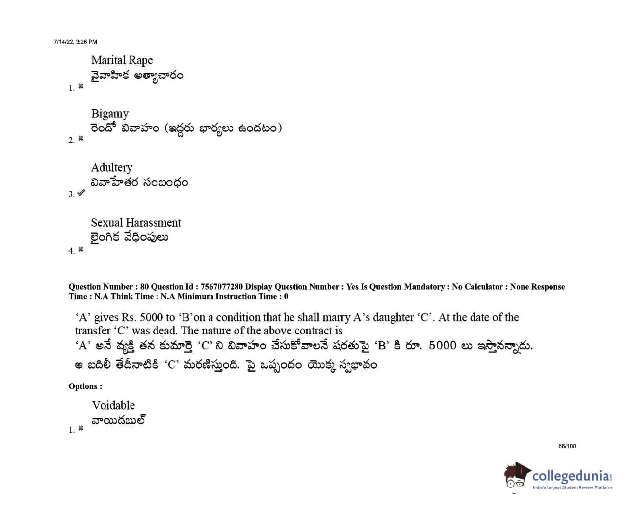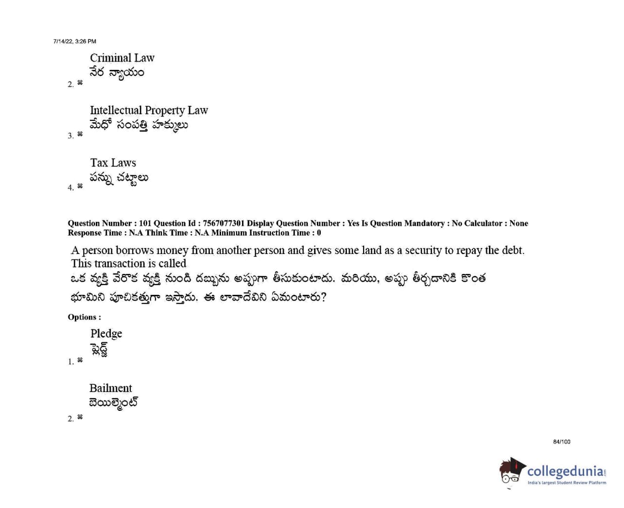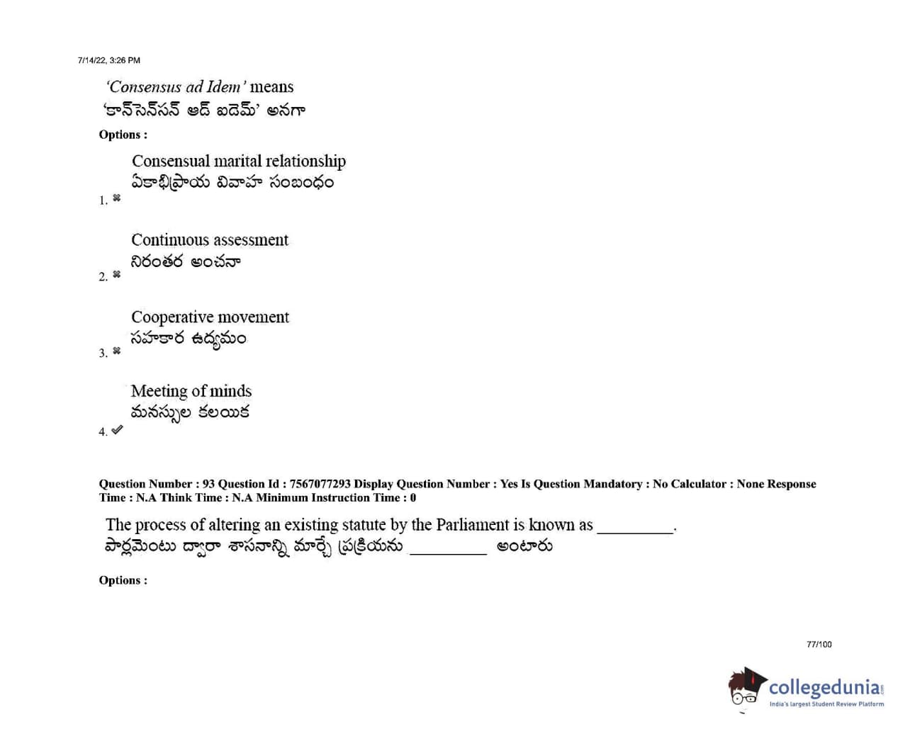 AP LAWCET 2022 LLB 3 Years Question Paper with Answer Key PDFs Shift 2