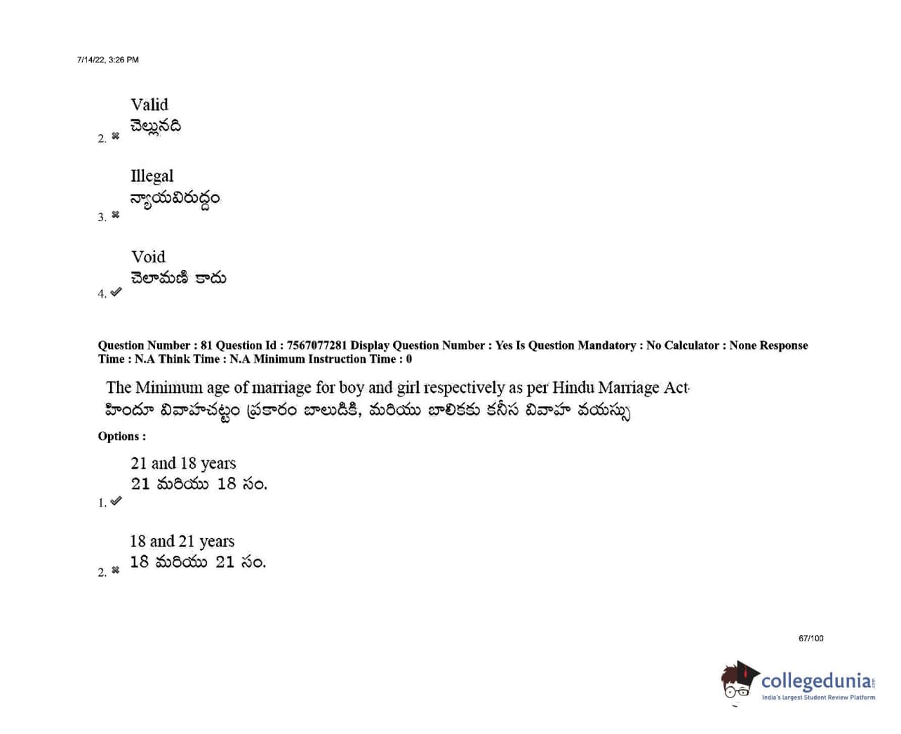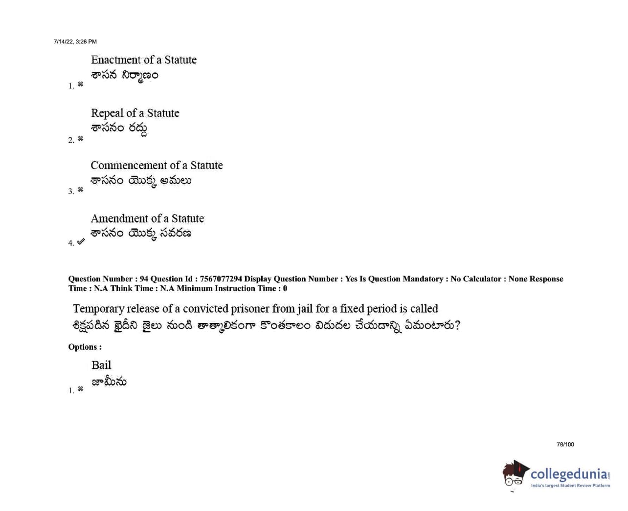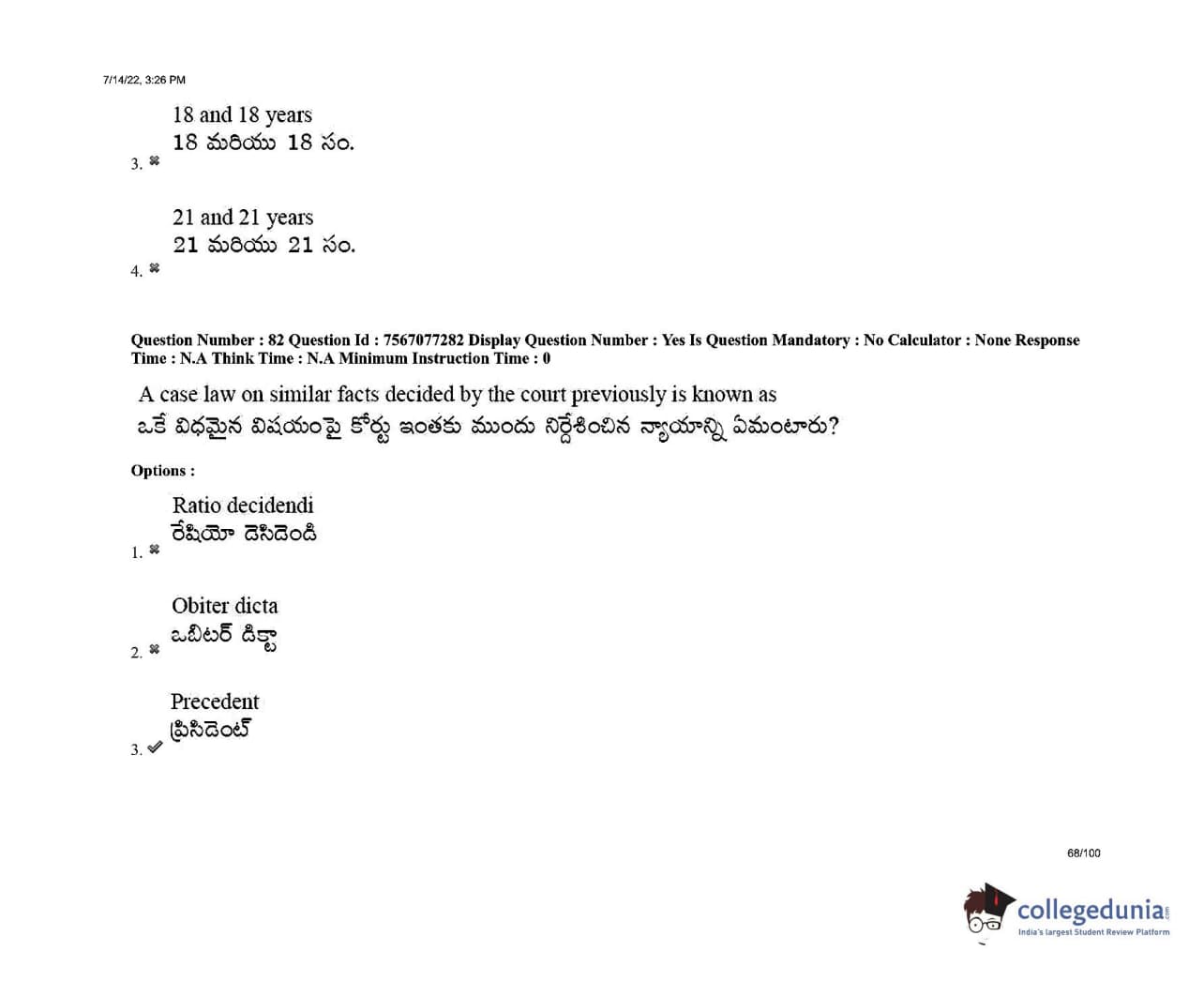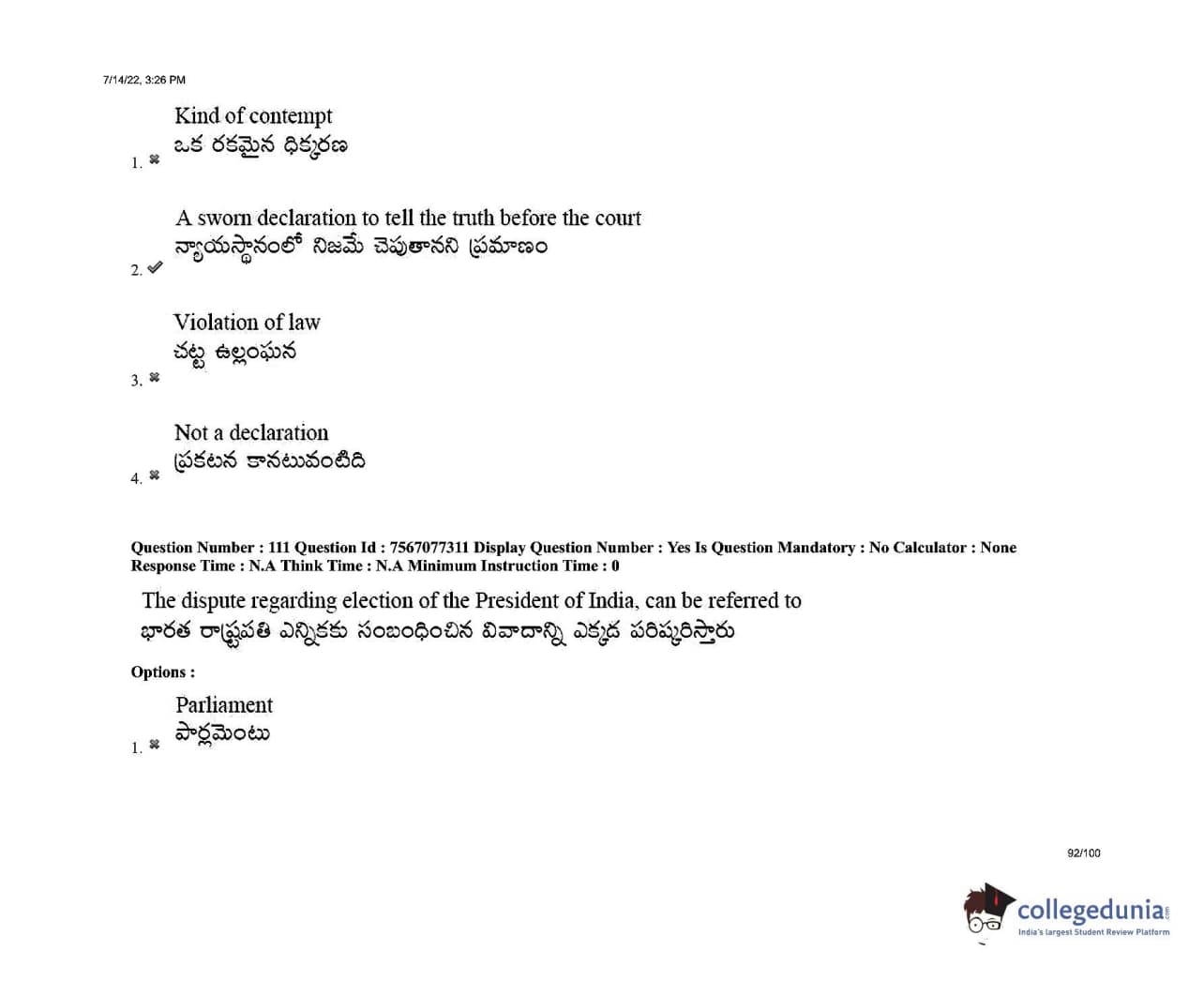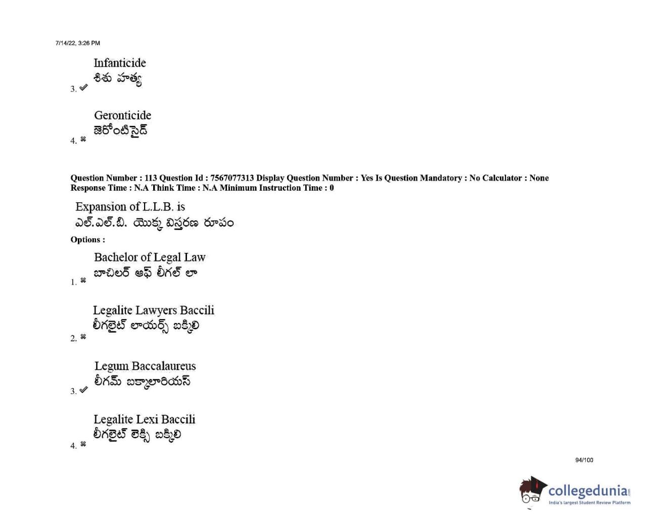 AP LAWCET 2022 LLB 3 Years Question Paper with Answer Key PDFs Shift 2