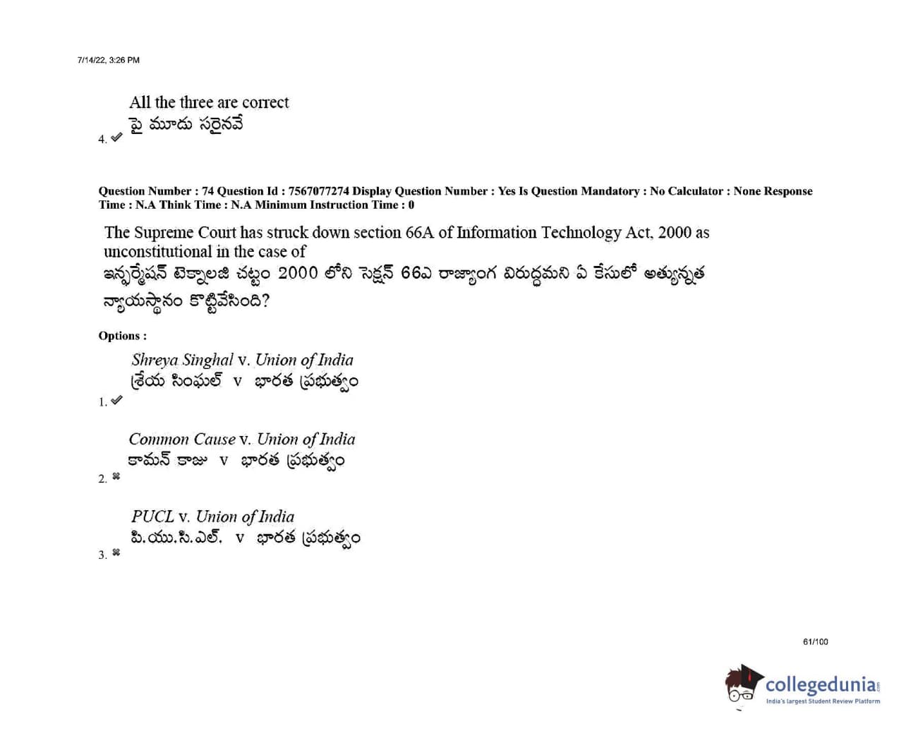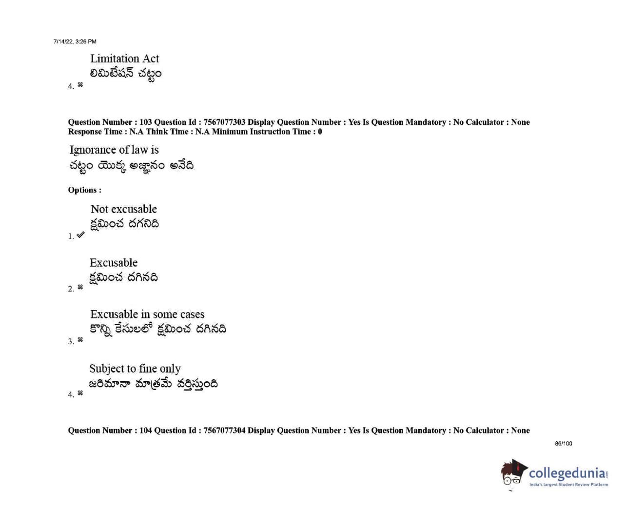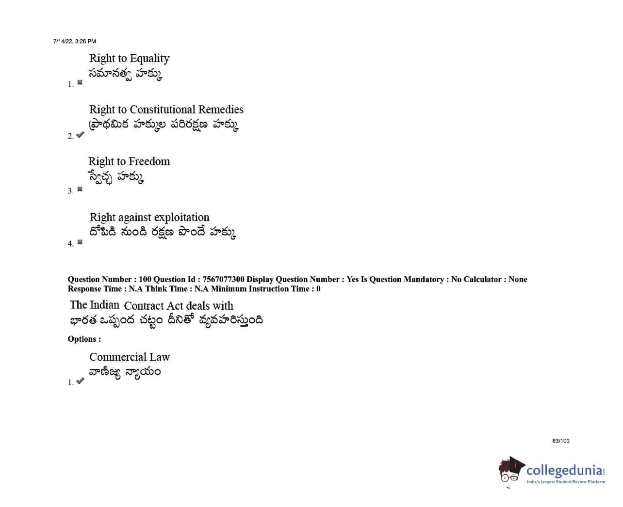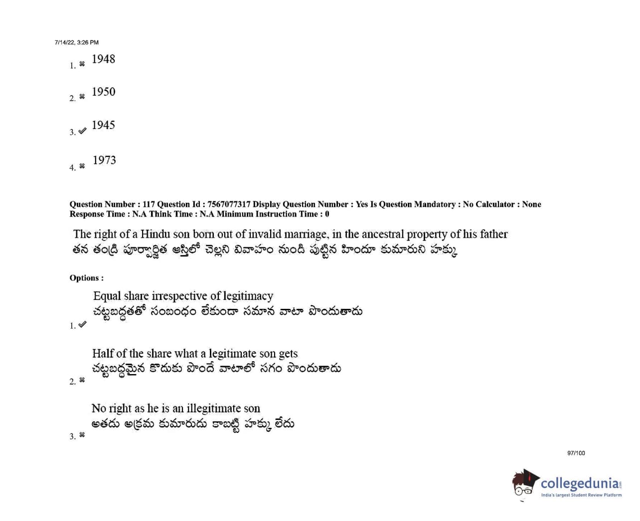 AP LAWCET 2022 LLB 3 Years Question Paper with Answer Key PDFs Shift 2