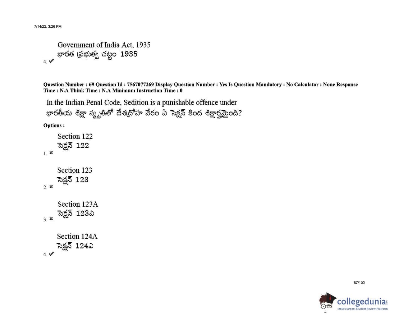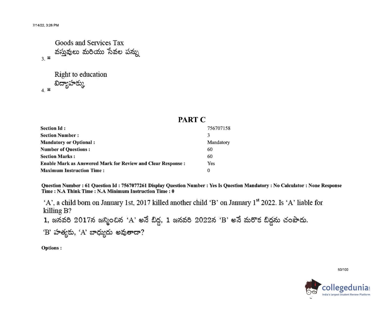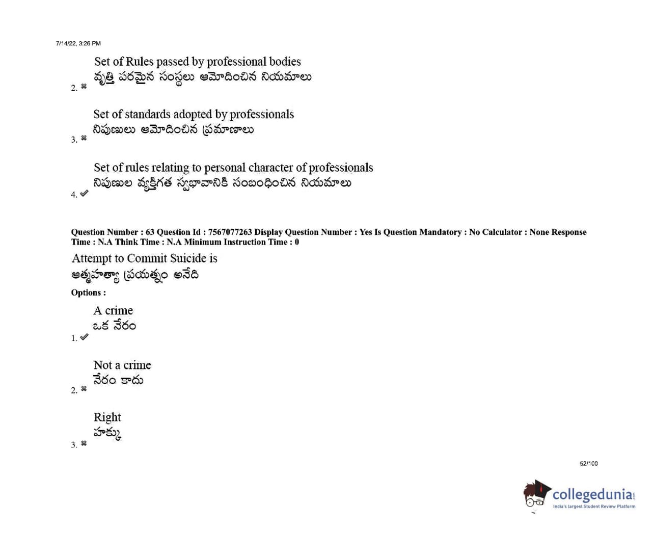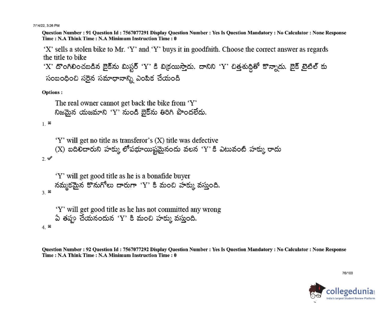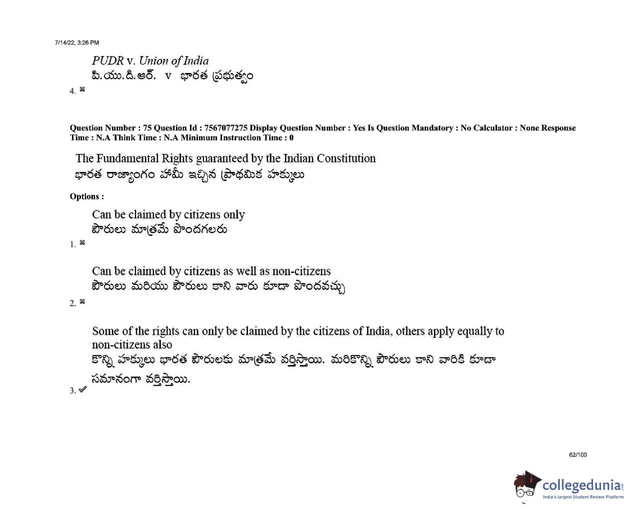 AP LAWCET 2022 LLB 3 Years Question Paper with Answer Key PDFs Shift 2