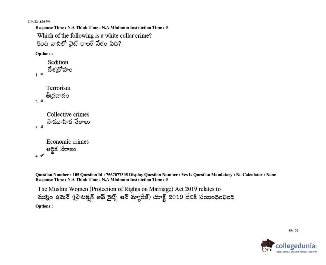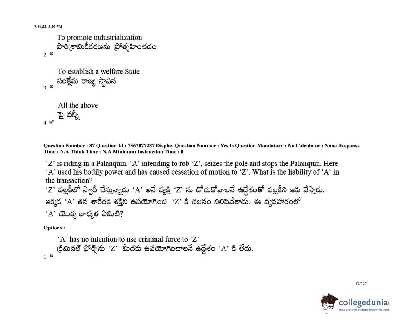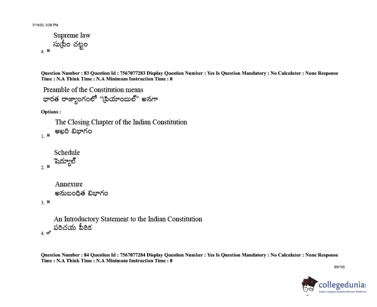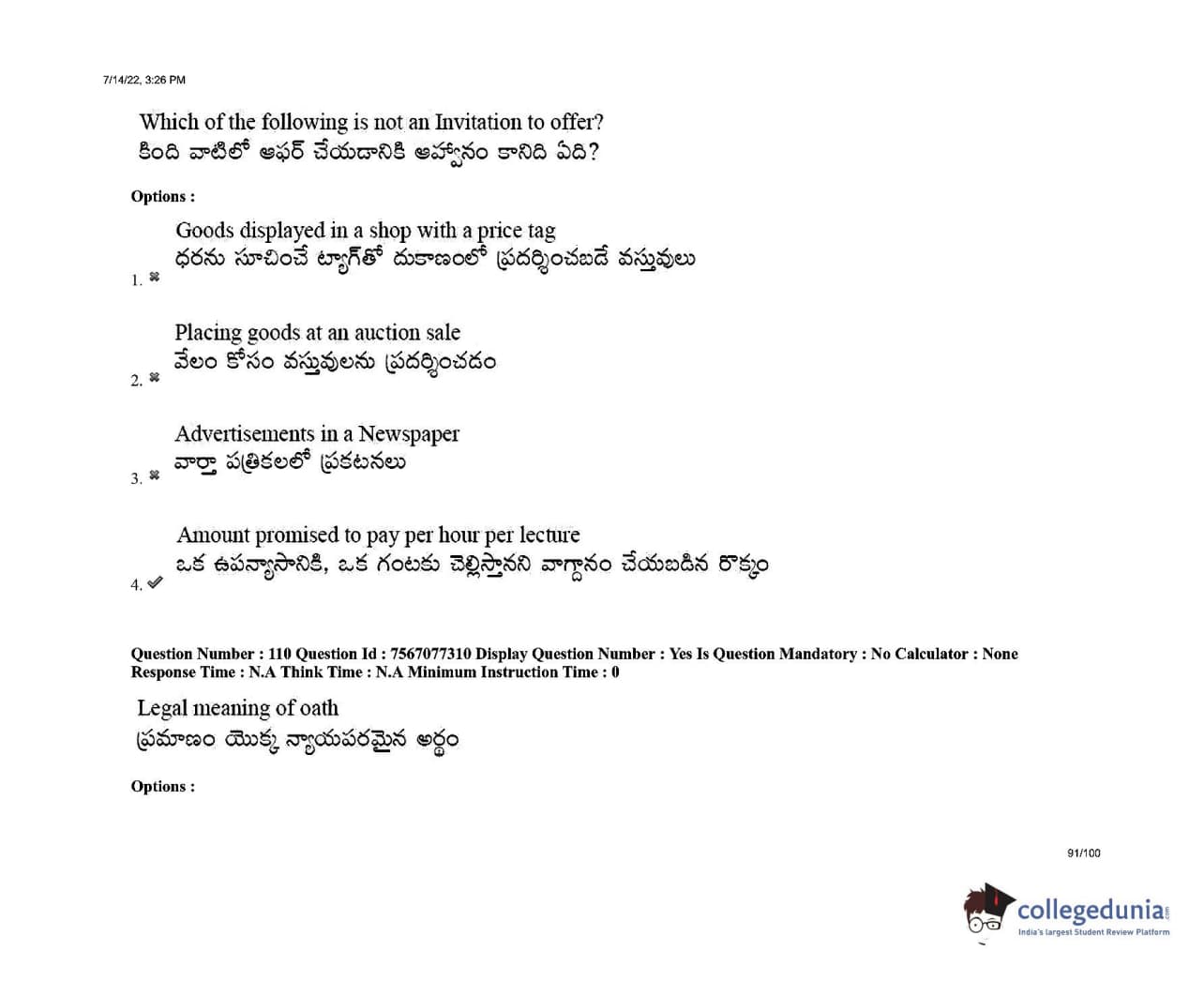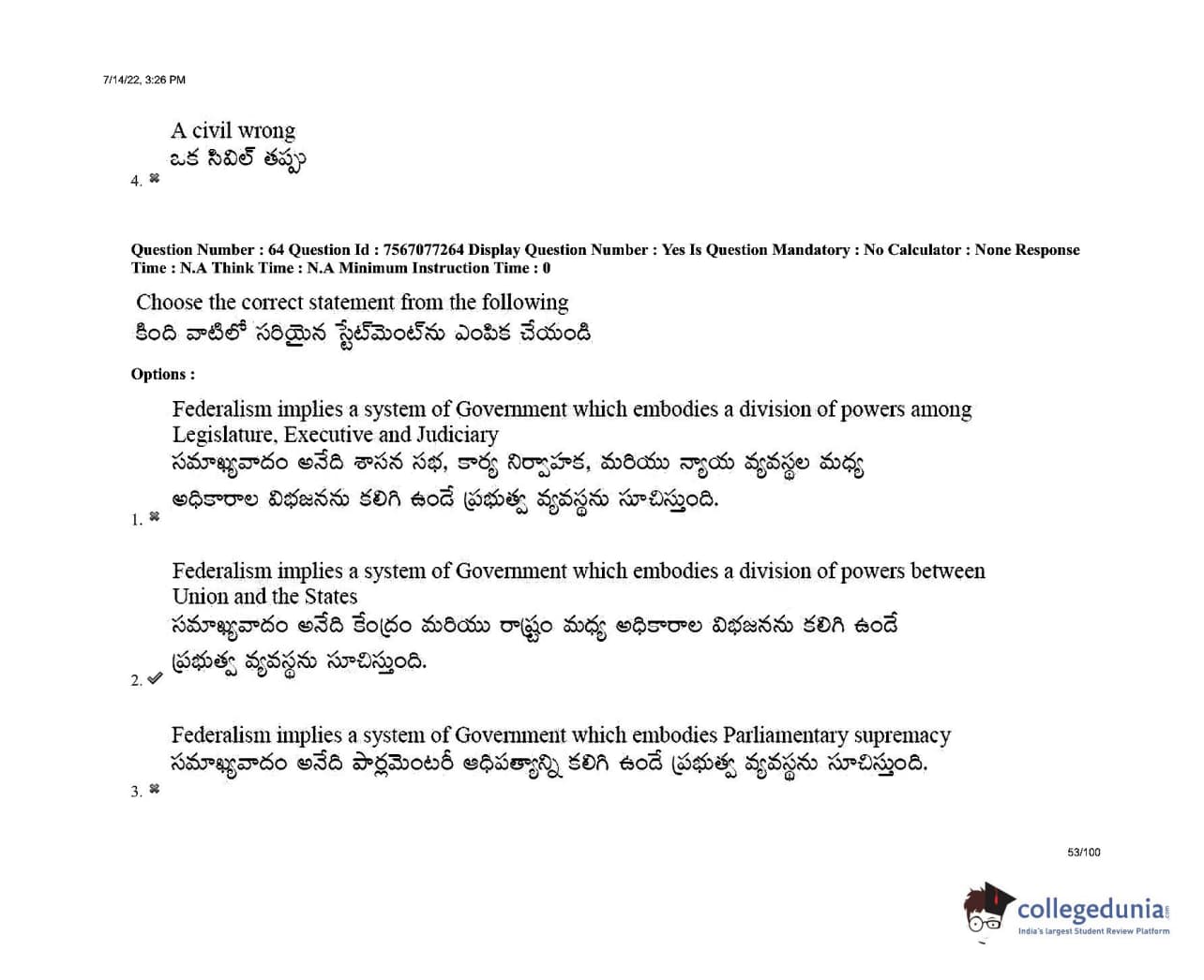 AP LAWCET 2022 LLB 3 Years Question Paper with Answer Key PDFs Shift 2