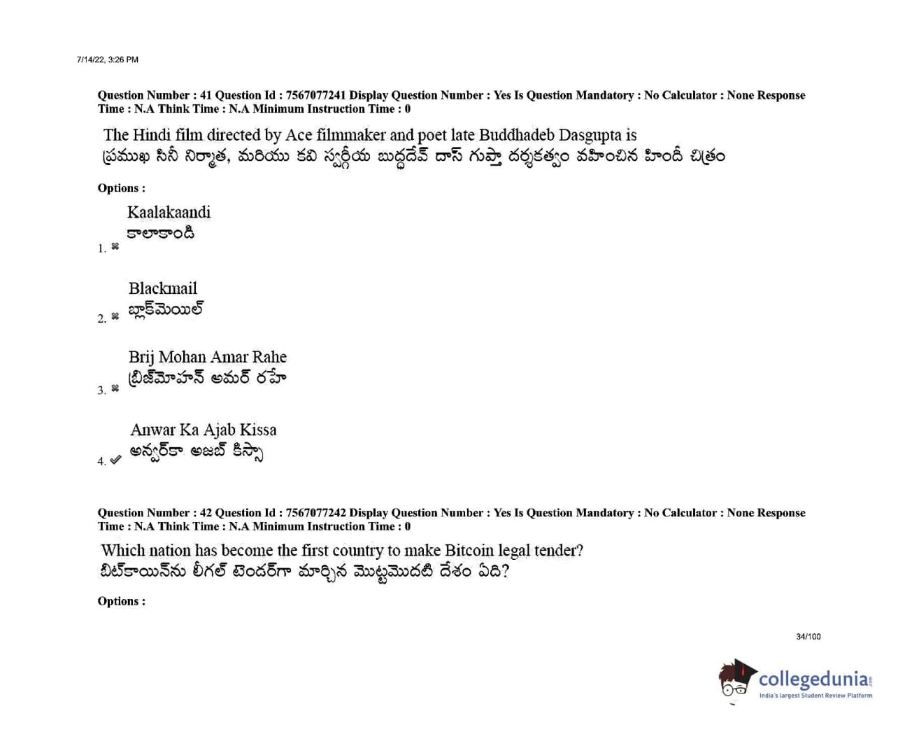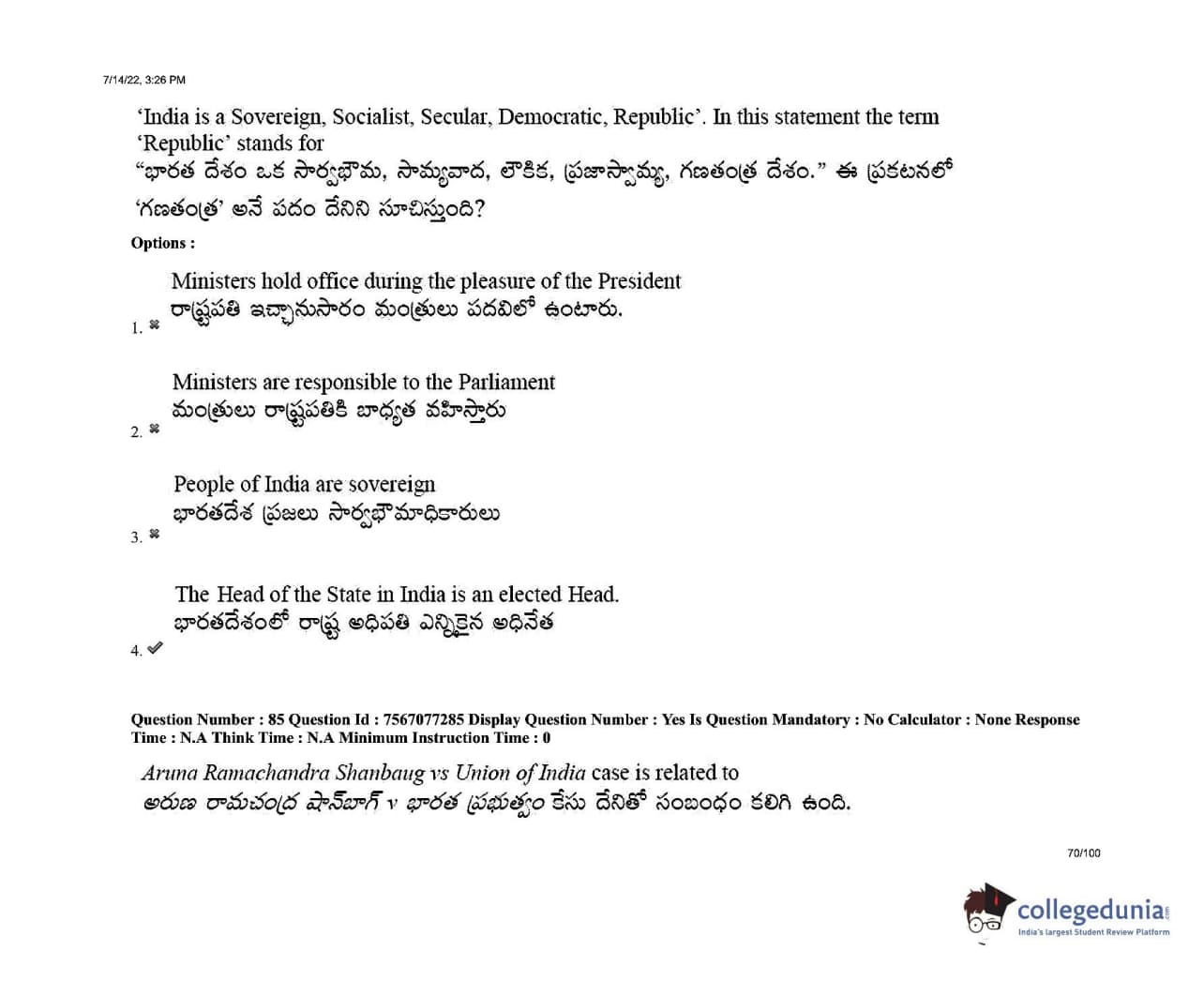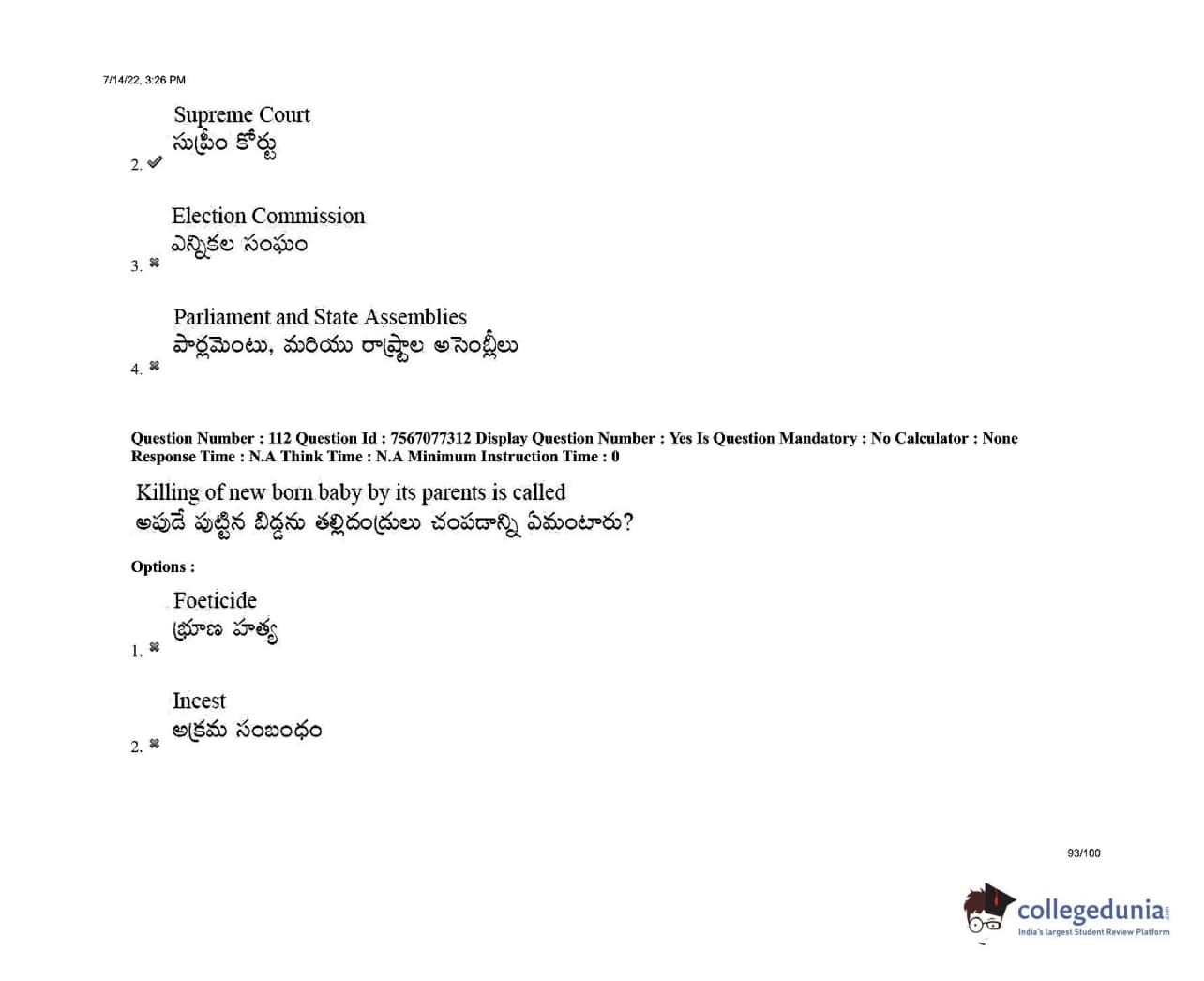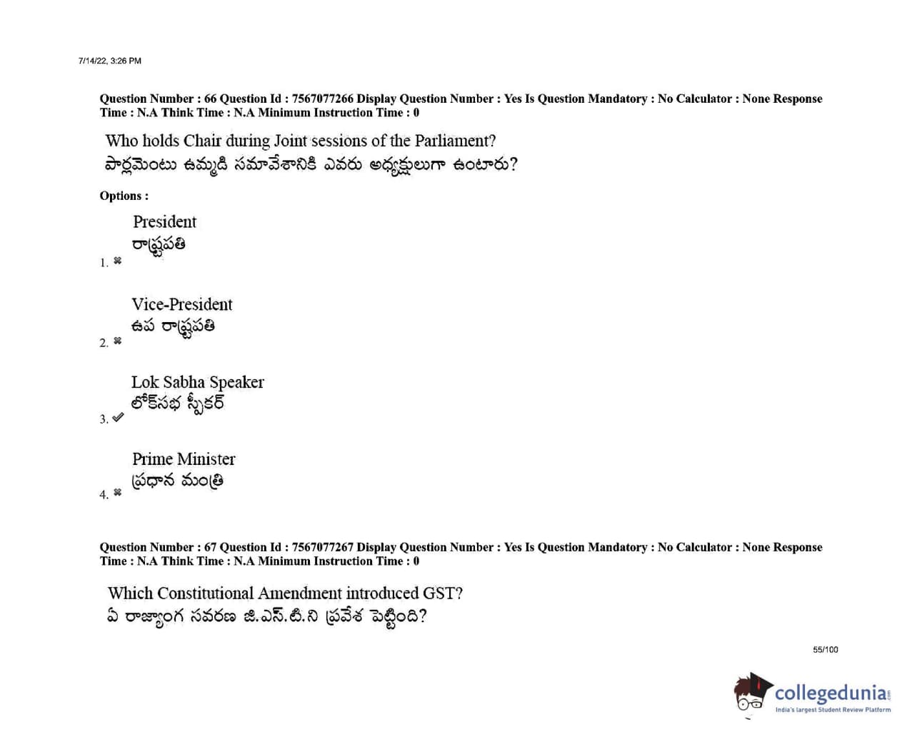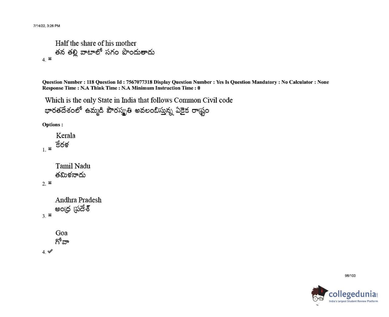 AP LAWCET 2022 LLB 3 Years Question Paper with Answer Key PDFs Shift 2