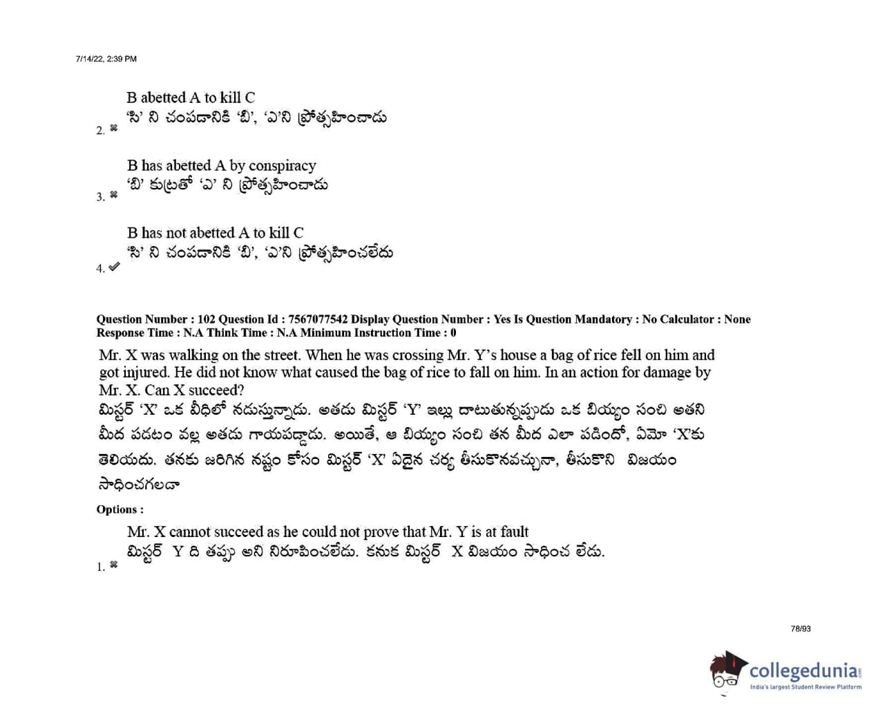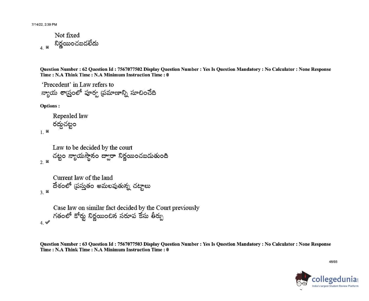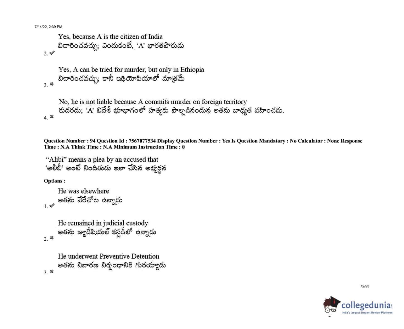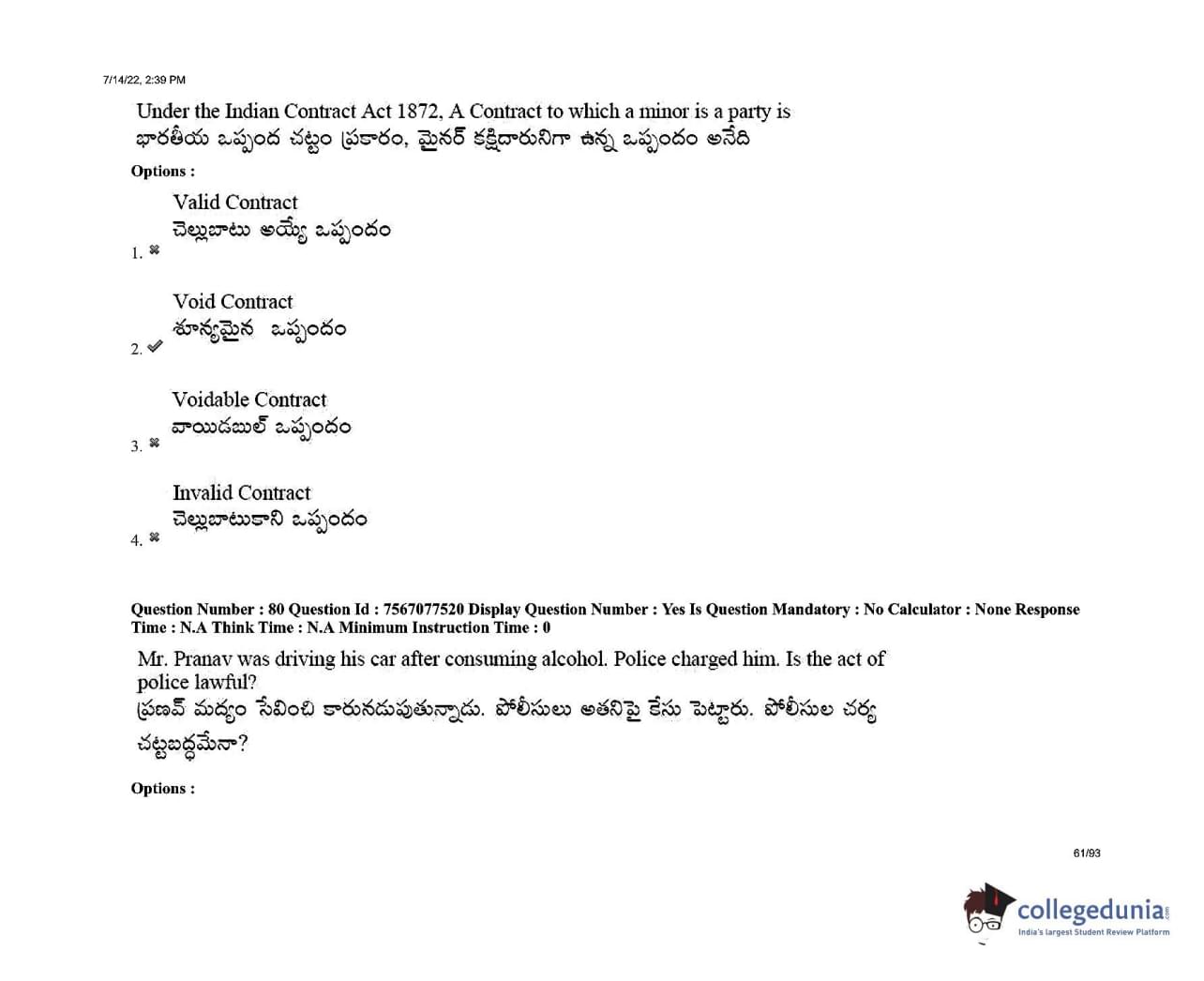 AP LAWCET 2022 LLB 5 Years Question Paper with Answer Key PDFs Shift 2