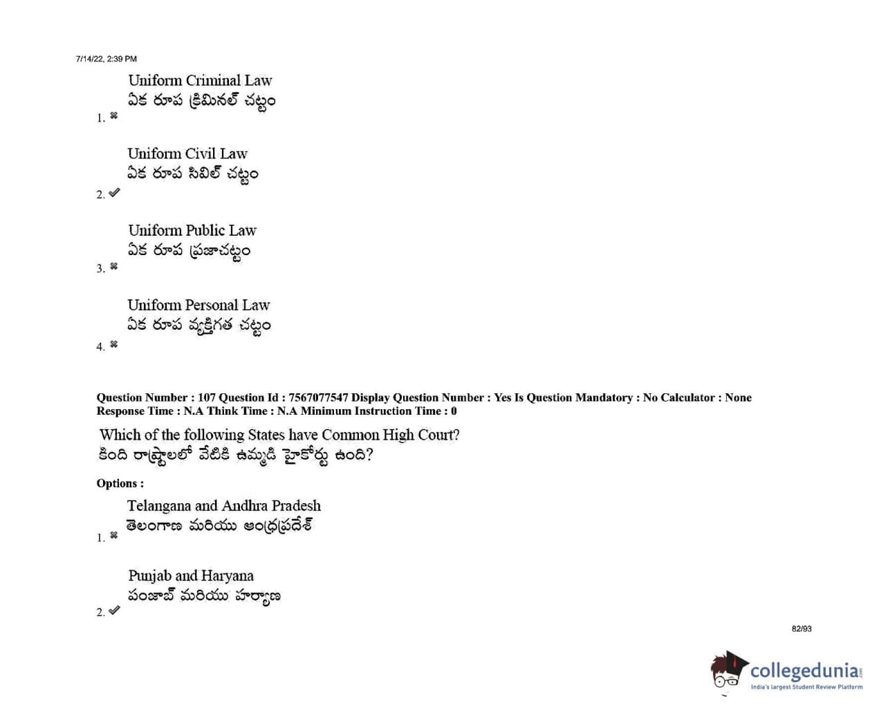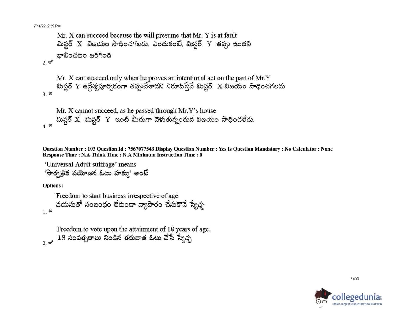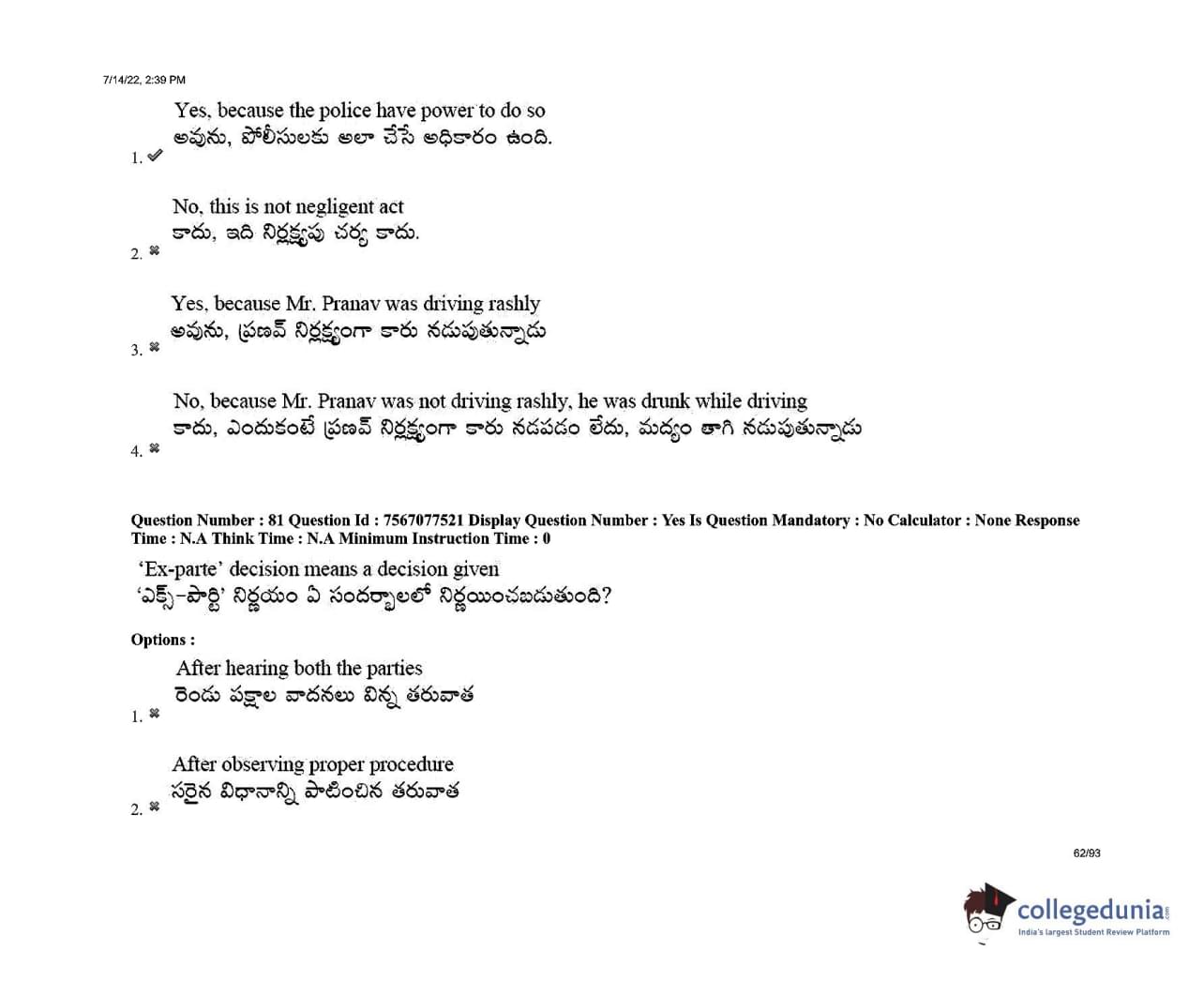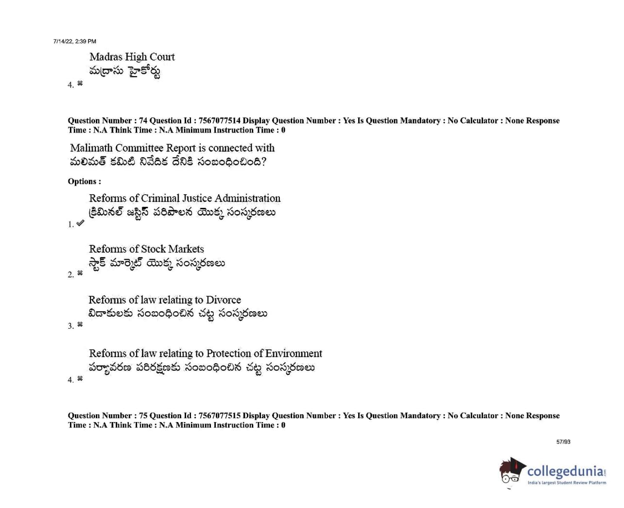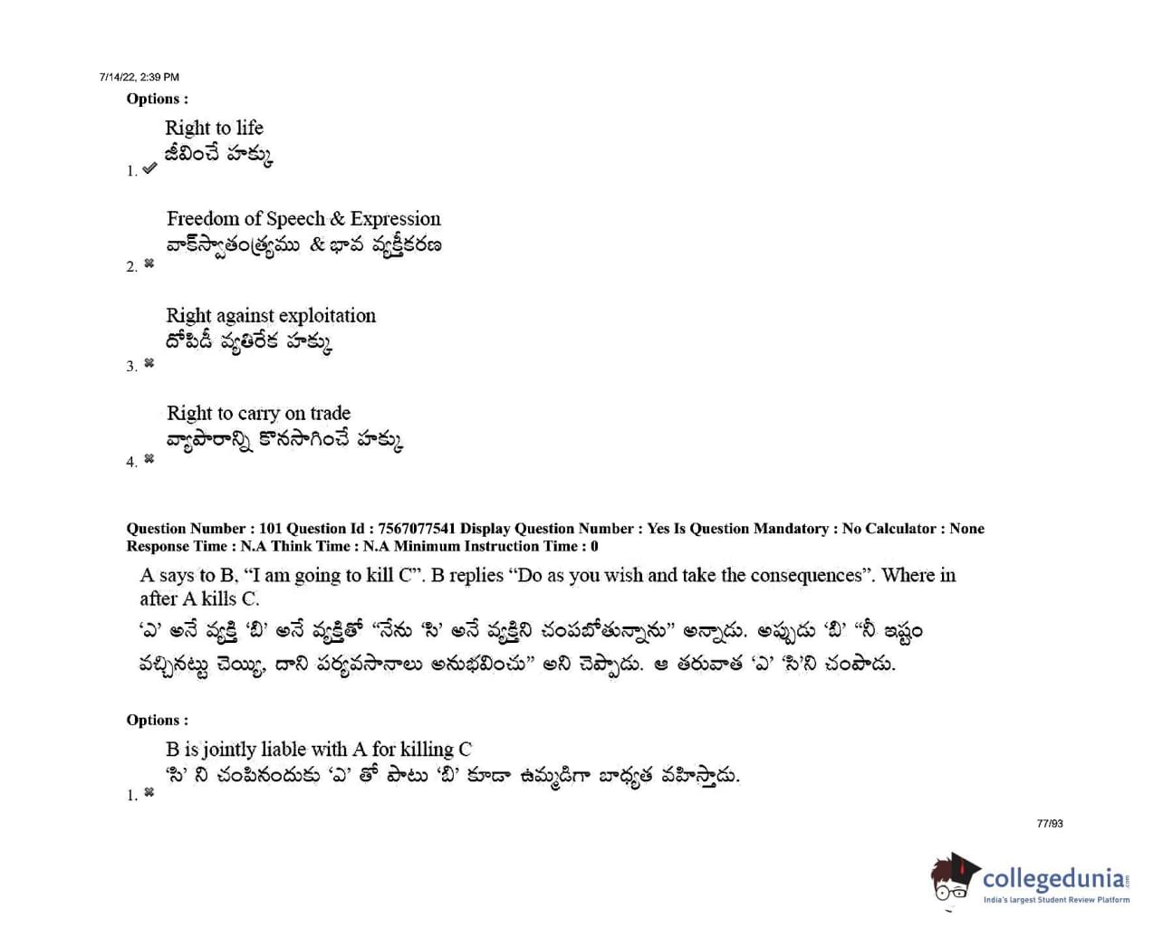 AP LAWCET 2022 LLB 5 Years Question Paper with Answer Key PDFs Shift 2