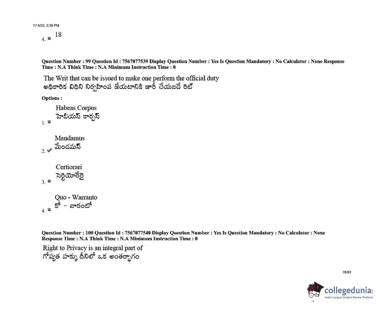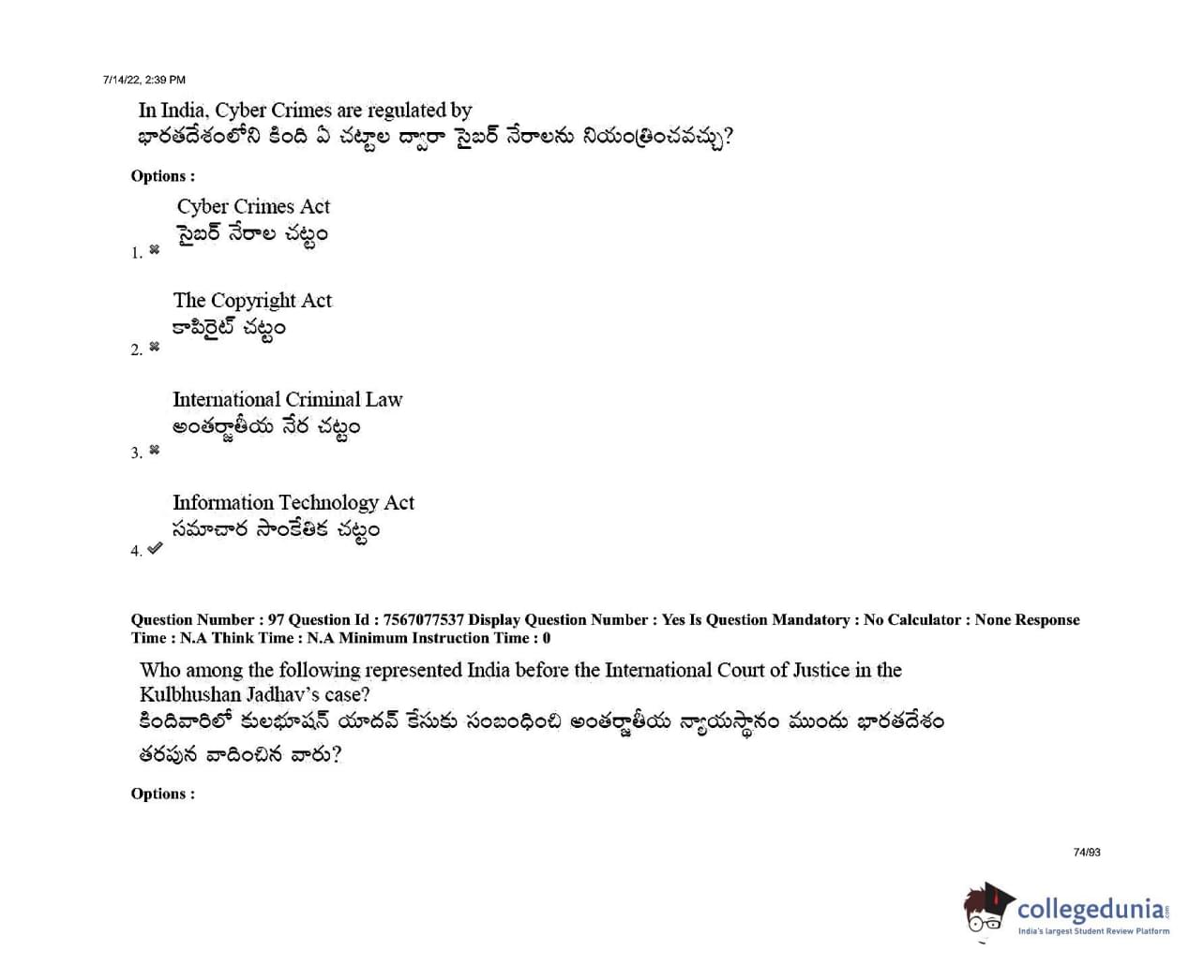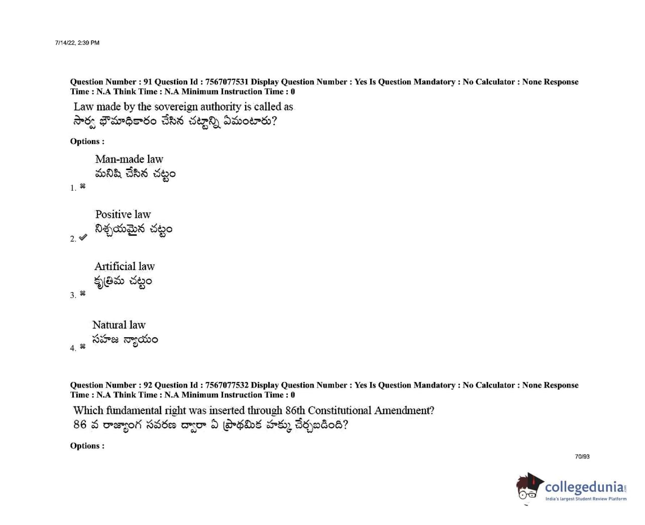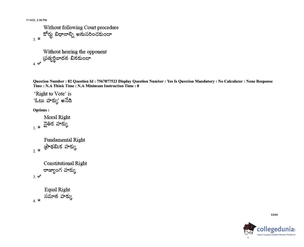 AP LAWCET 2022 LLB 5 Years Question Paper with Answer Key PDFs Shift 2