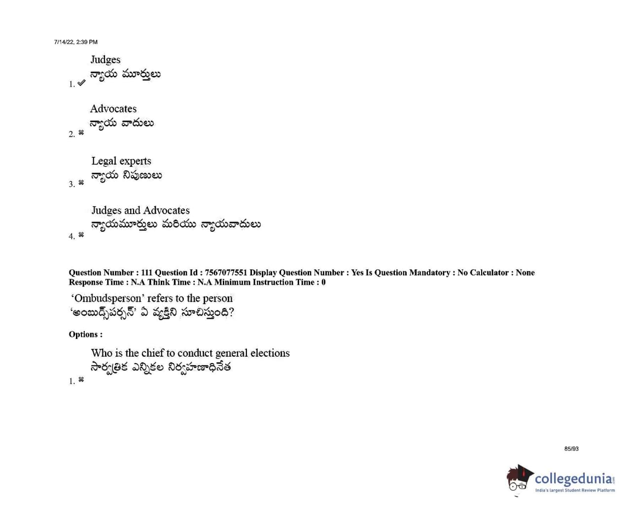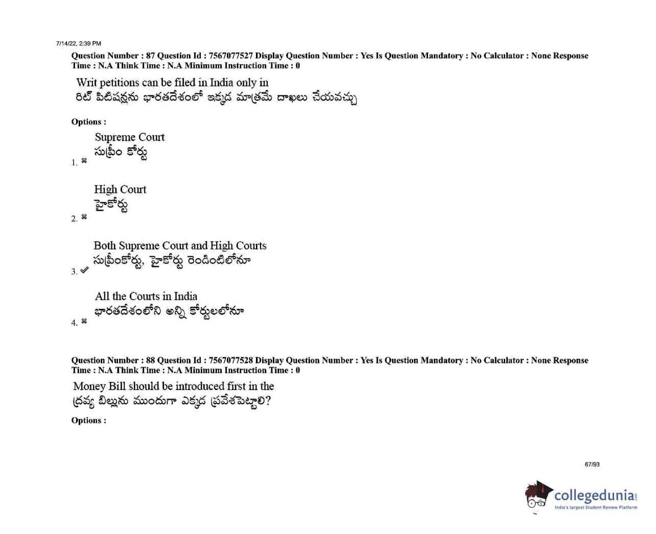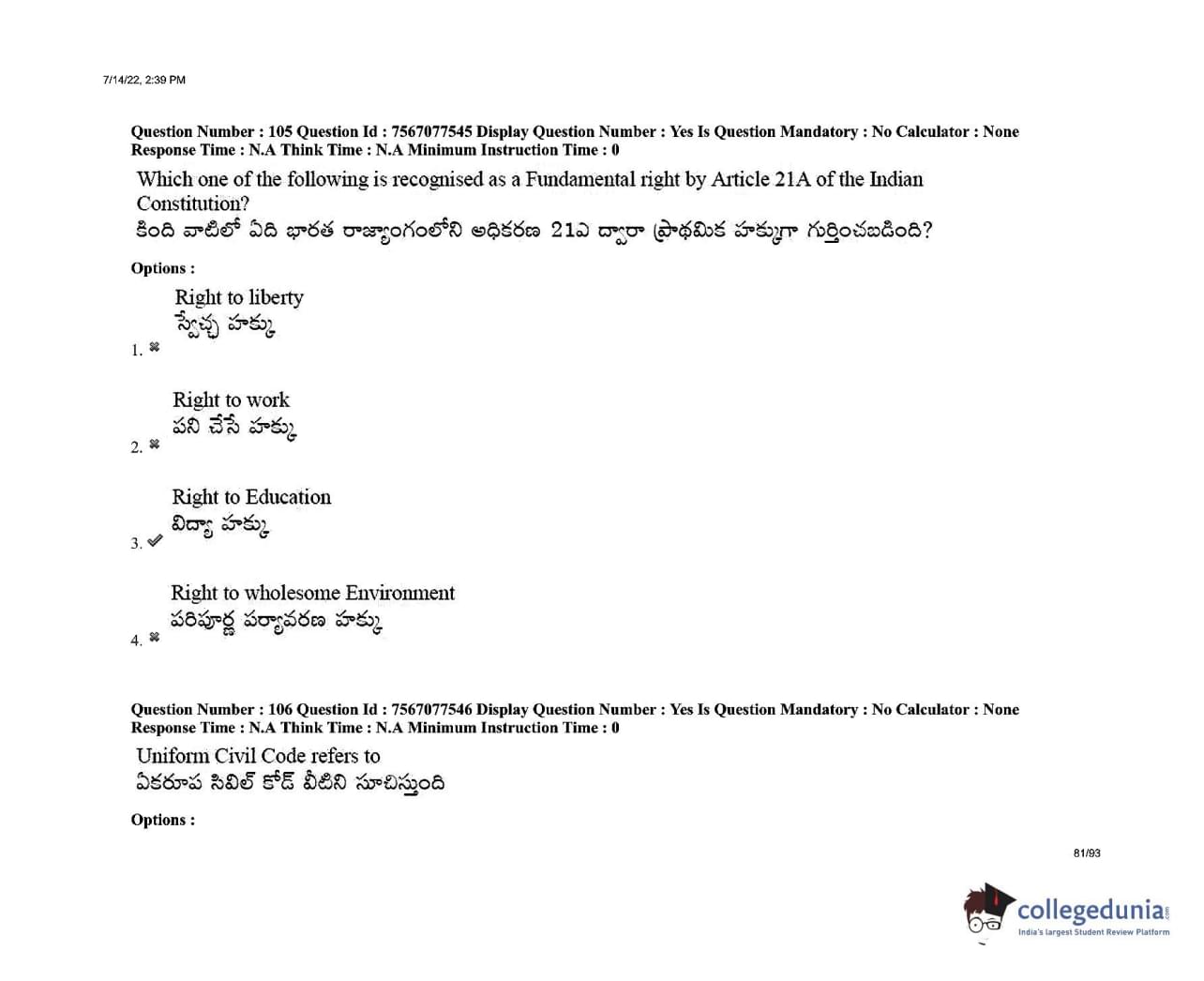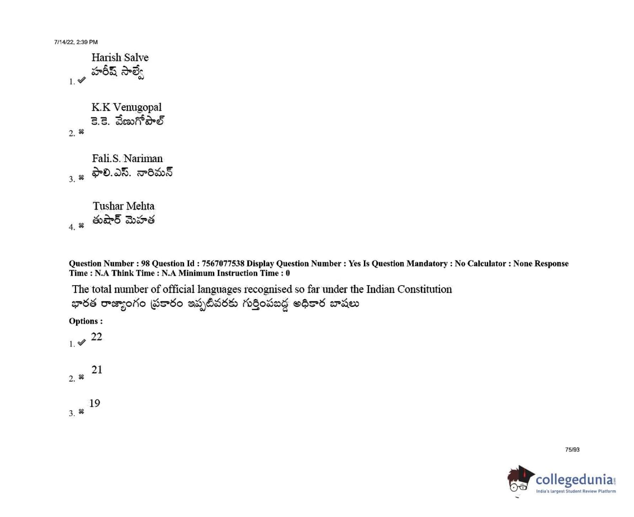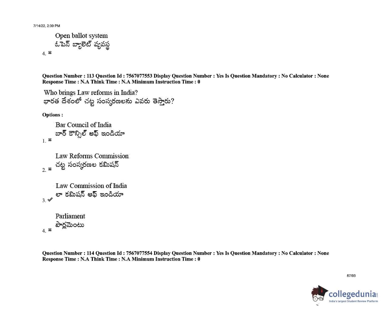 AP LAWCET 2022 LLB 5 Years Question Paper with Answer Key PDFs Shift 2