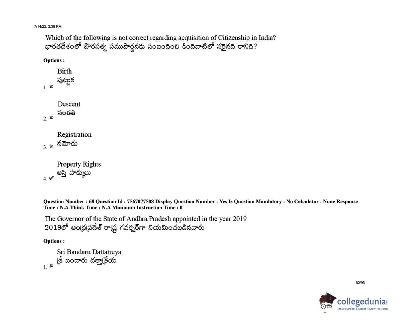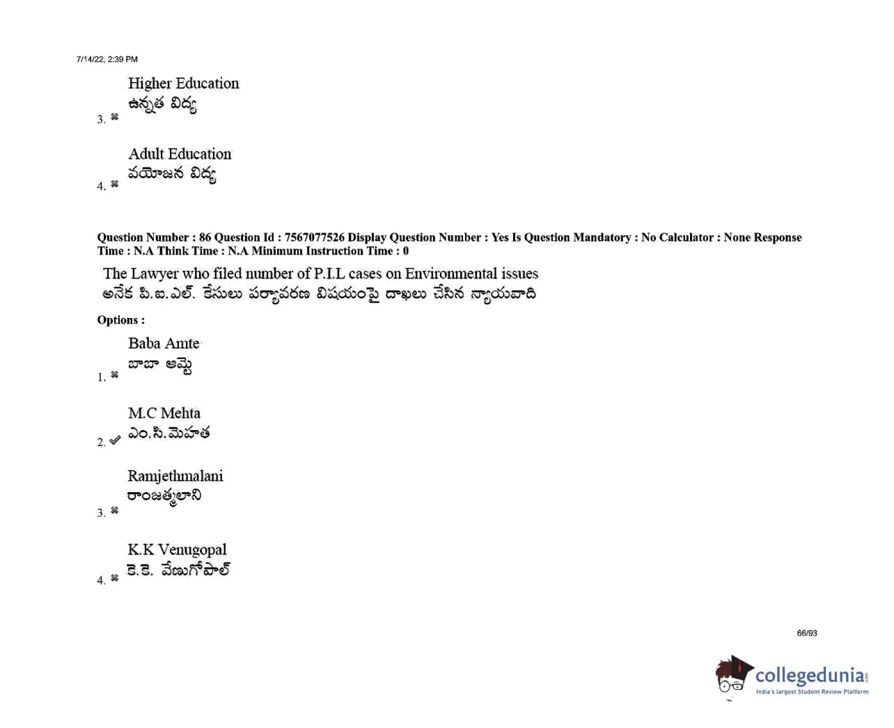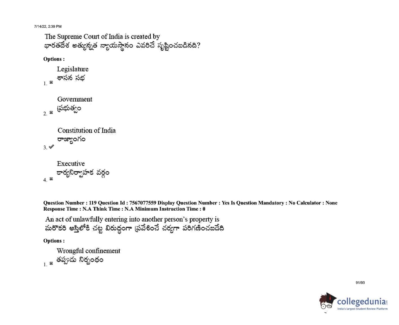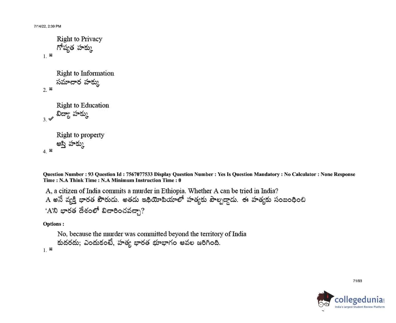 AP LAWCET 2022 LLB 5 Years Question Paper with Answer Key PDFs Shift 2