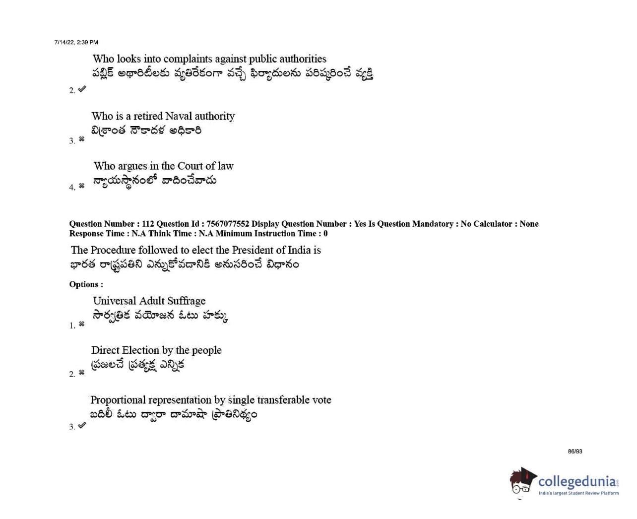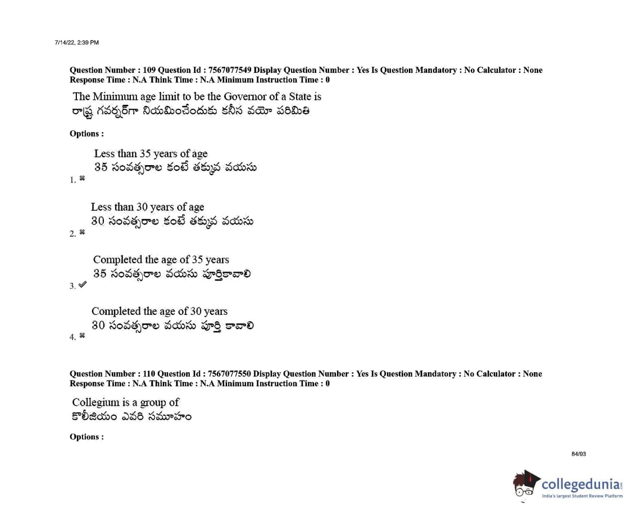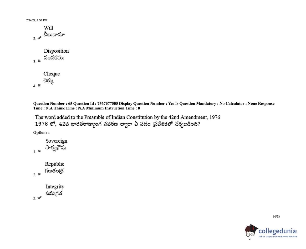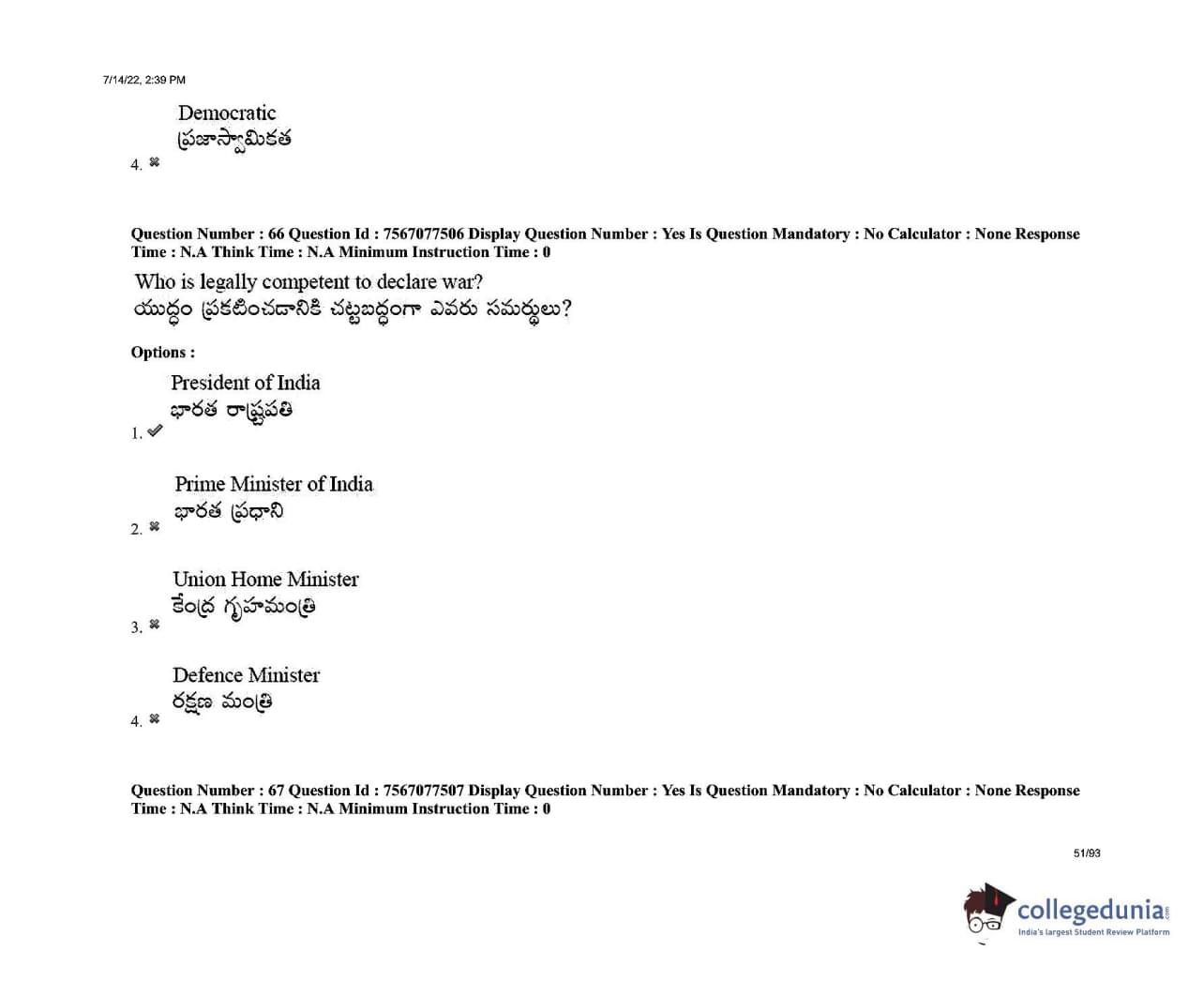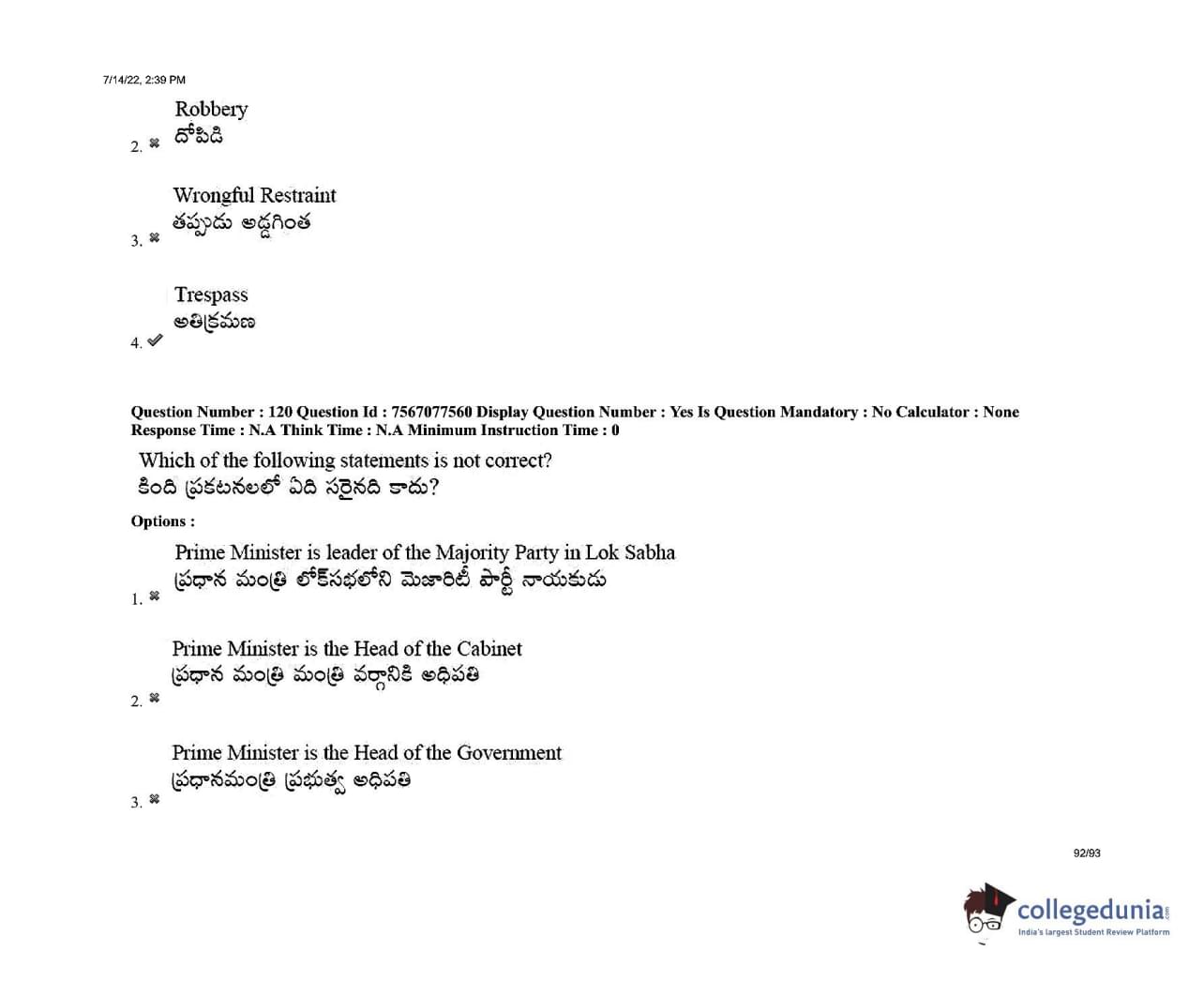 AP LAWCET 2022 LLB 5 Years Question Paper with Answer Key PDFs Shift 2