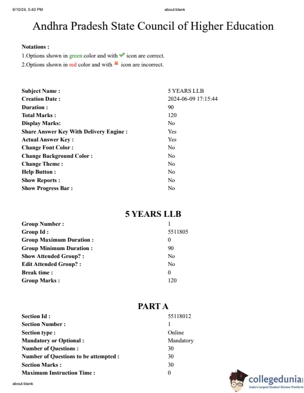 AP LAWCET 2024 Question Paper 5 Years LLB is available for download here. Acharya Nagarjuna University, Guntur on behalf of APSCHE conducted AP LAWCET 2024 exam on June 9, 2024. AP LAWLCET question paper 2024 comprises a total of 120 questions divided into 3 sections.