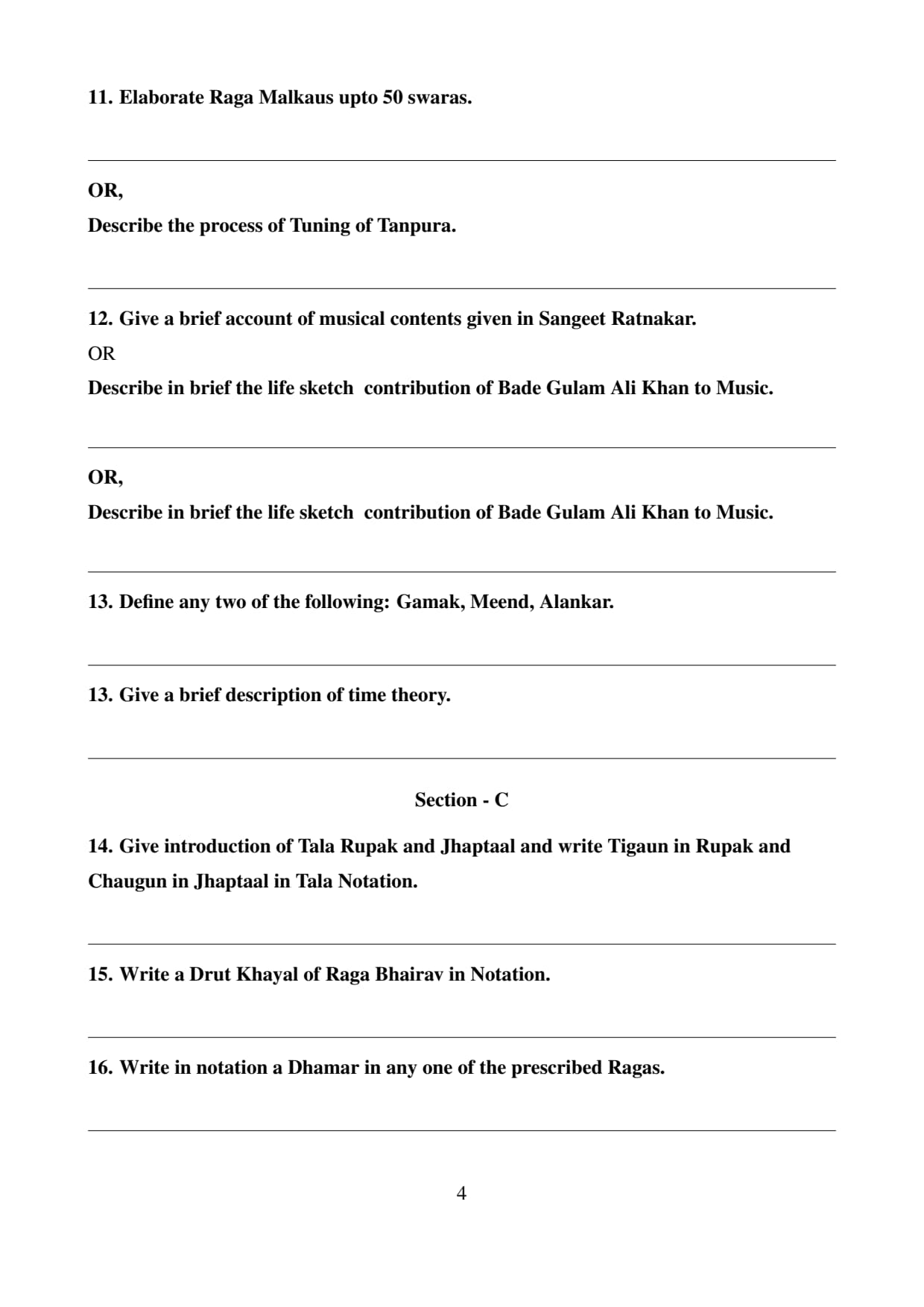 Write in notation a Dhamar in any one of the prescribed Ragas.