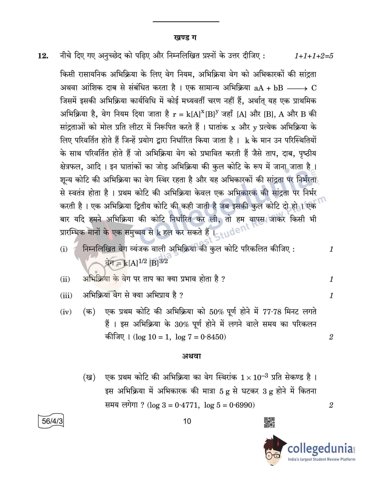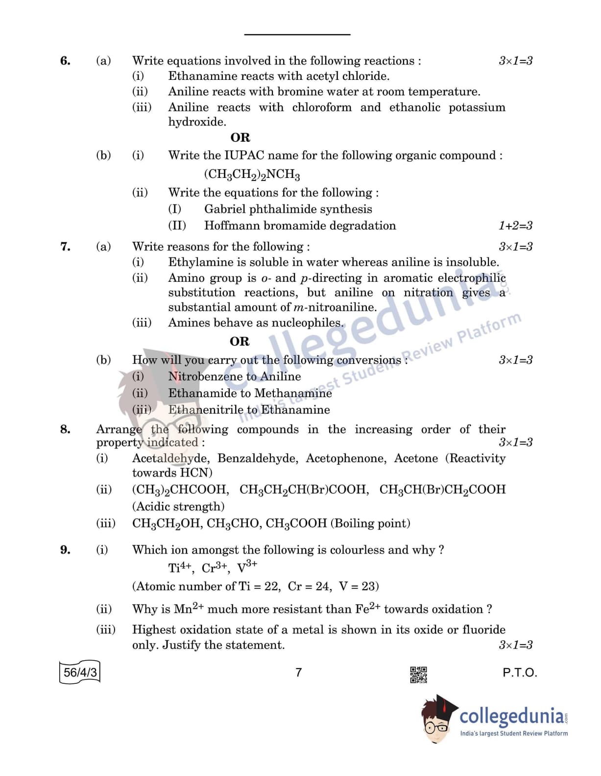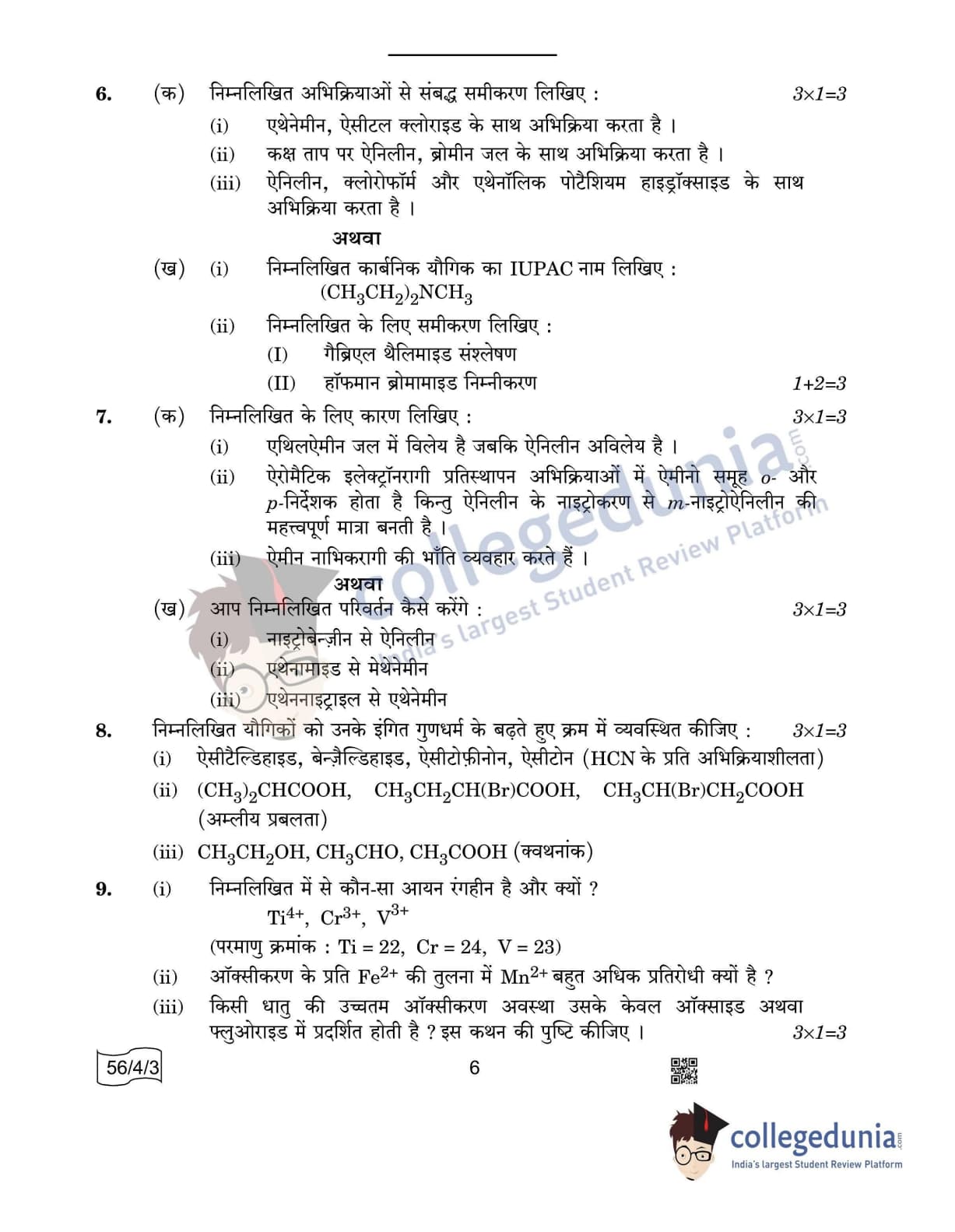 CBSE Class 12 Chemistry Question Paper 2022 with Answer Key (May 7, Set 3 - 56/4/3- Morning Session)