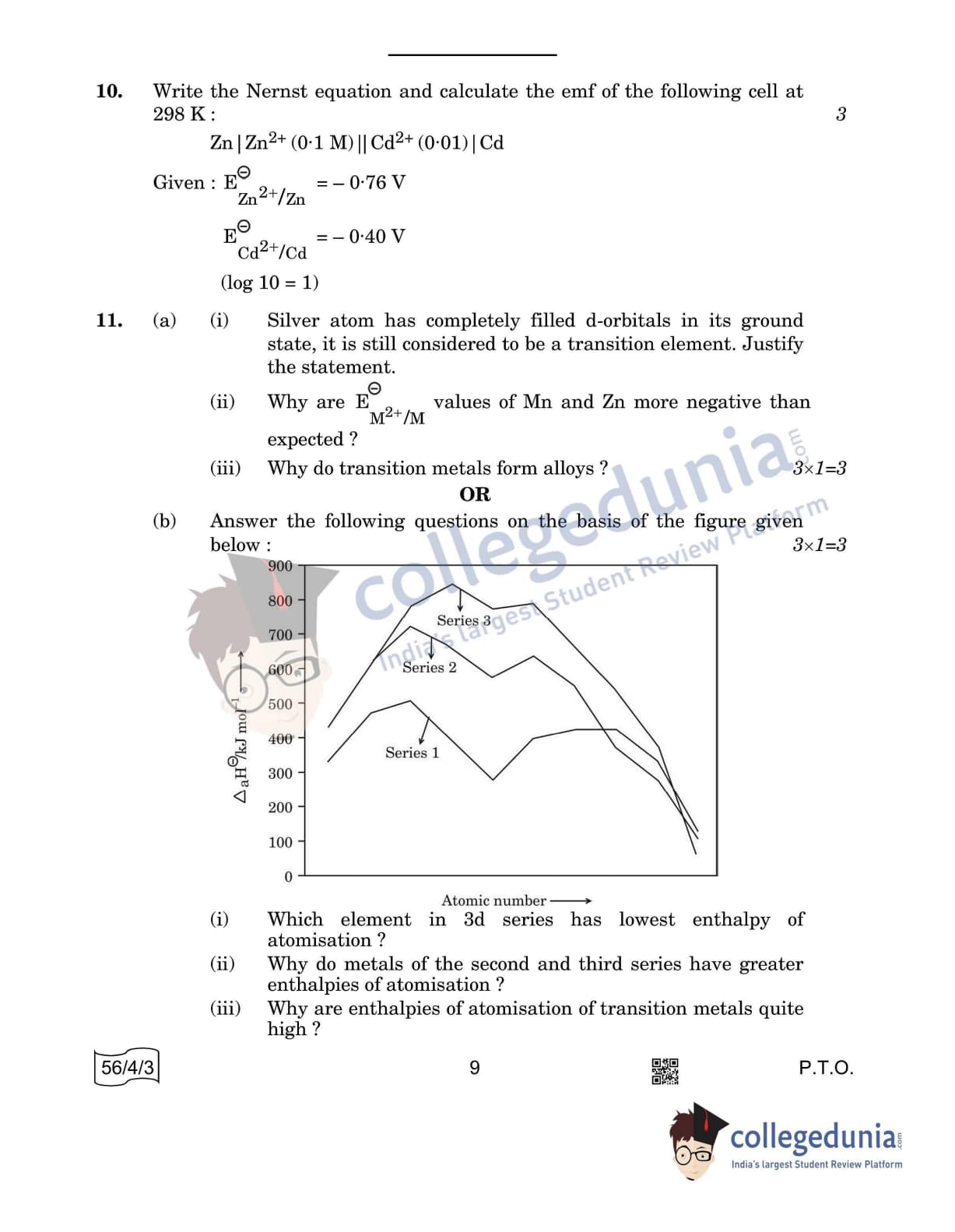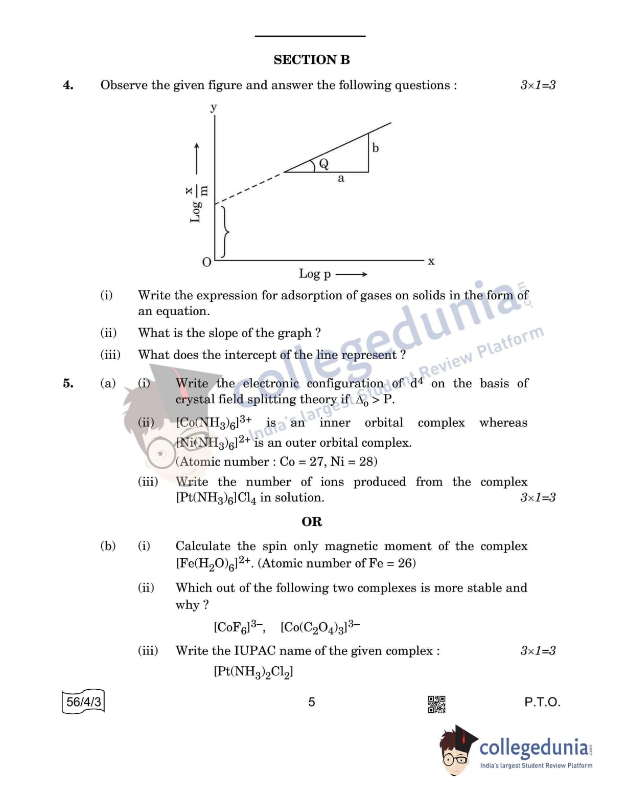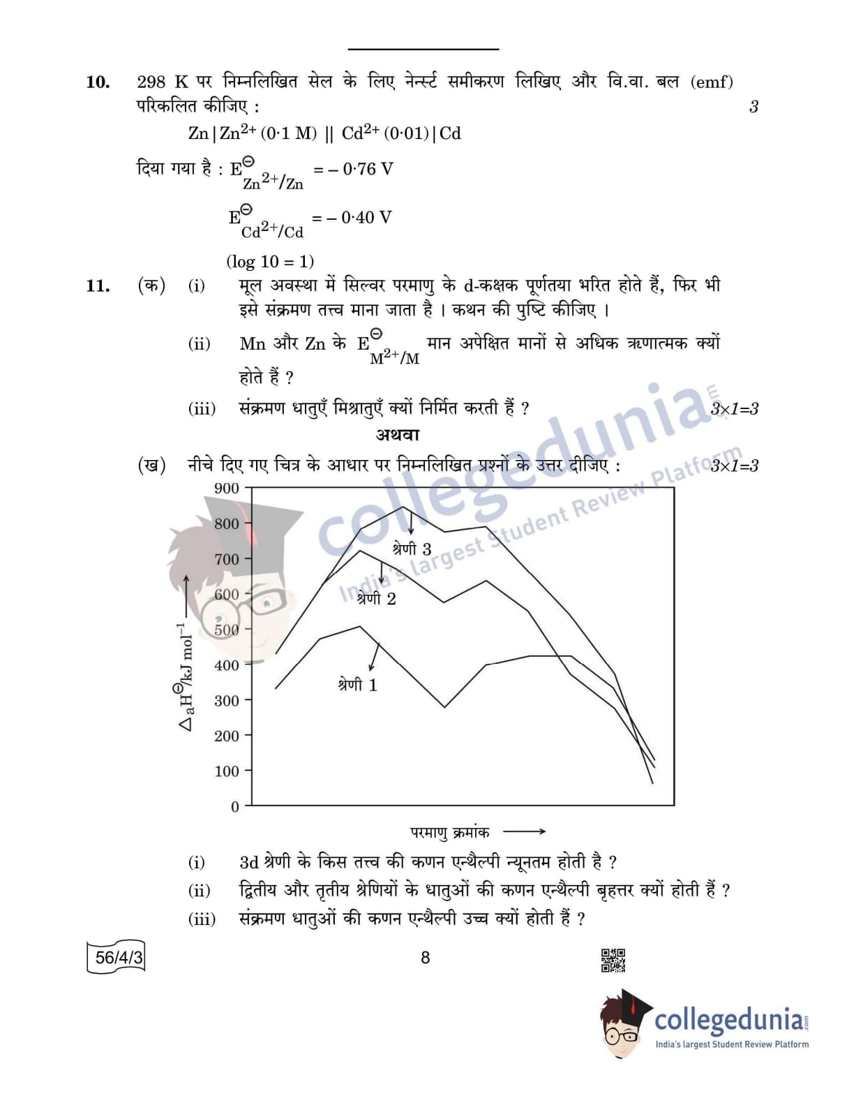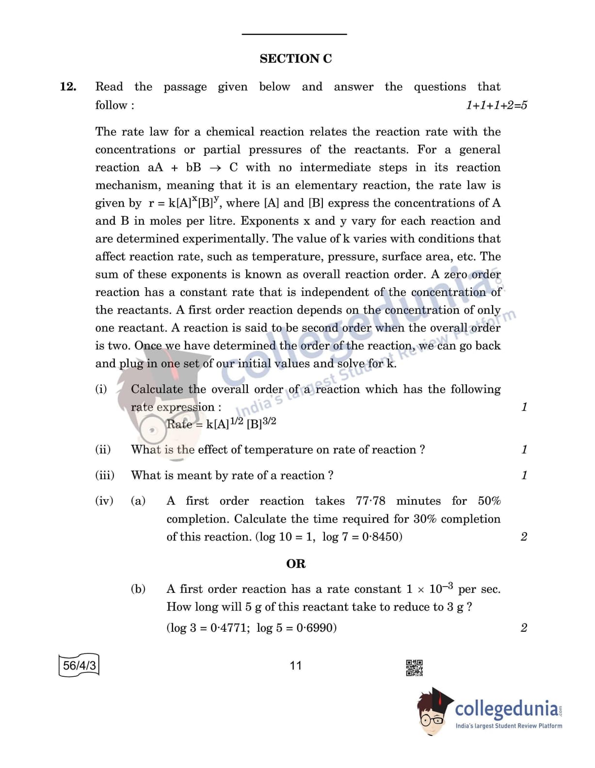 CBSE Class 12 Chemistry Question Paper 2022 with Answer Key (May 7, Set 3 - 56/4/3- Morning Session)
