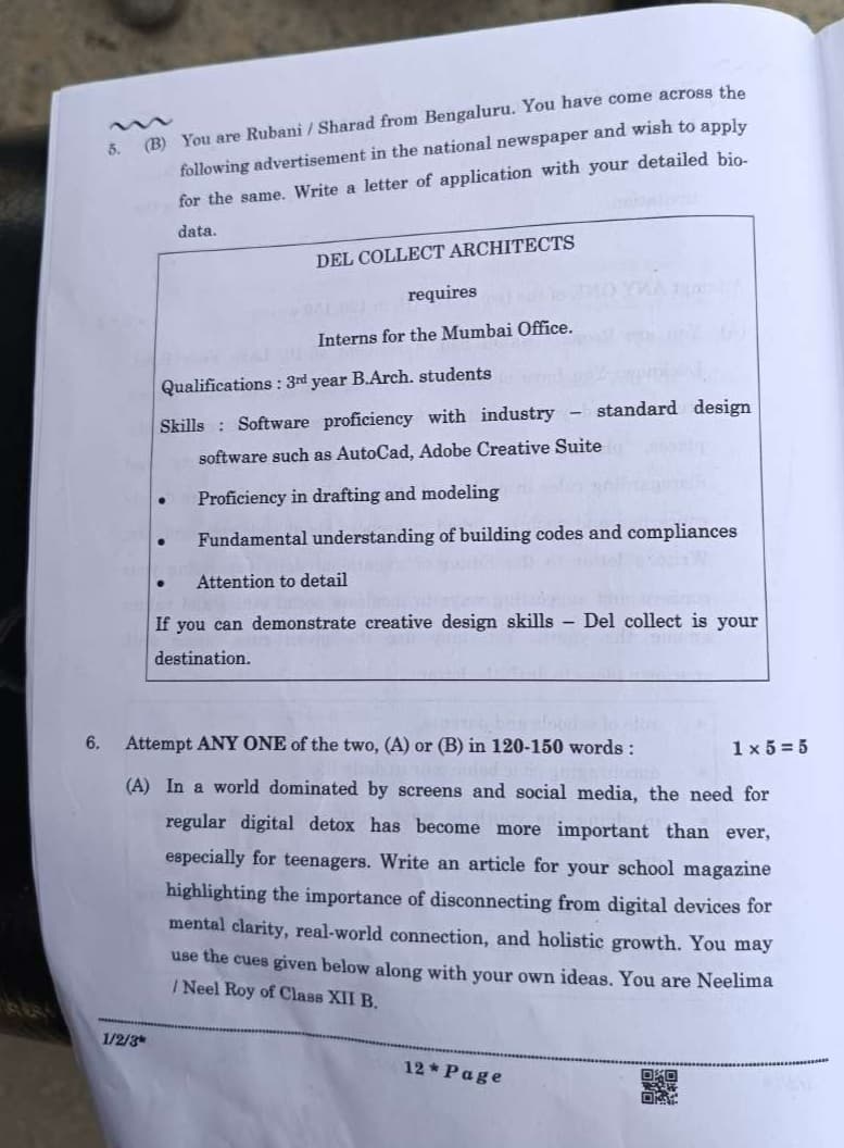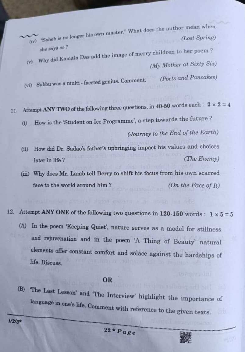 | Long Answer Type Questions (LAQ) | 6 marks each | 12 marks |