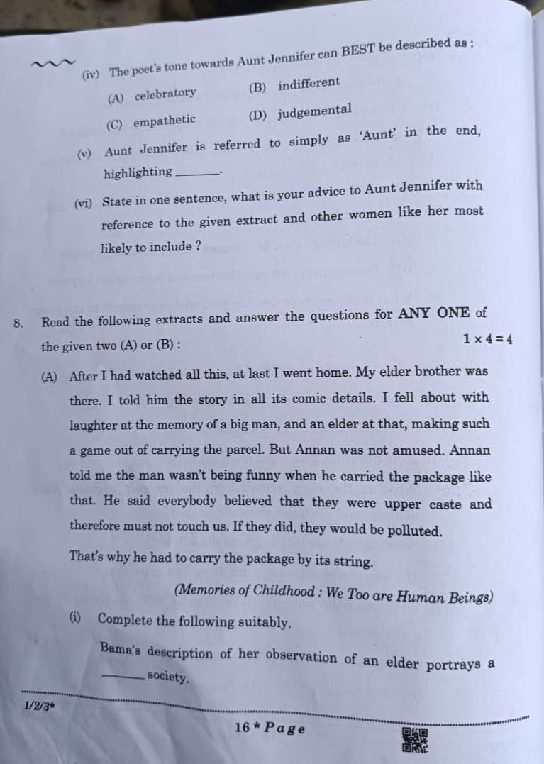 | Short Answer Type Questions (SAQ) | 2 marks each | 16 marks |