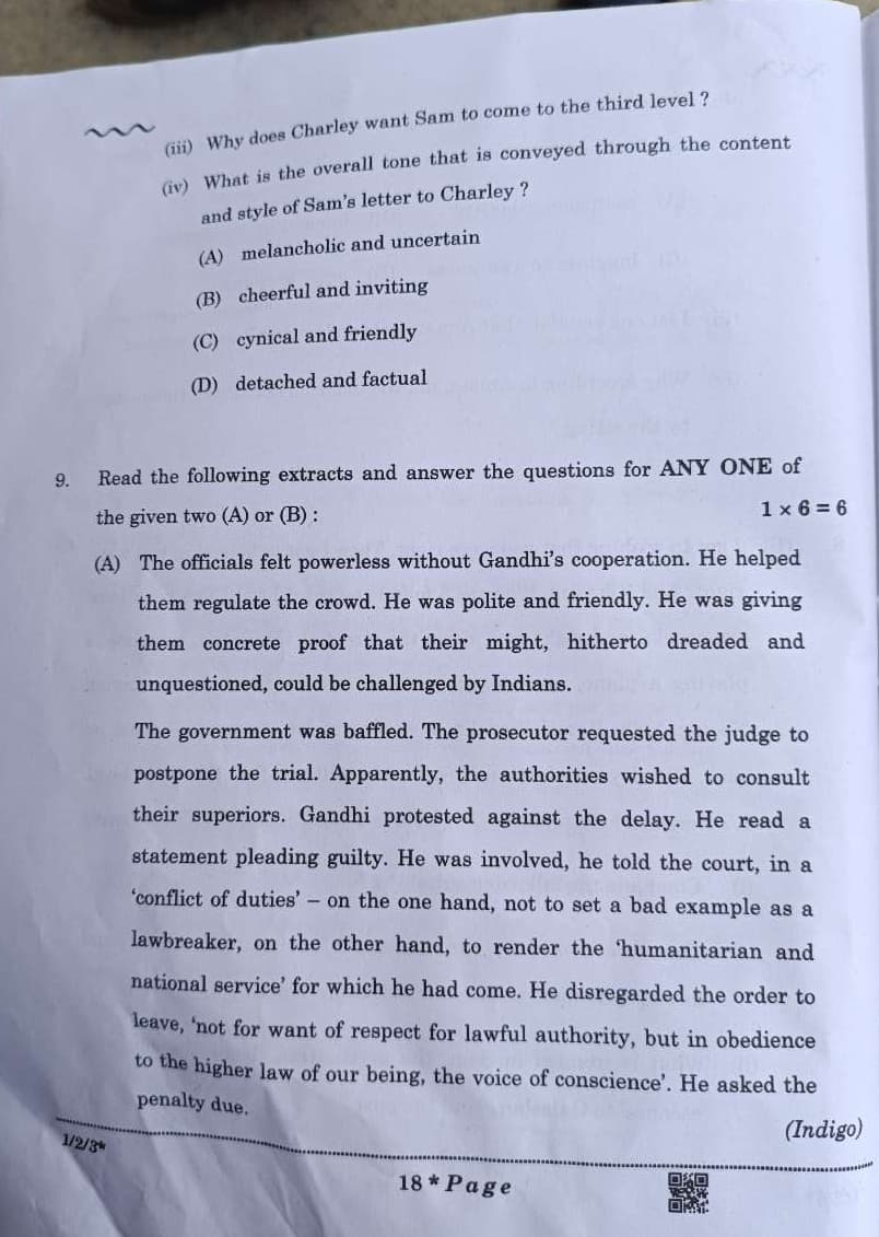 | Short Answer Type Questions (SAQ) | 3 marks each | 18 marks |