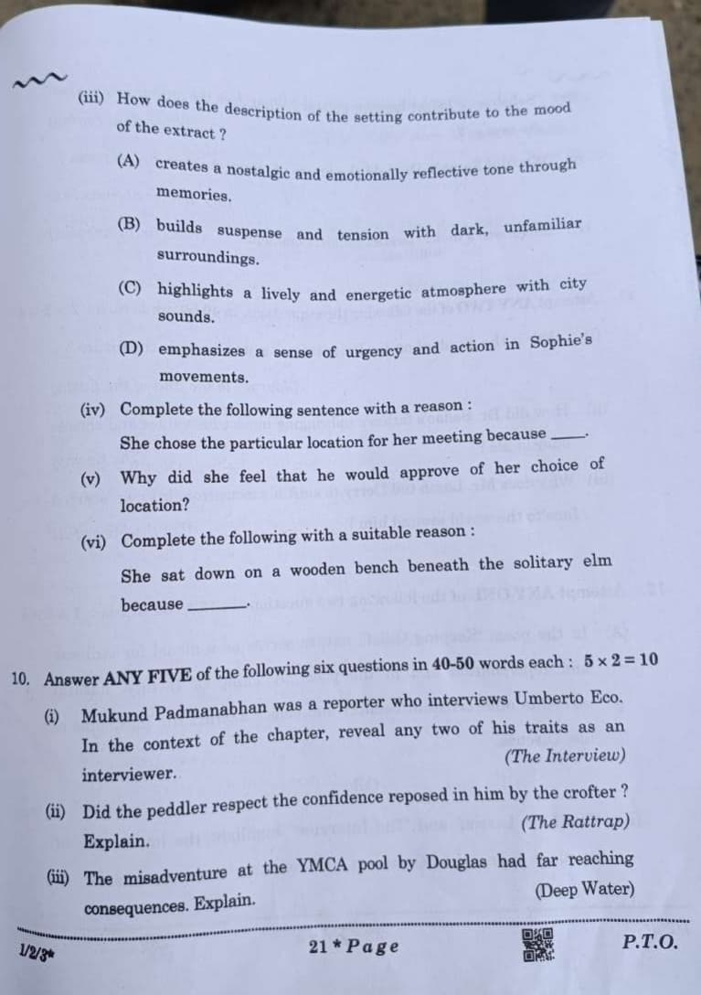 | Multiple Choice Questions (MCQs) | 1 mark each | 10 marks |