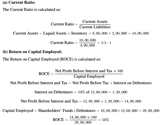 The ratio of capital balances is: \[ \frac{Abha's capital}{Babita's capital} = \frac{5,00,000}{10,00,000} = 1 : 2. \]