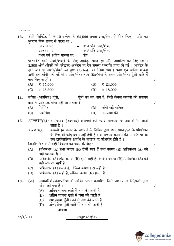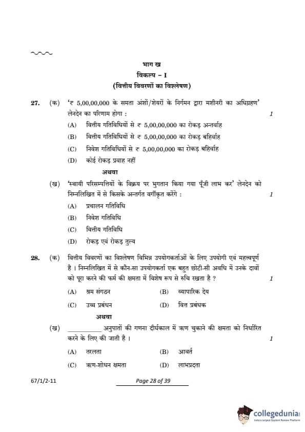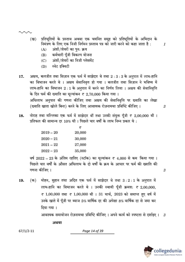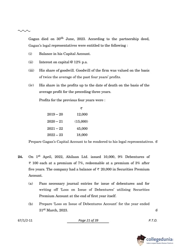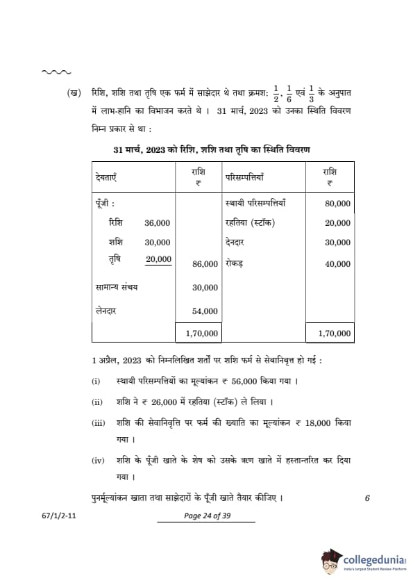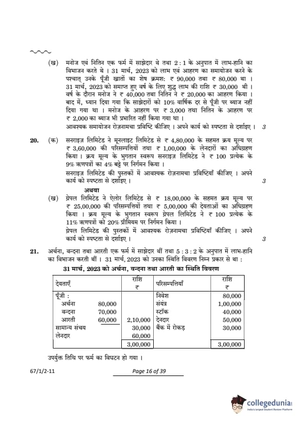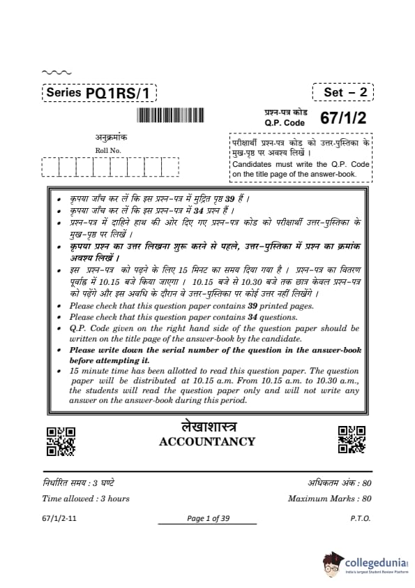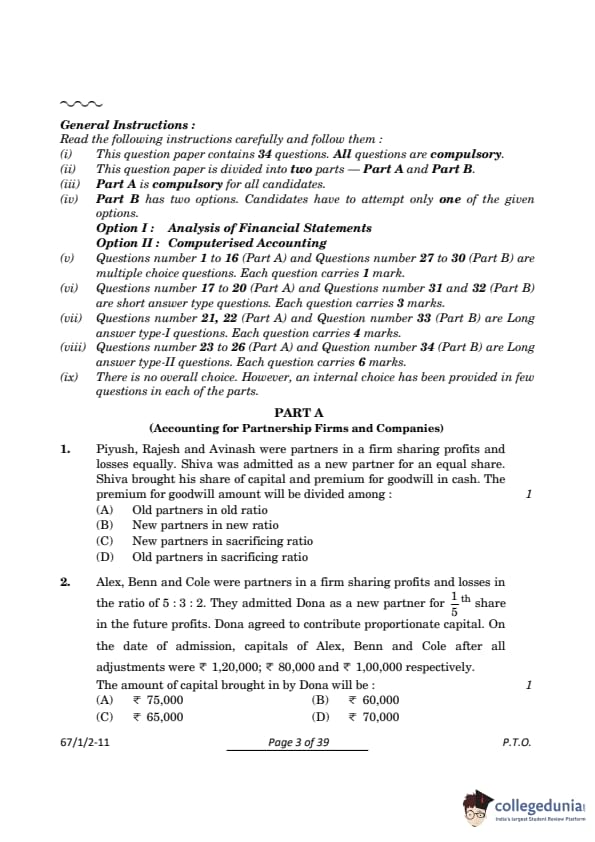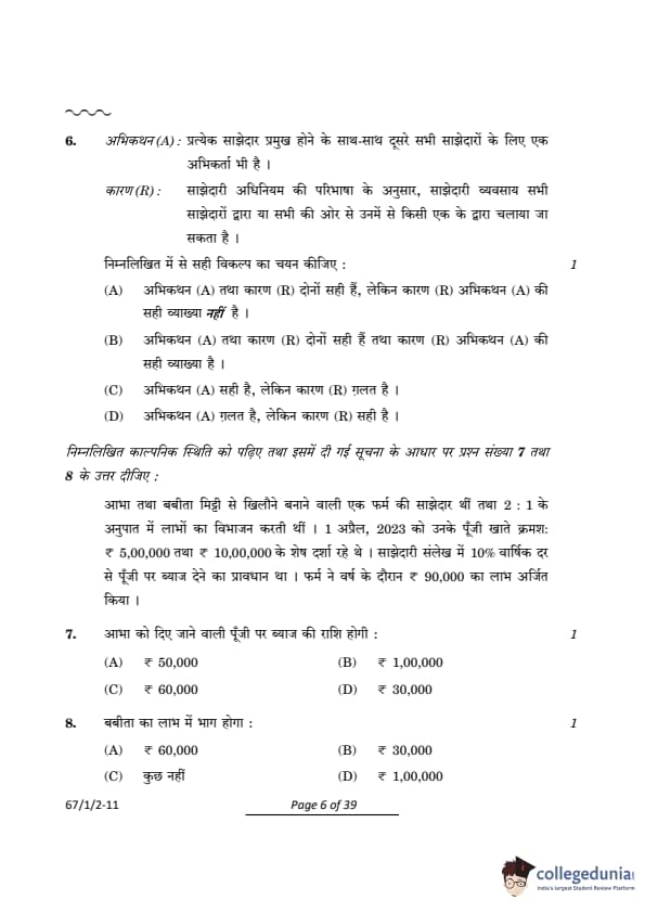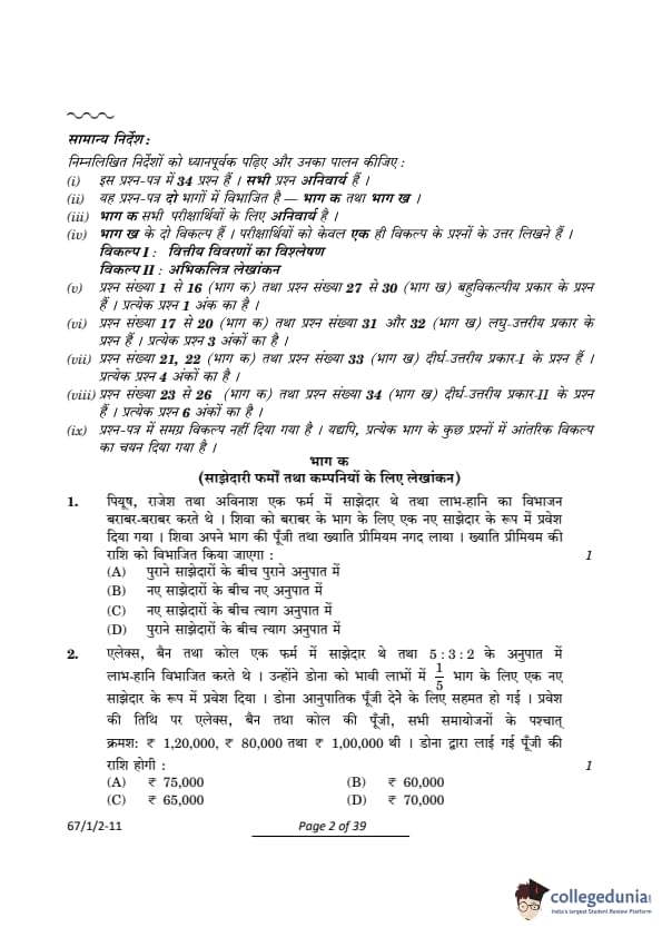 | CBSE Class 12 2024 Accountancy Question Paper (Set 2- 67/1/2) with Answer Key | Check Solution |