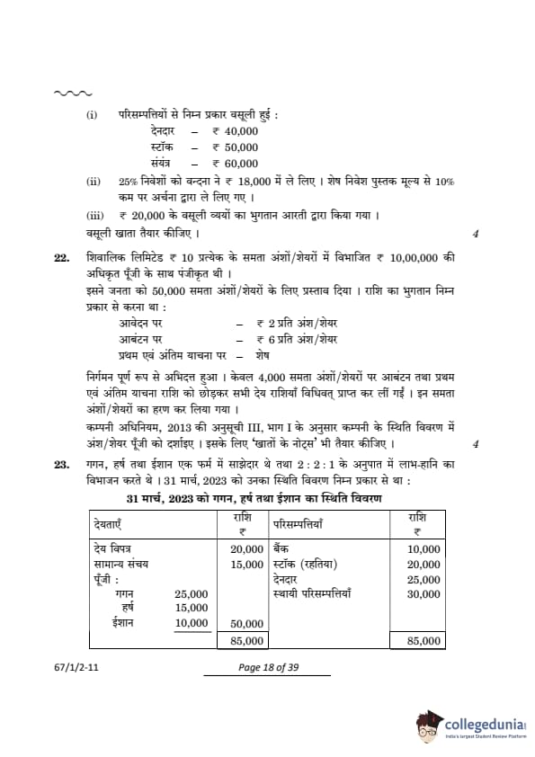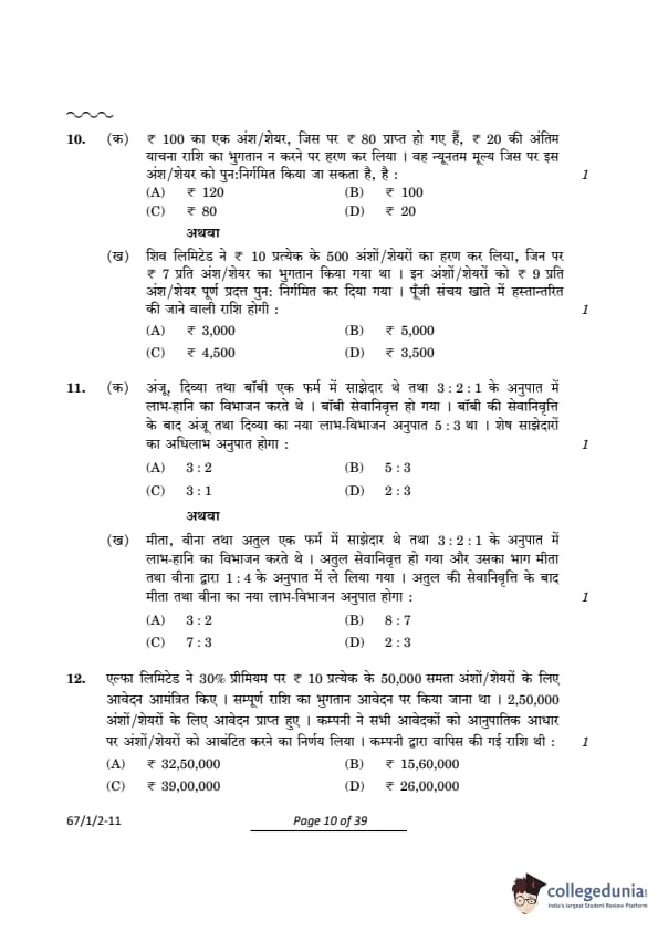 CBSE Class 12 Accountancy Question Paper 2024 PDF (Set 2- 67/1/2) will be available for download here. CBSE will conduct the Accountancy exam on March 23, 2024 from 10:30 AM to 1:30 PM. The total marks for the theory paper are 80. The question paper will contain 20% MCQ-based questions, 40% competency-based questions, and 40% short and long answer type questions.