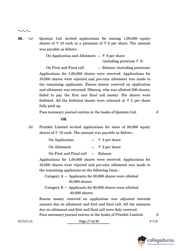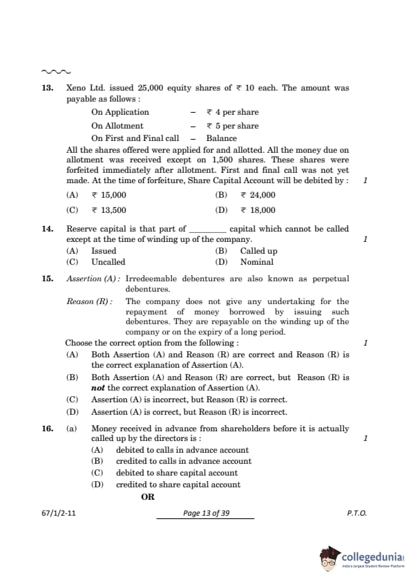 (a) A share of Rs.100 on which Rs.80 is received is forfeited for non-payment of the final call of Rs.20. The minimum price at which this share can be reissued is: