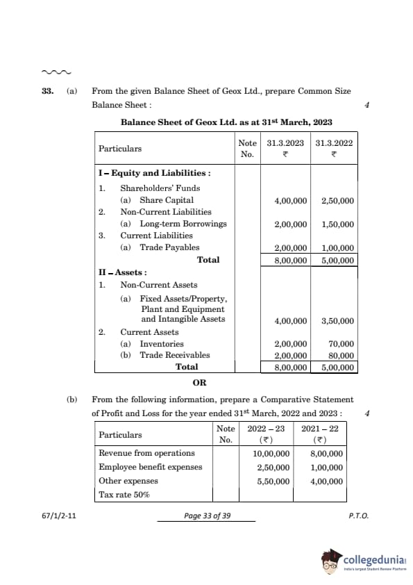 Balance Sheet of Geox Ltd. as at 31st March, 2023 (Common Size Format):