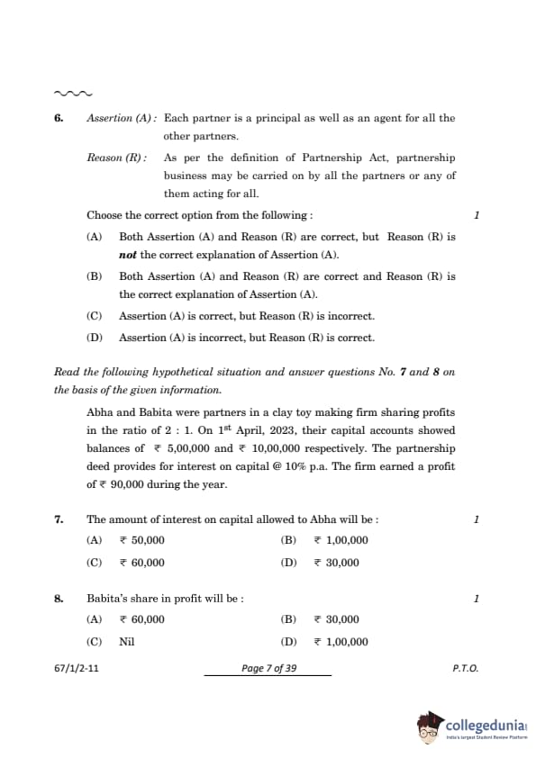 Reason (R) accurately explains Assertion (A), making both the assertion and the reason correct. Quick Tip: In partnerships, each partner plays a dual role as both a principal and an agent for the other partners.