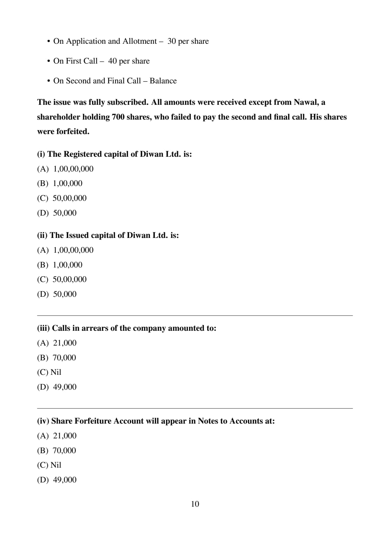 Final Answer: \[ \boxed{₹ 7} \] Quick Tip: Minimum reissue price = Face value − Forfeited amount. Discount on reissue cannot exceed forfeited amount.