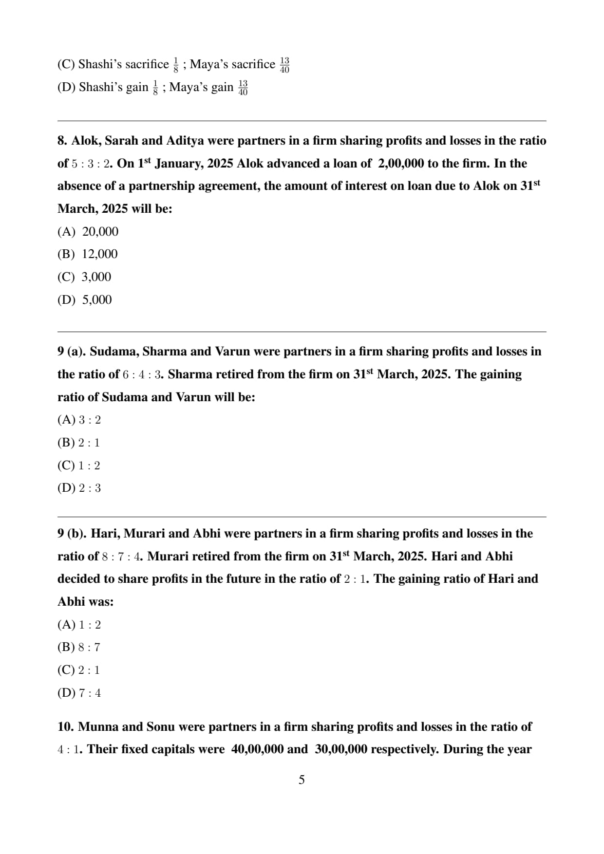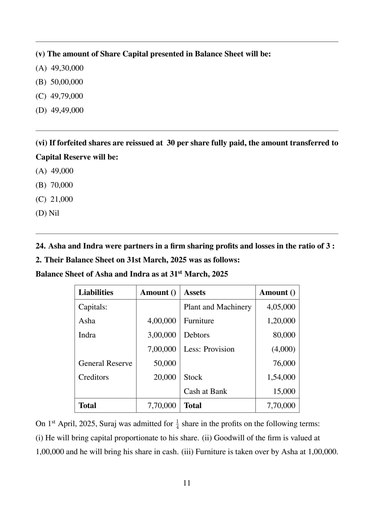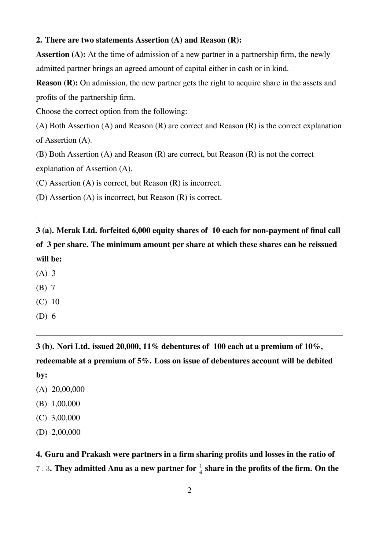 \[ \boxed{(A)} \] Quick Tip: Admission Logic: Capital Contribution = Ownership Rights New partner brings capital because he gains share in assets and profits.