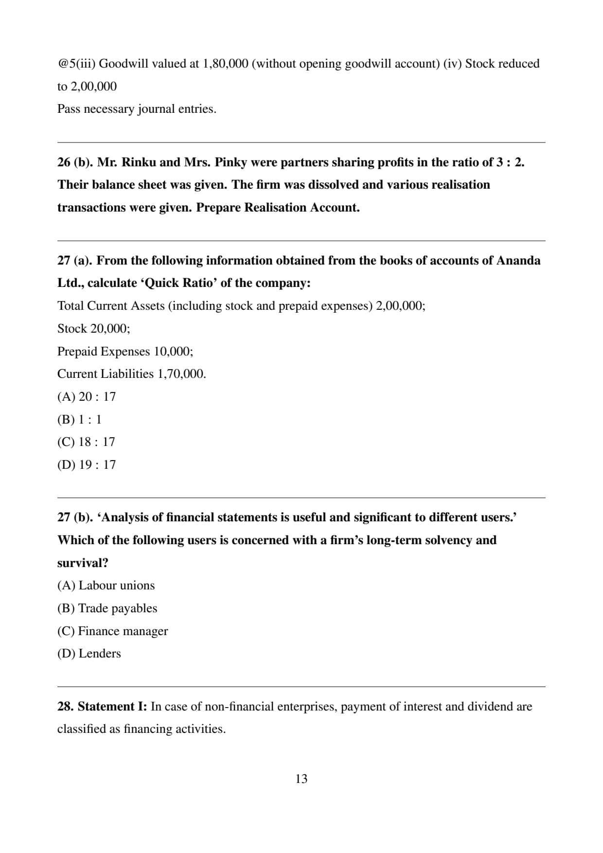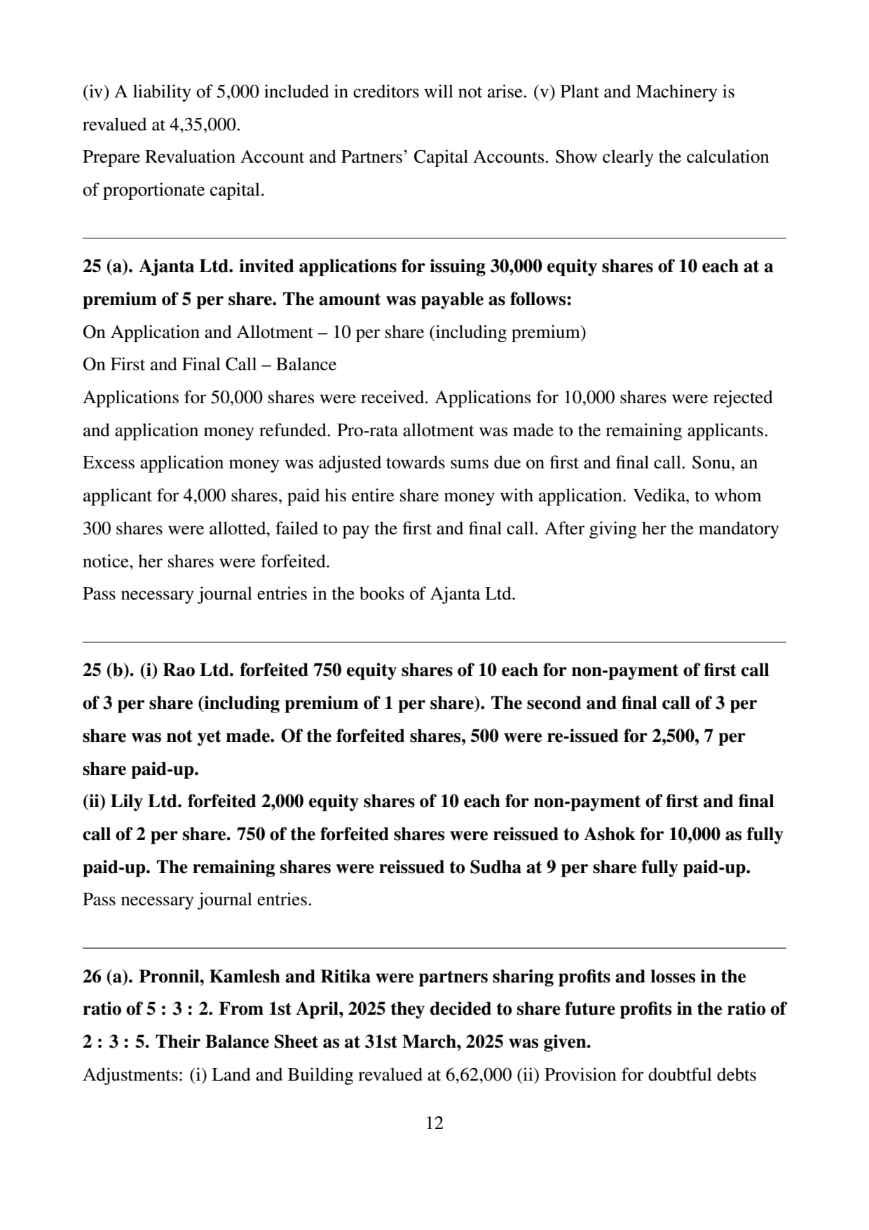 CBSE Class 12 Accountancy Question Paper 2026 (Set 1- 67/5/1) with Answer Key