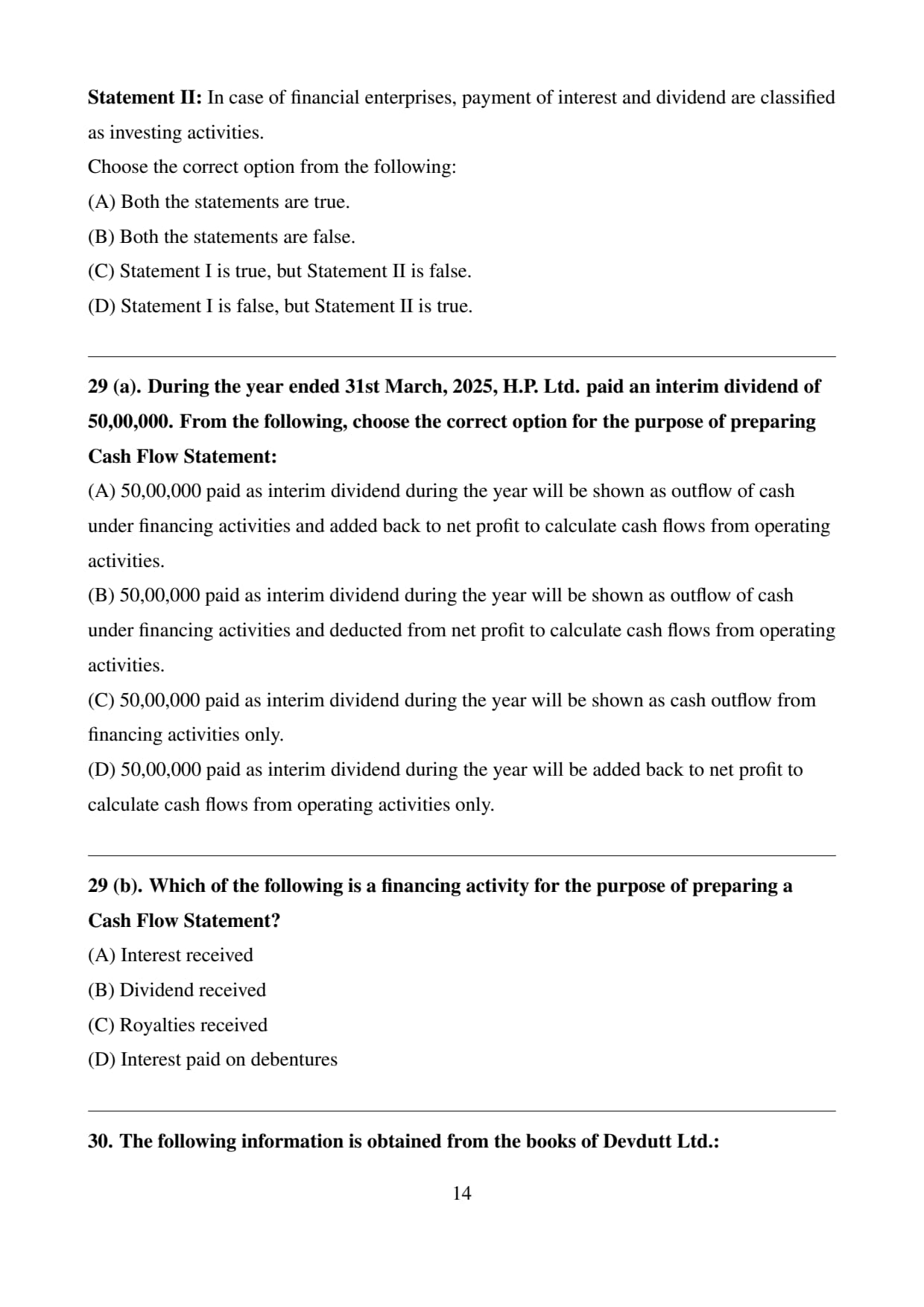 Cash from Operations = ₹3,61,000 Quick Tip: Cash from Operations Steps: 1. Start with Net Profit. 2. Add non-cash expenses (depreciation, goodwill write-off). 3. Adjust working capital changes: • Increase in current assets → Deduct • Increase in current liabilities → Add