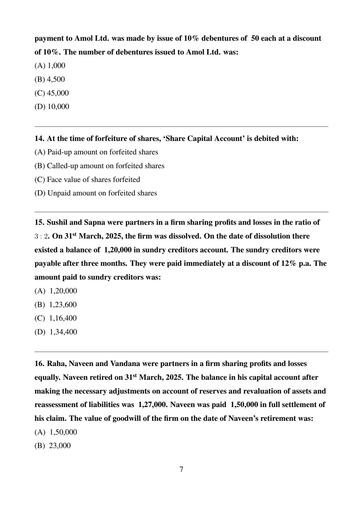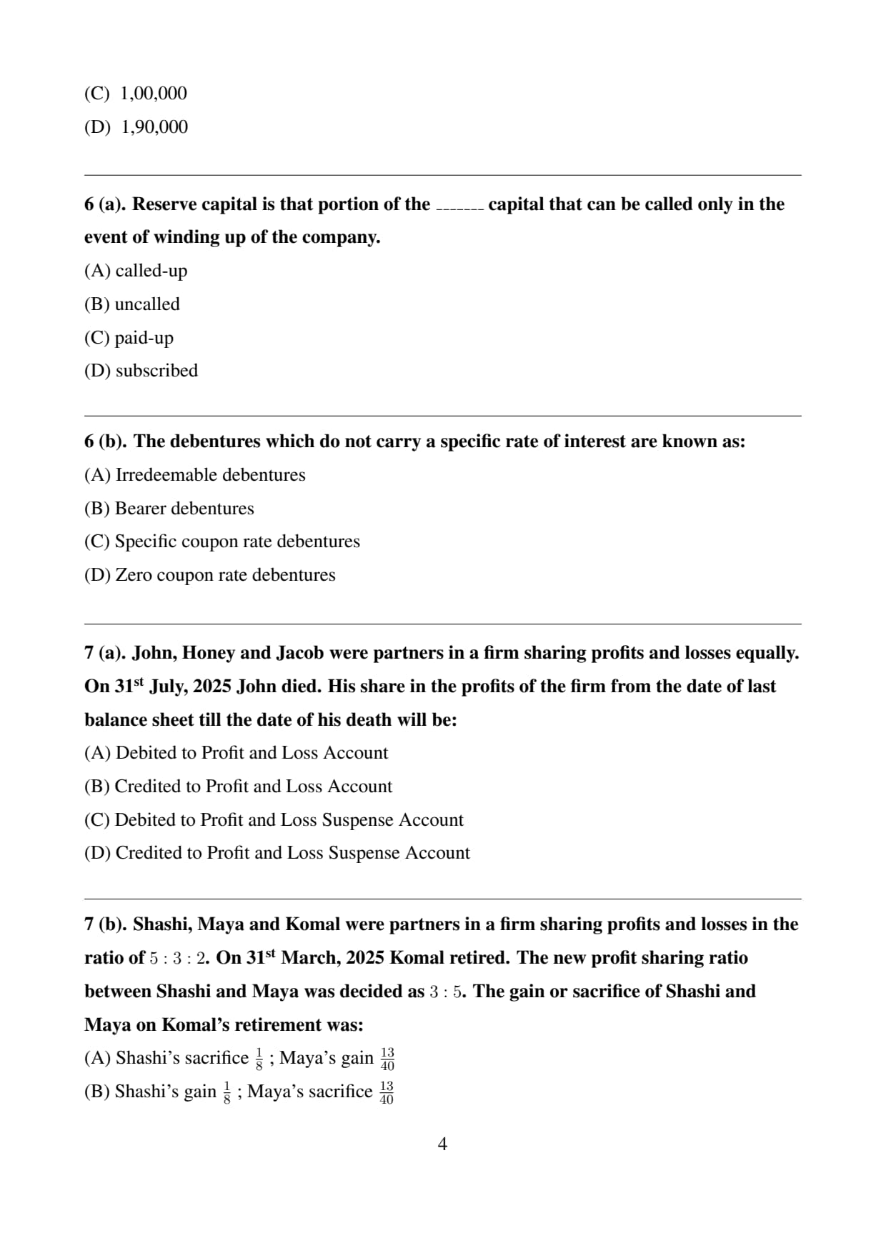 Only premium on redemption is treated as loss: \[ \boxed{₹ 1,00,000} \] Quick Tip: Debenture issue rules: Premium on issue = gain Premium on redemption = loss Only losses go to Loss on Issue A/c