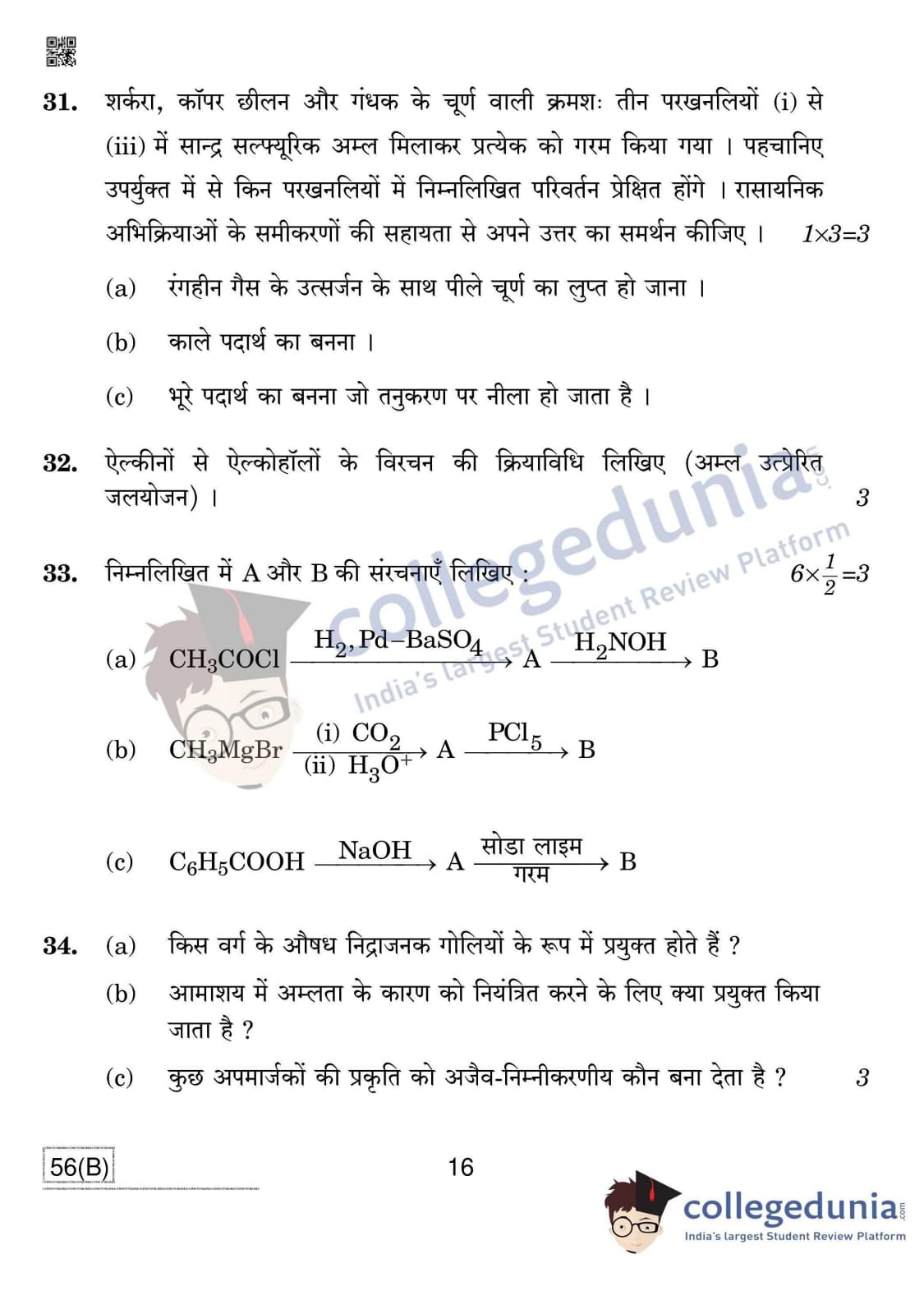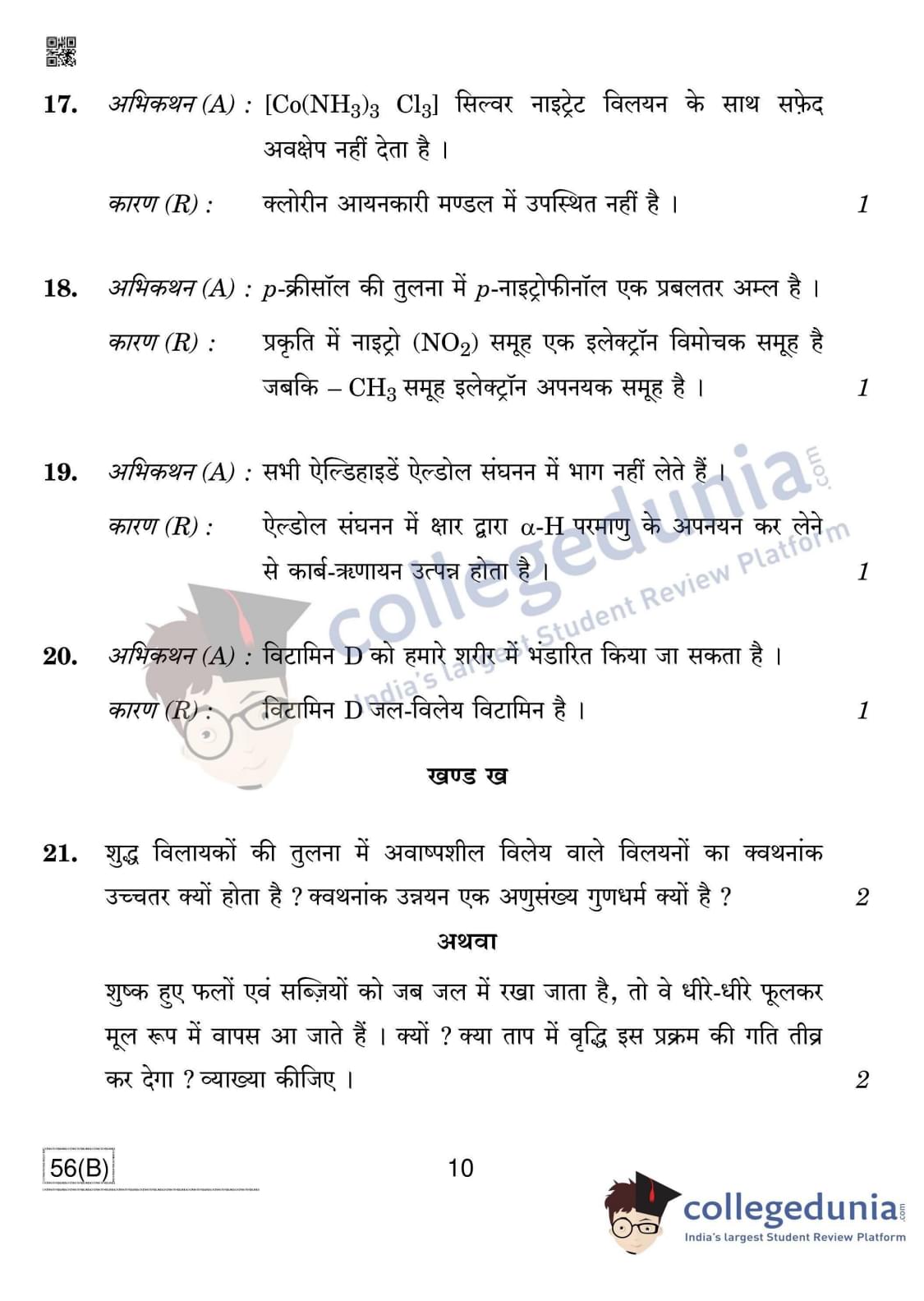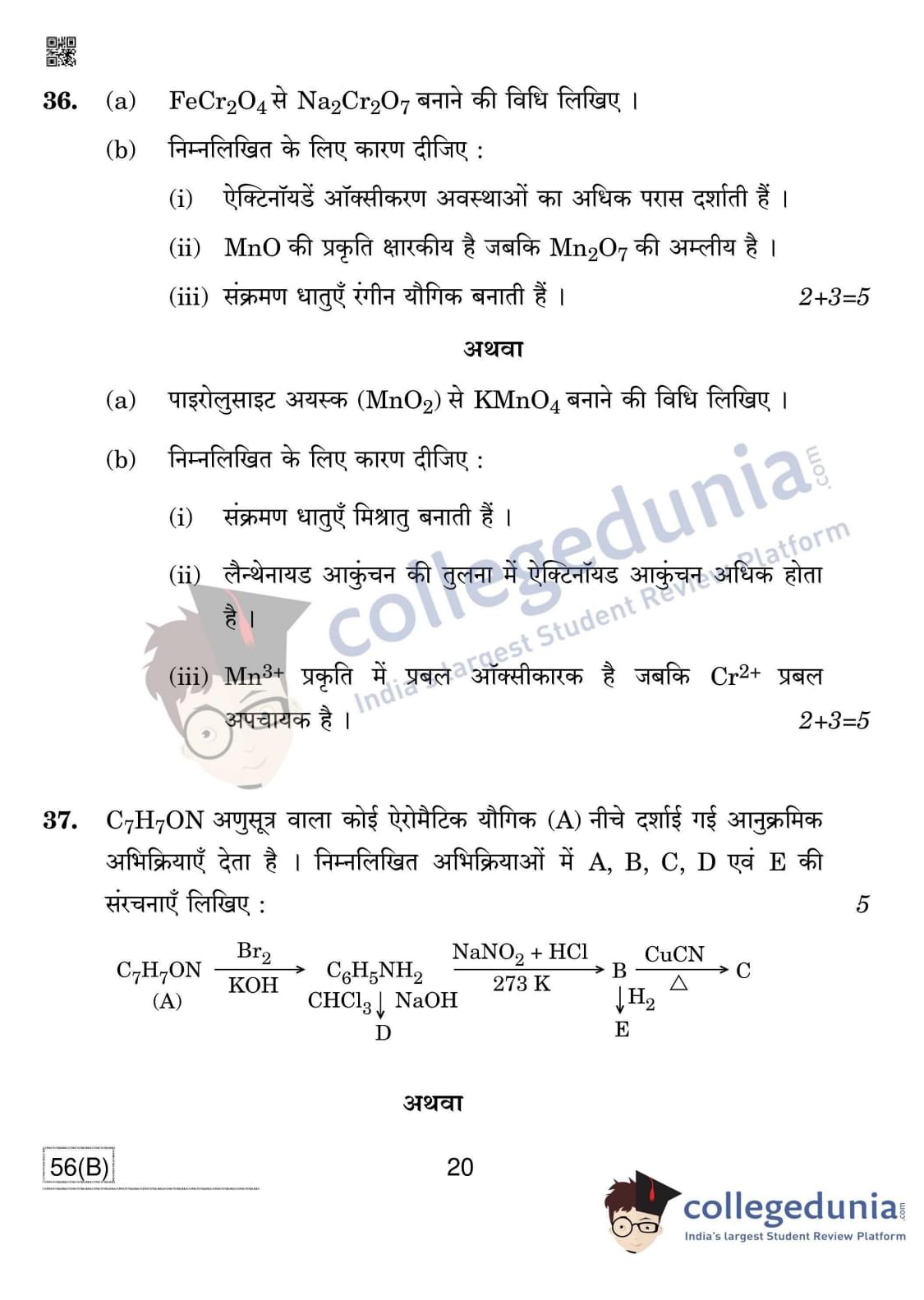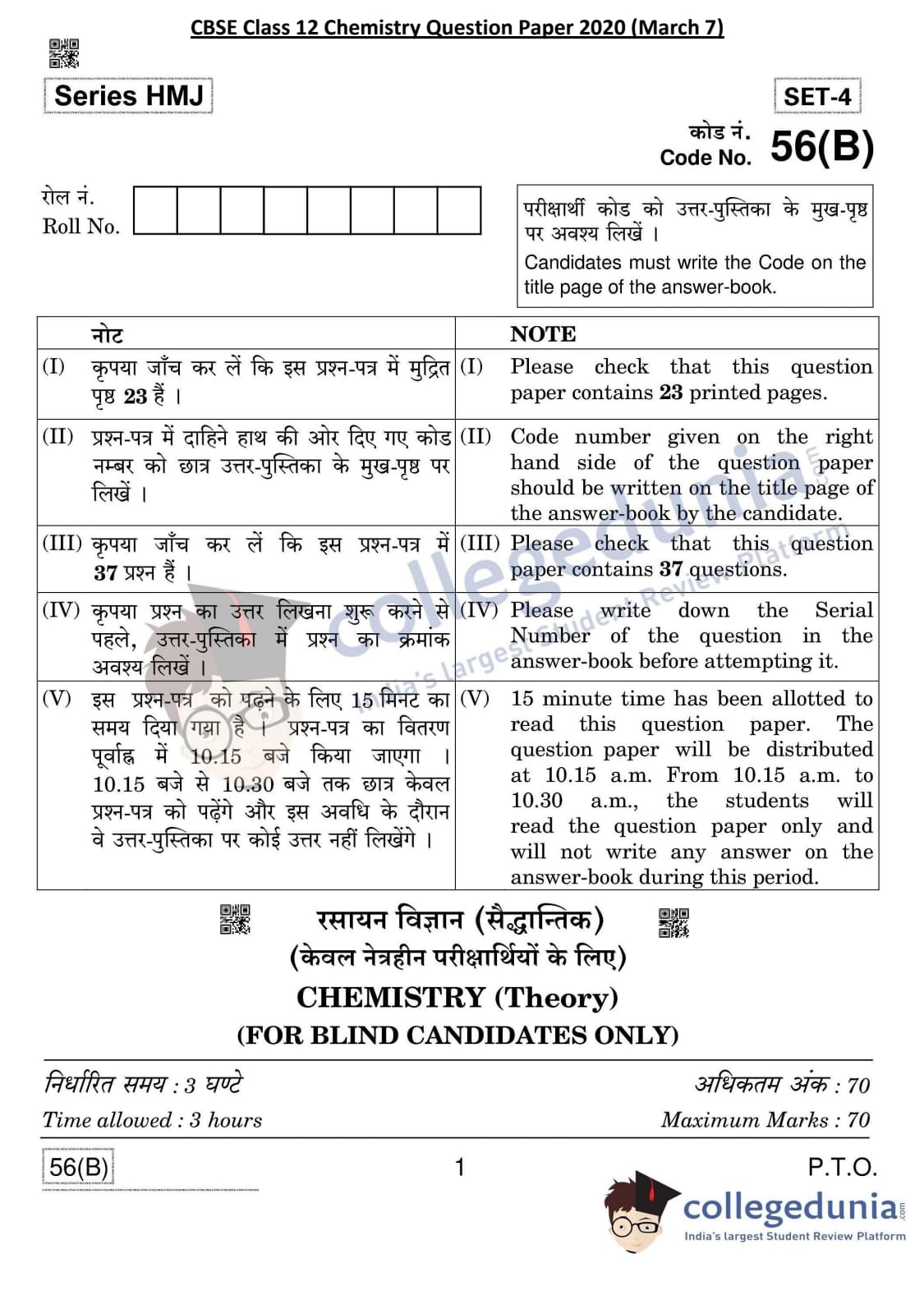 CBSE Class 12 Chemistry Question Paper 2020 with Answer Key (March 7)