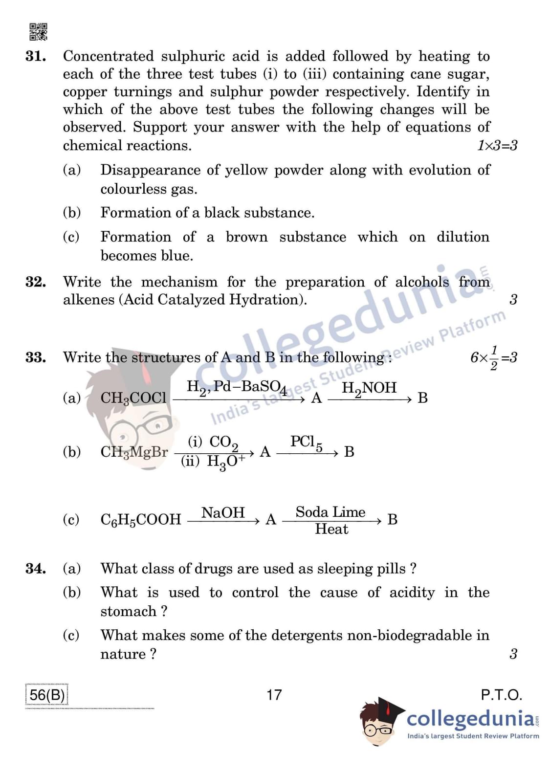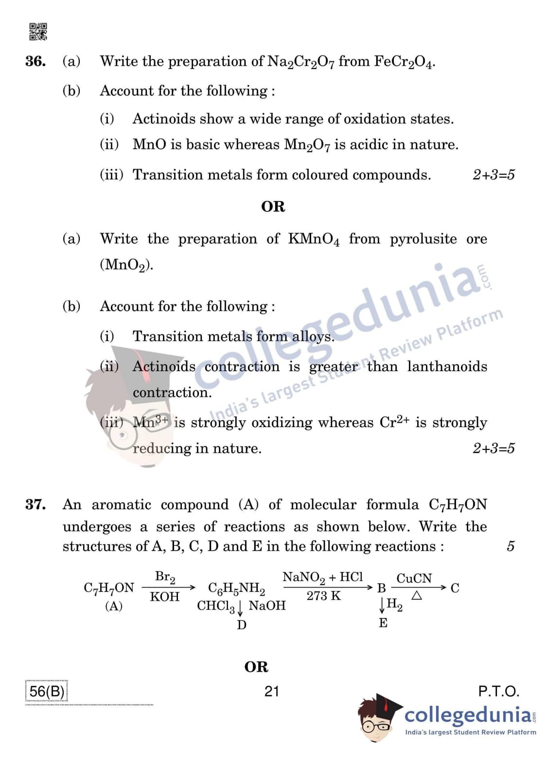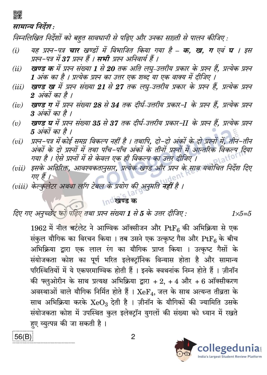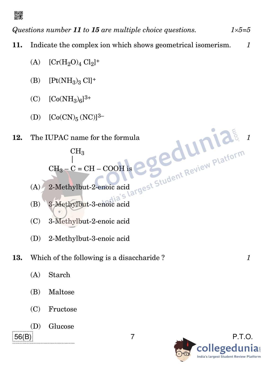 CBSE Class 12 Chemistry Question Paper 2020 with Answer Key (March 7)