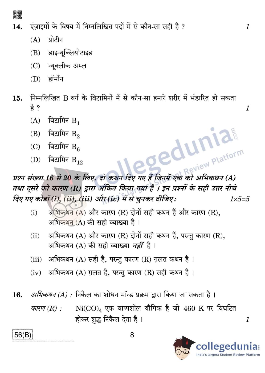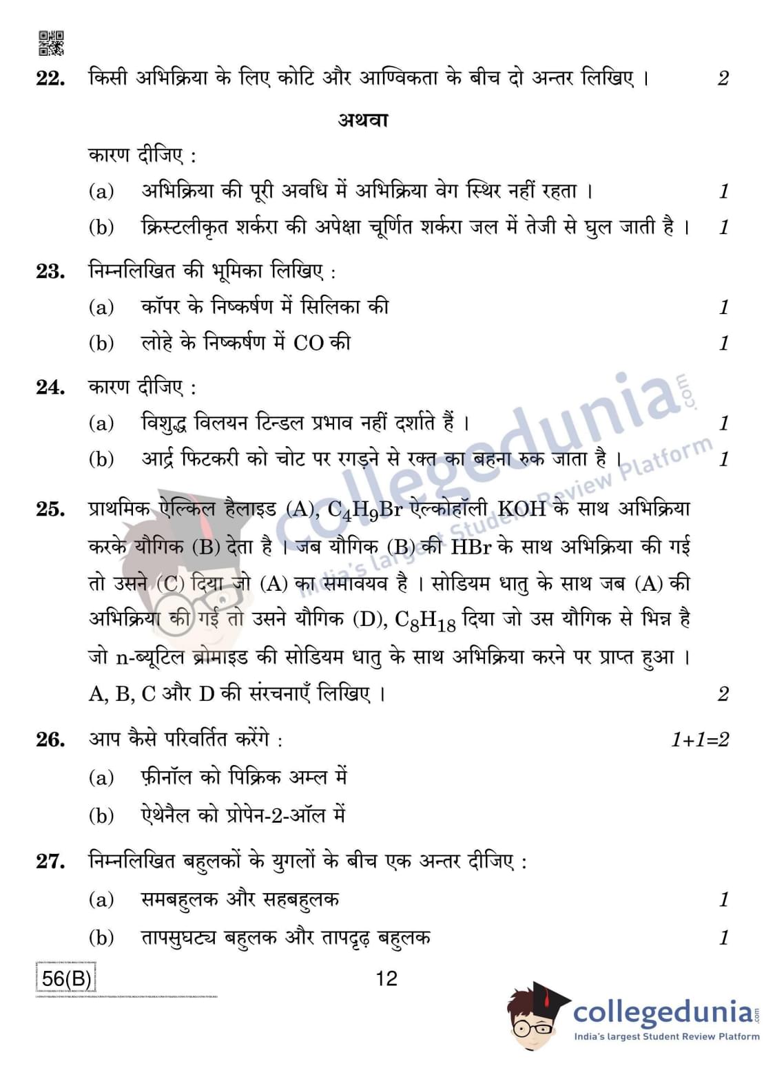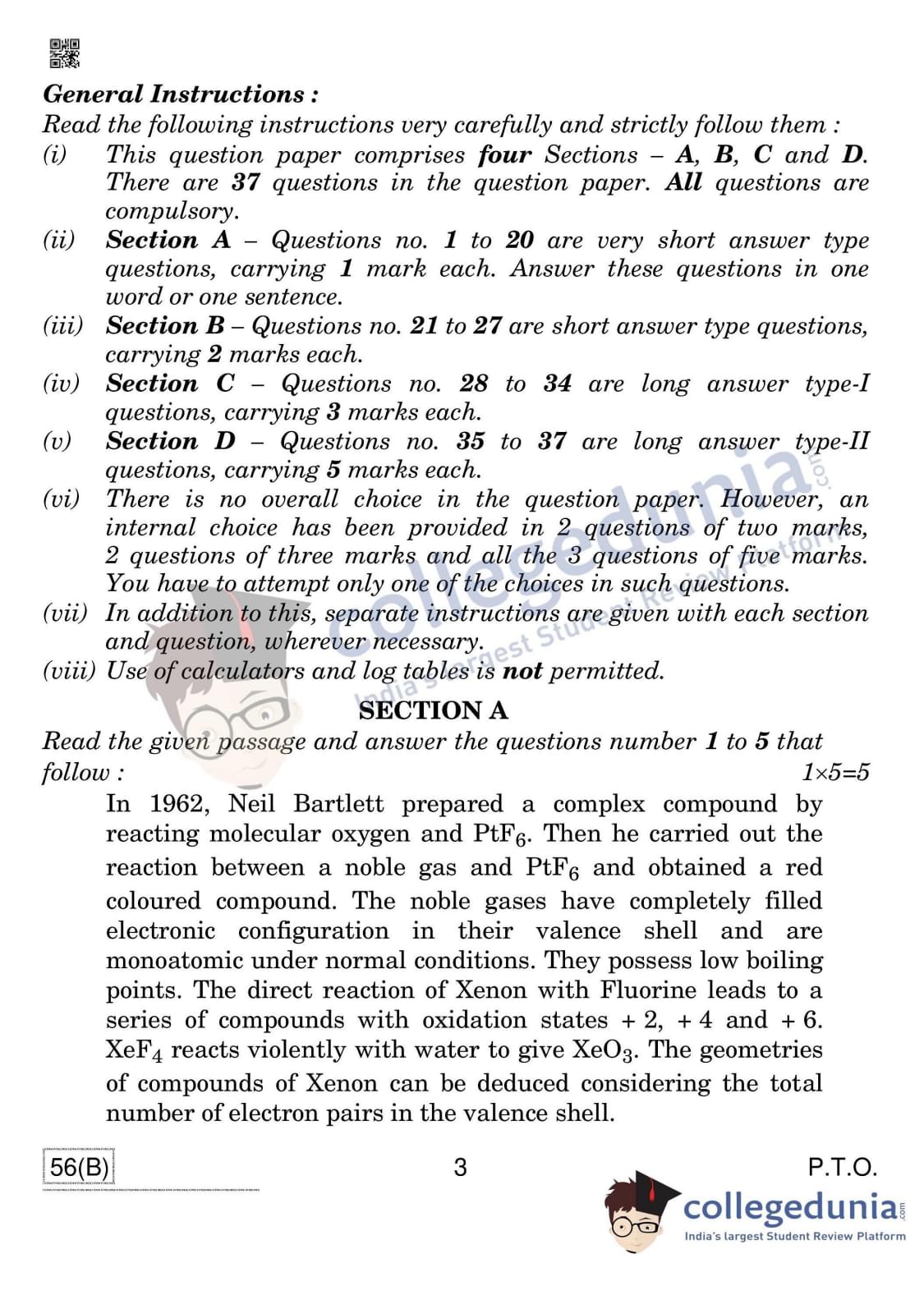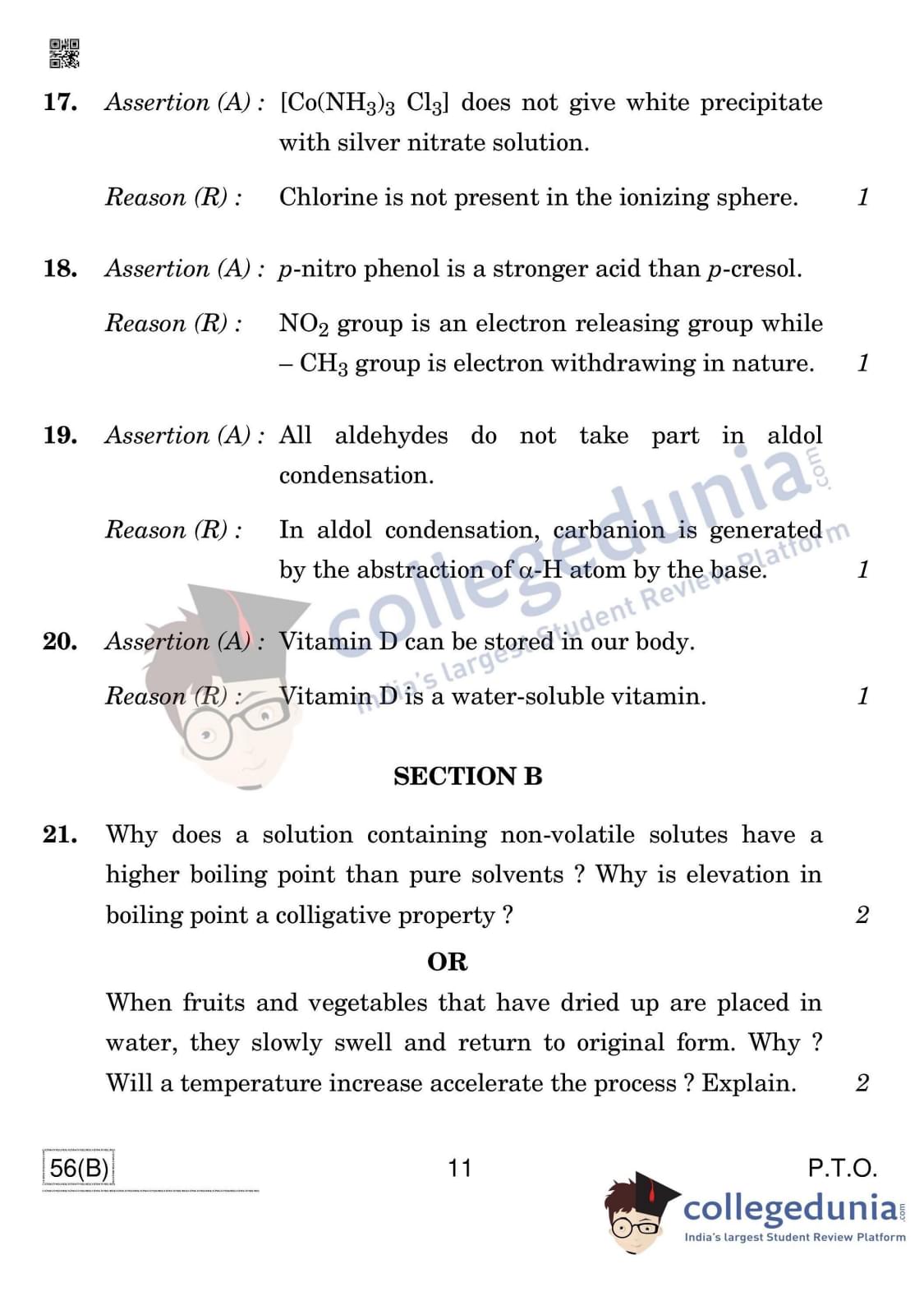 CBSE Class 12 Chemistry Question Paper 2020 with Answer Key (March 7)